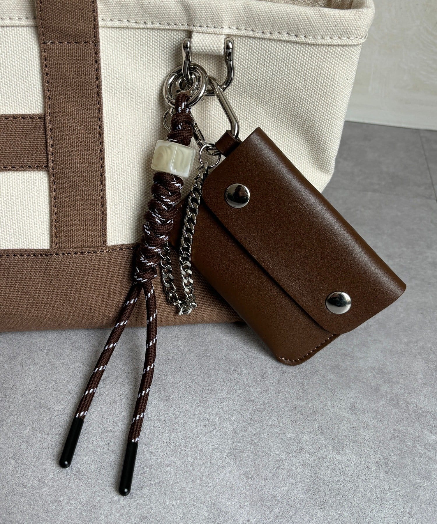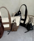 バッグ本体はデイリー使いにぴったりなトート型。付属のチャームが全体を引き締め、さりげなく高級感をプラス。