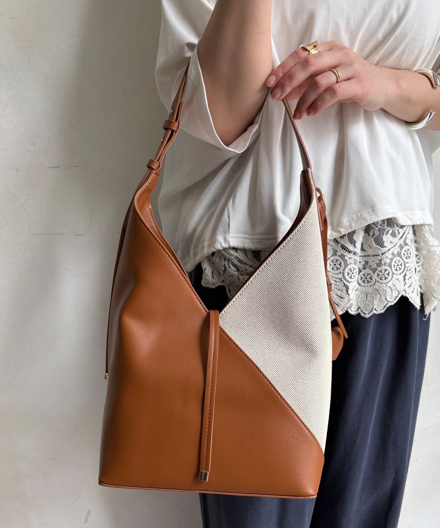 異素材の組み合わせが目を惹く、コンビデザインバッグが登場。