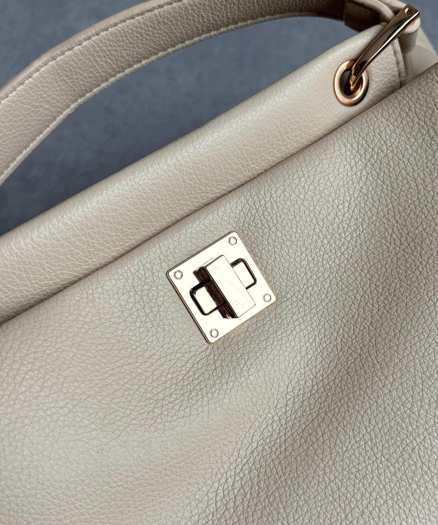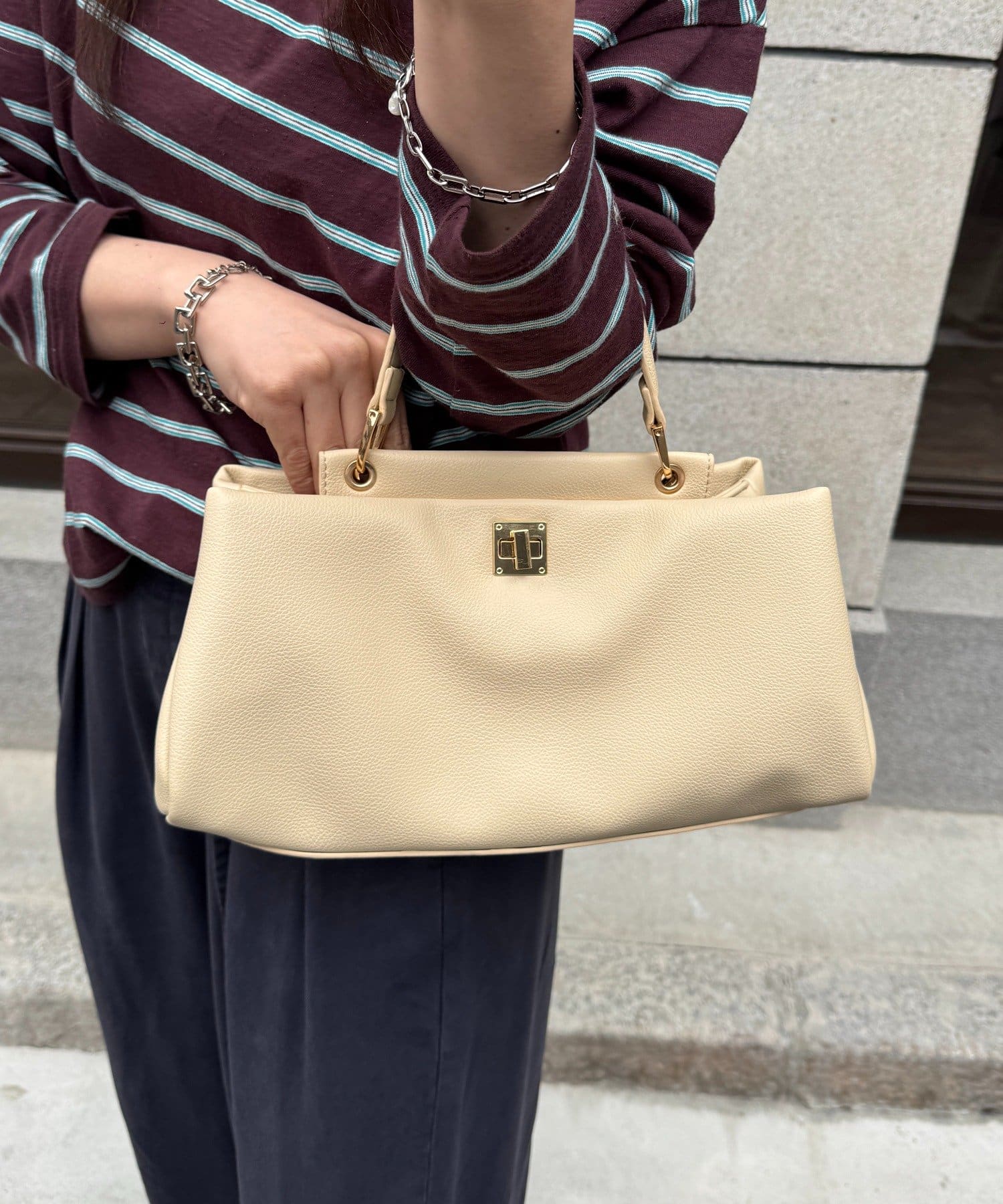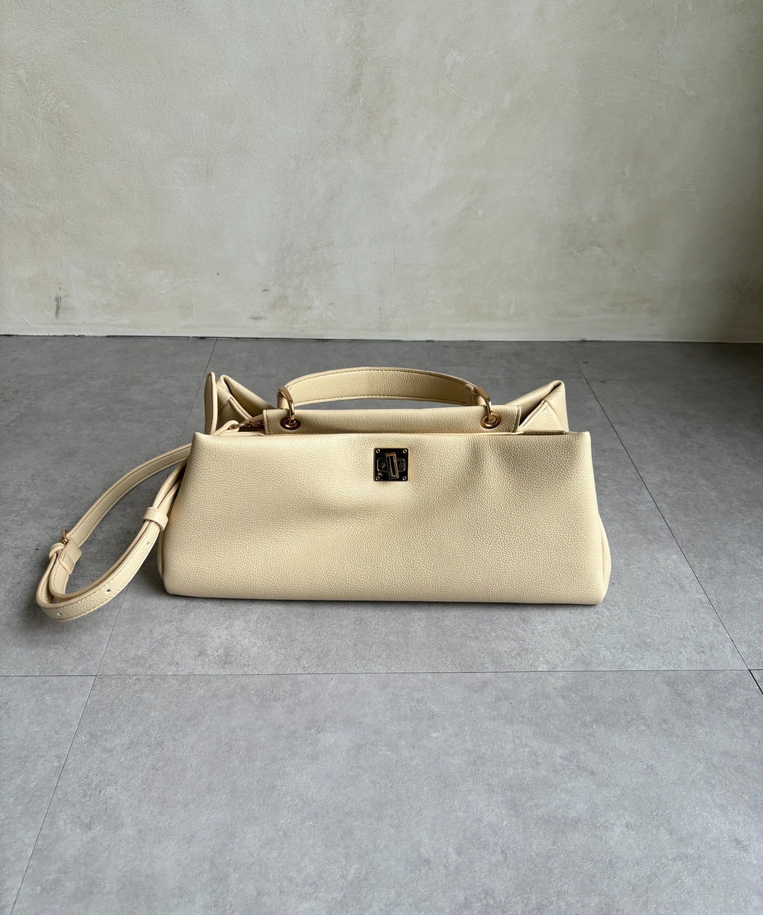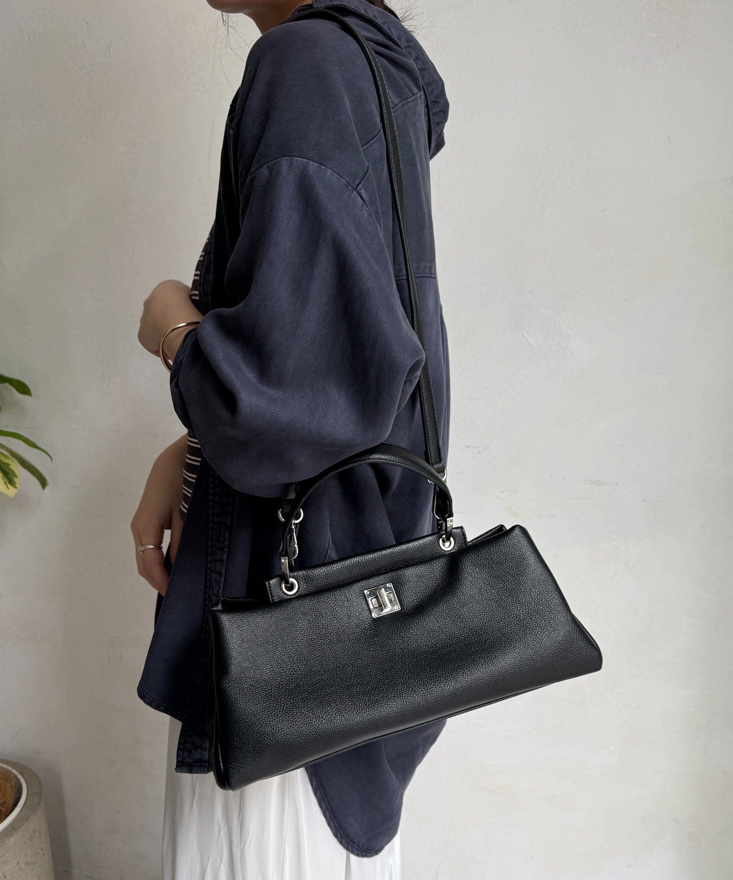 フロントにはアクセントとなる金具ディテールを配置し、シンプルな中にも程よい華やかさをプラス。