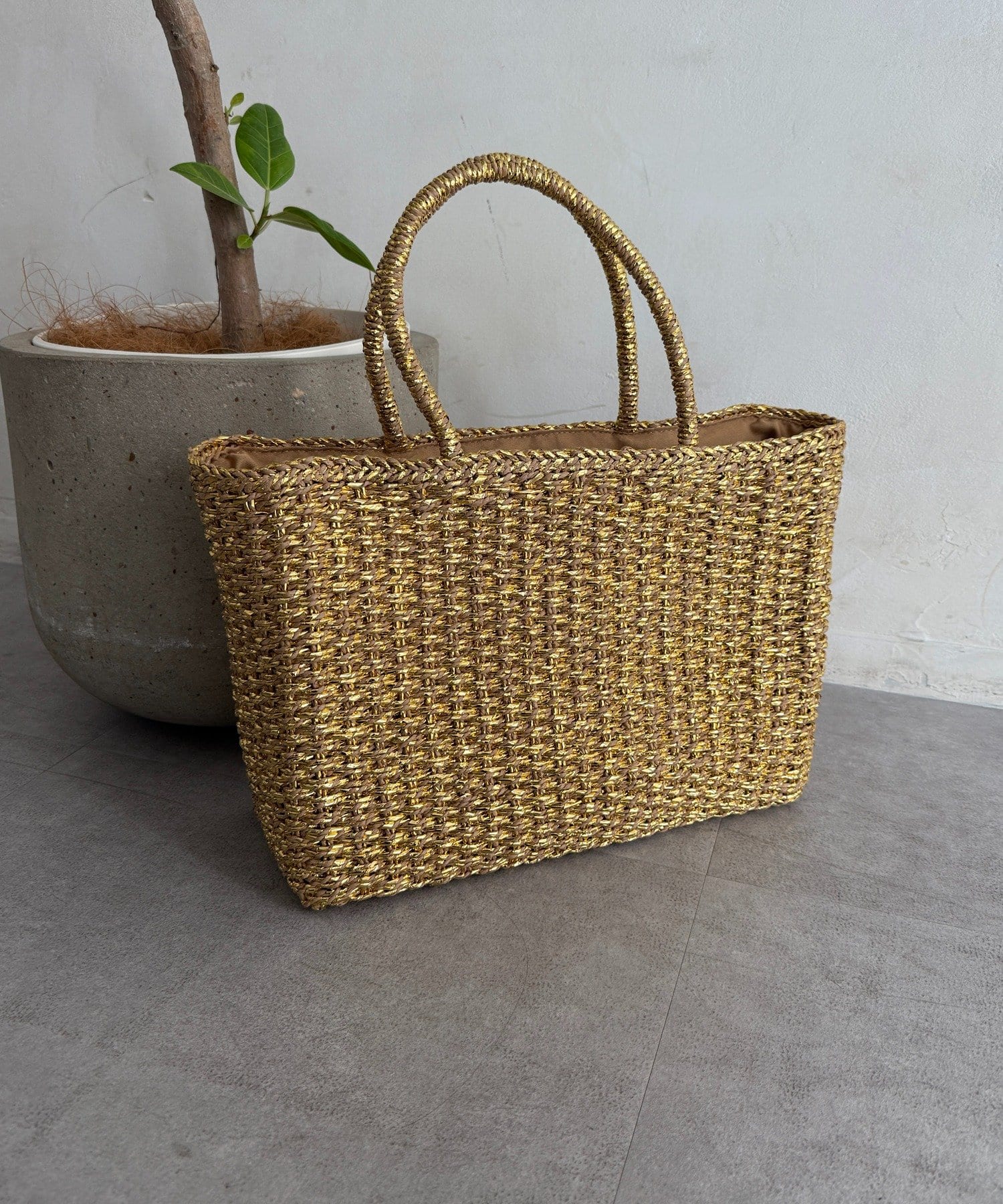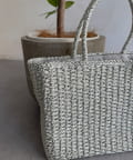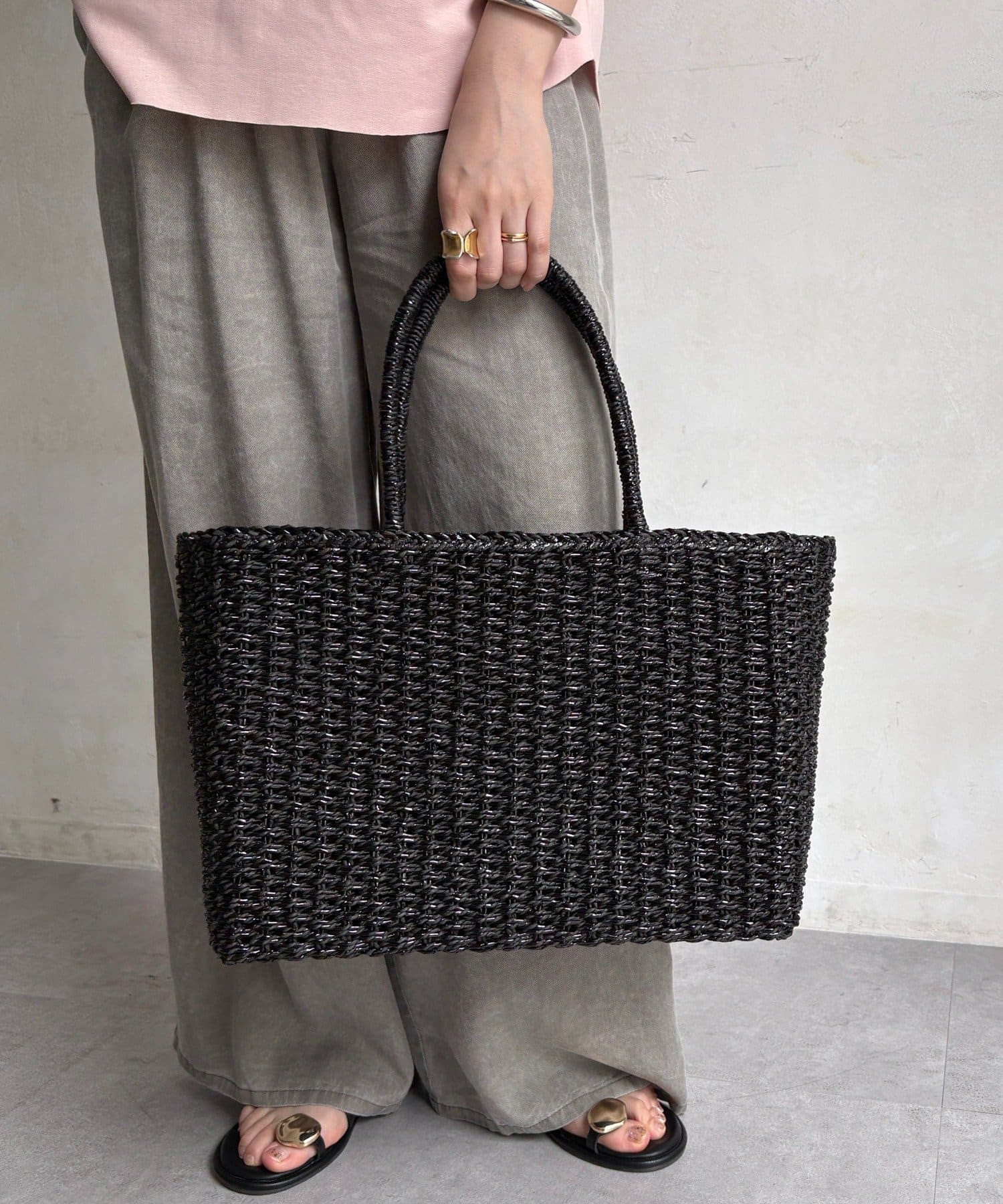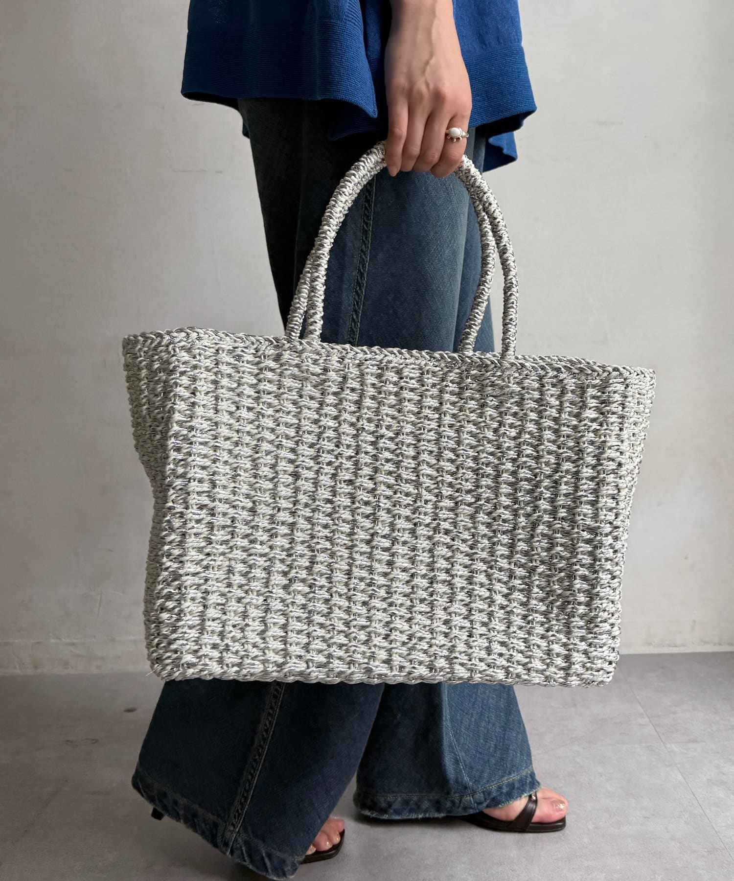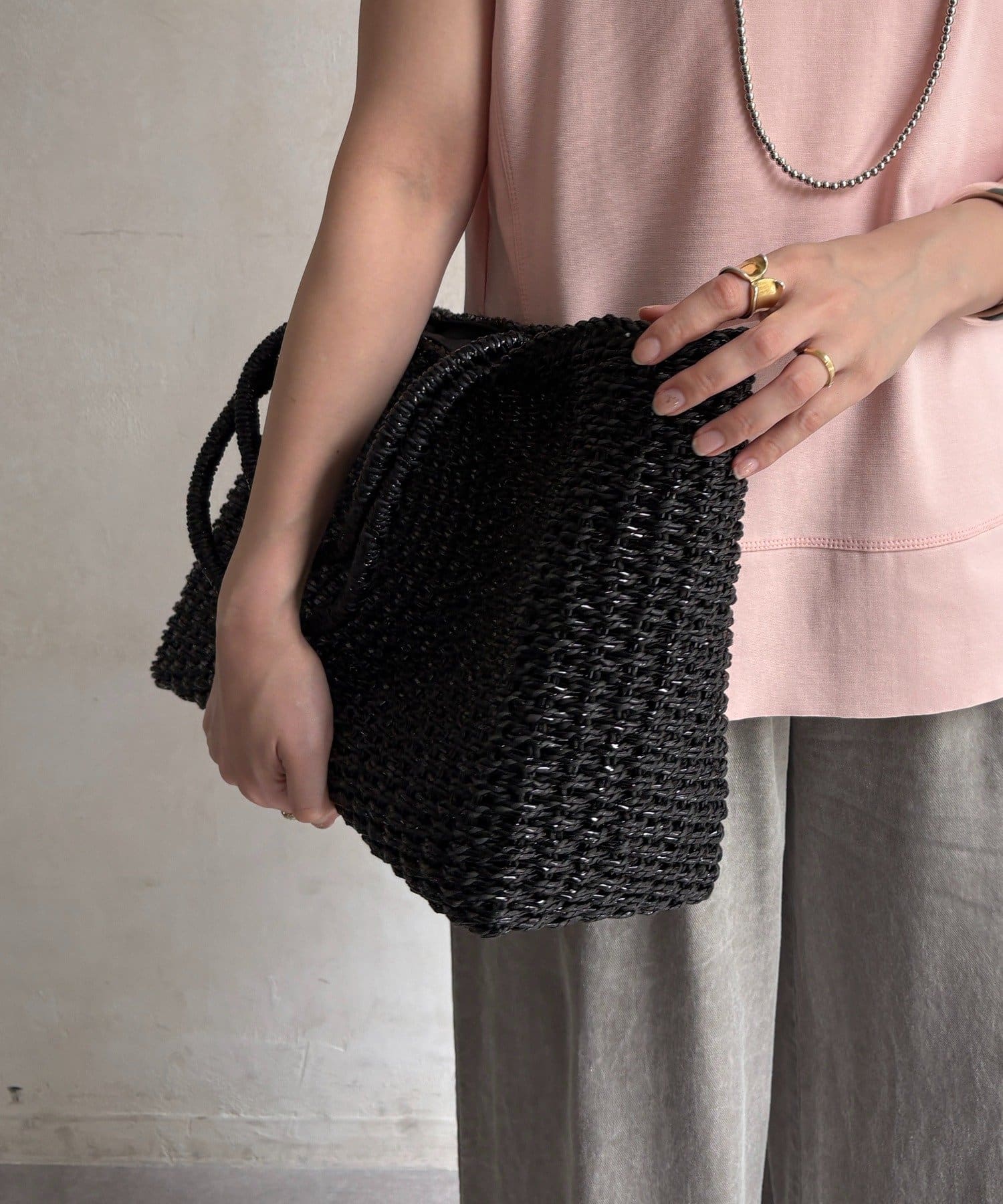 ナチュラルな編み込みの風合いが魅力で、持つだけでコーディネートに奥行きとこなれた印象を与えてくれるアイテムです。
