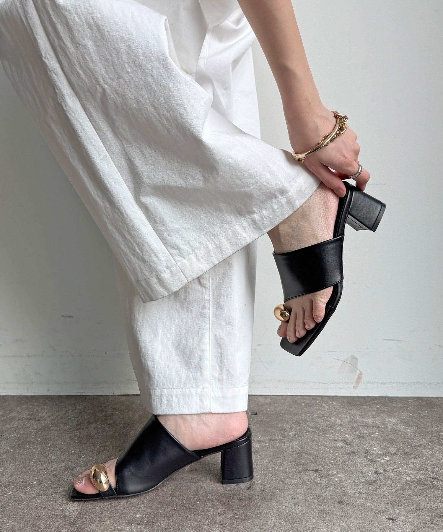 太いゴールドリングが足元にアクセントを!