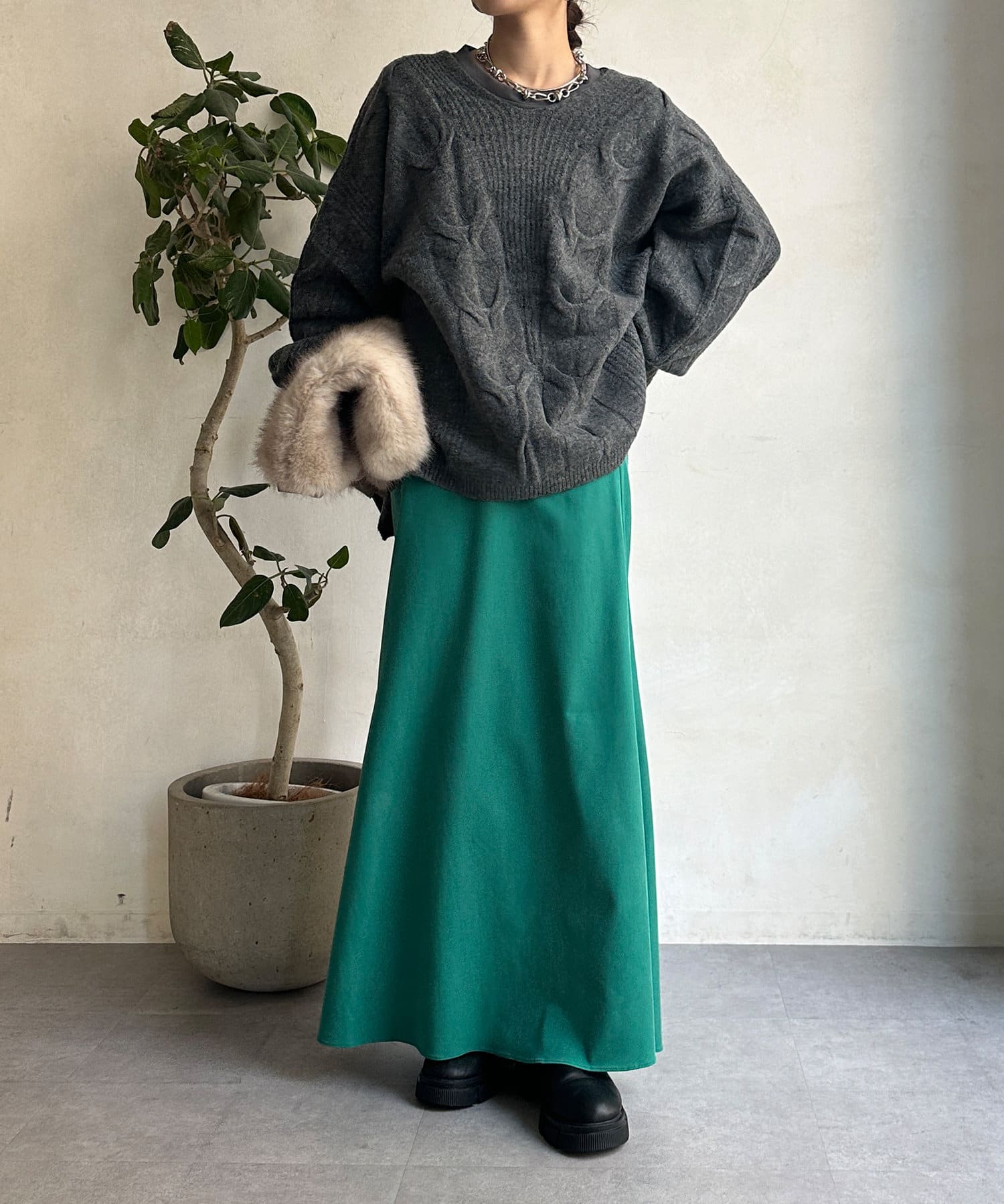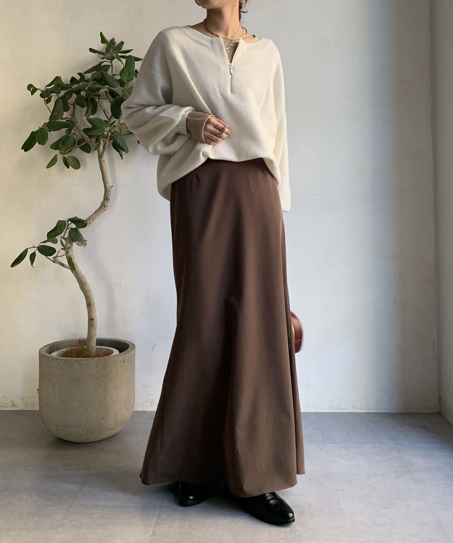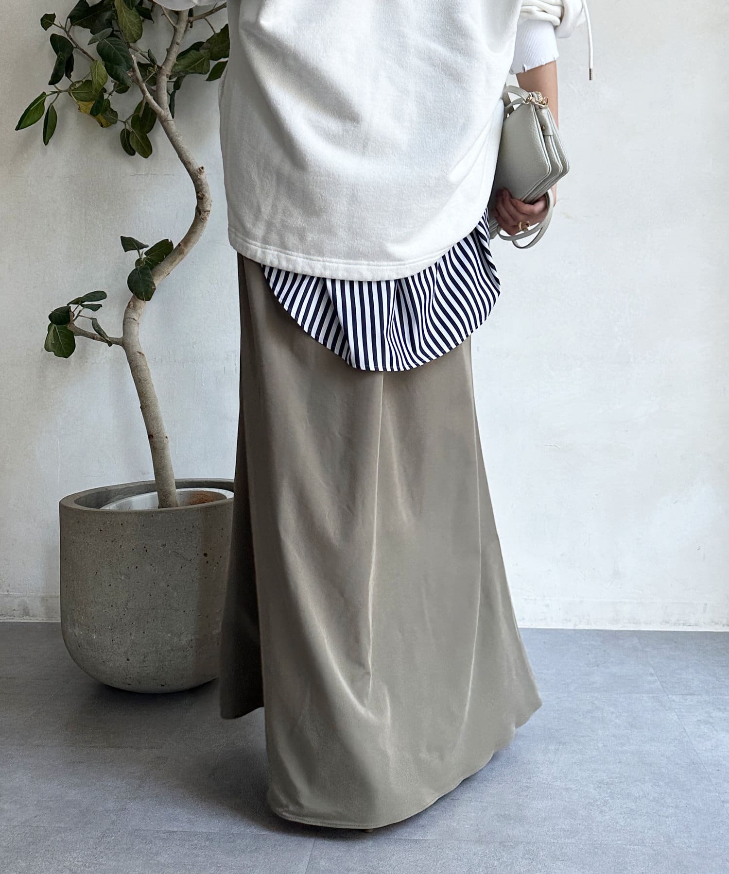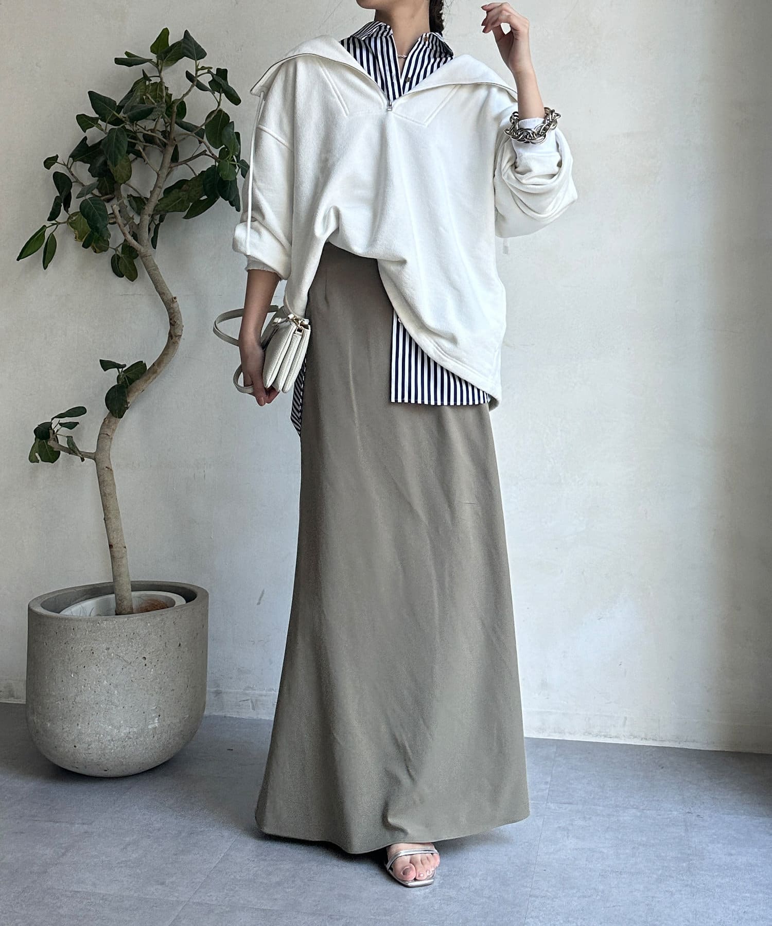 落ち感のある素材を使用し、レディライクな印象に。