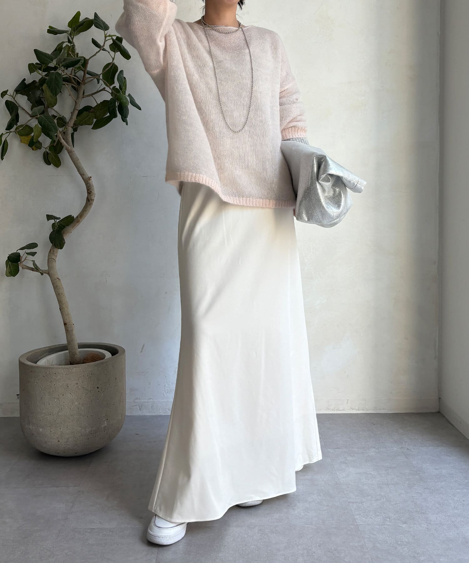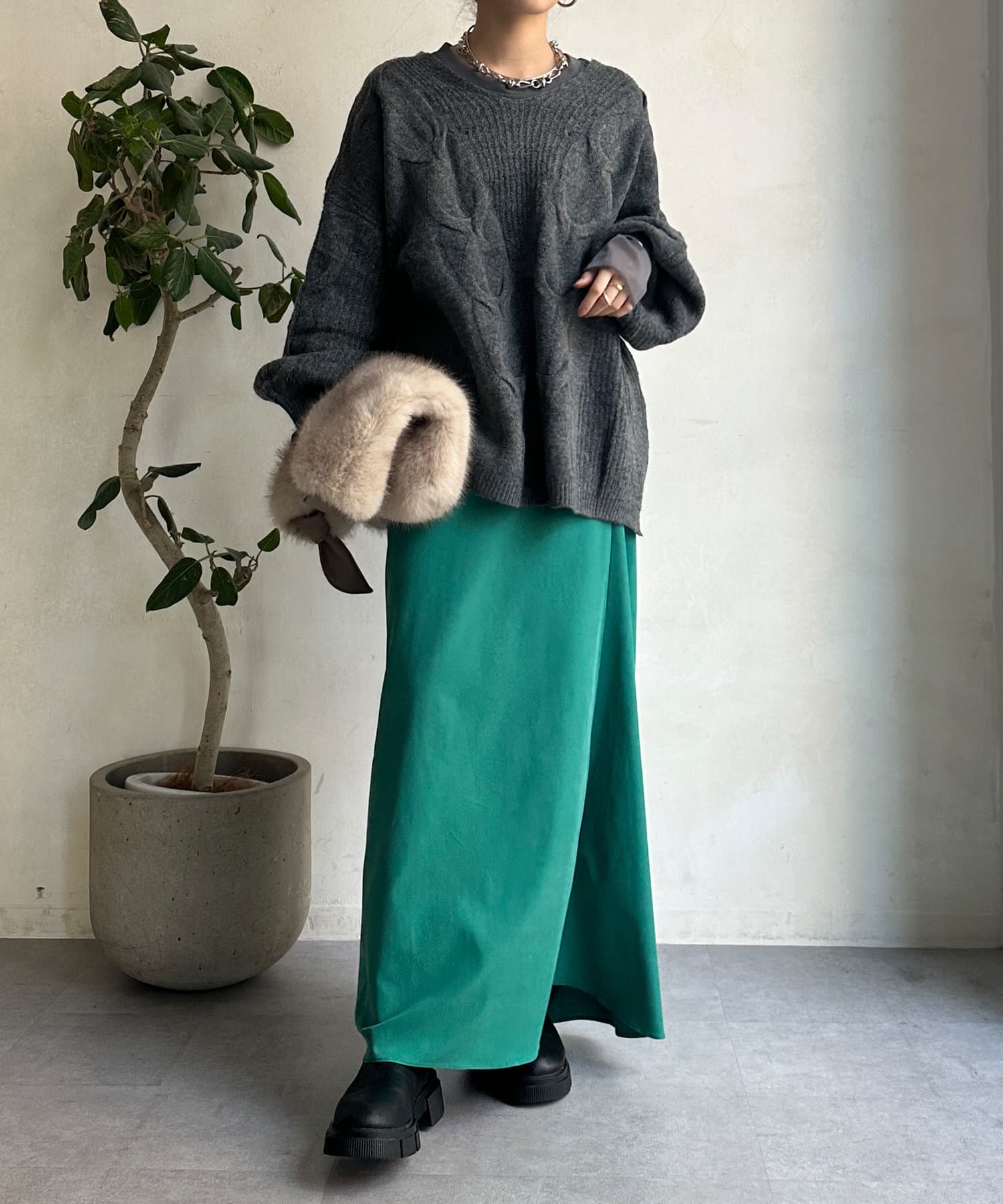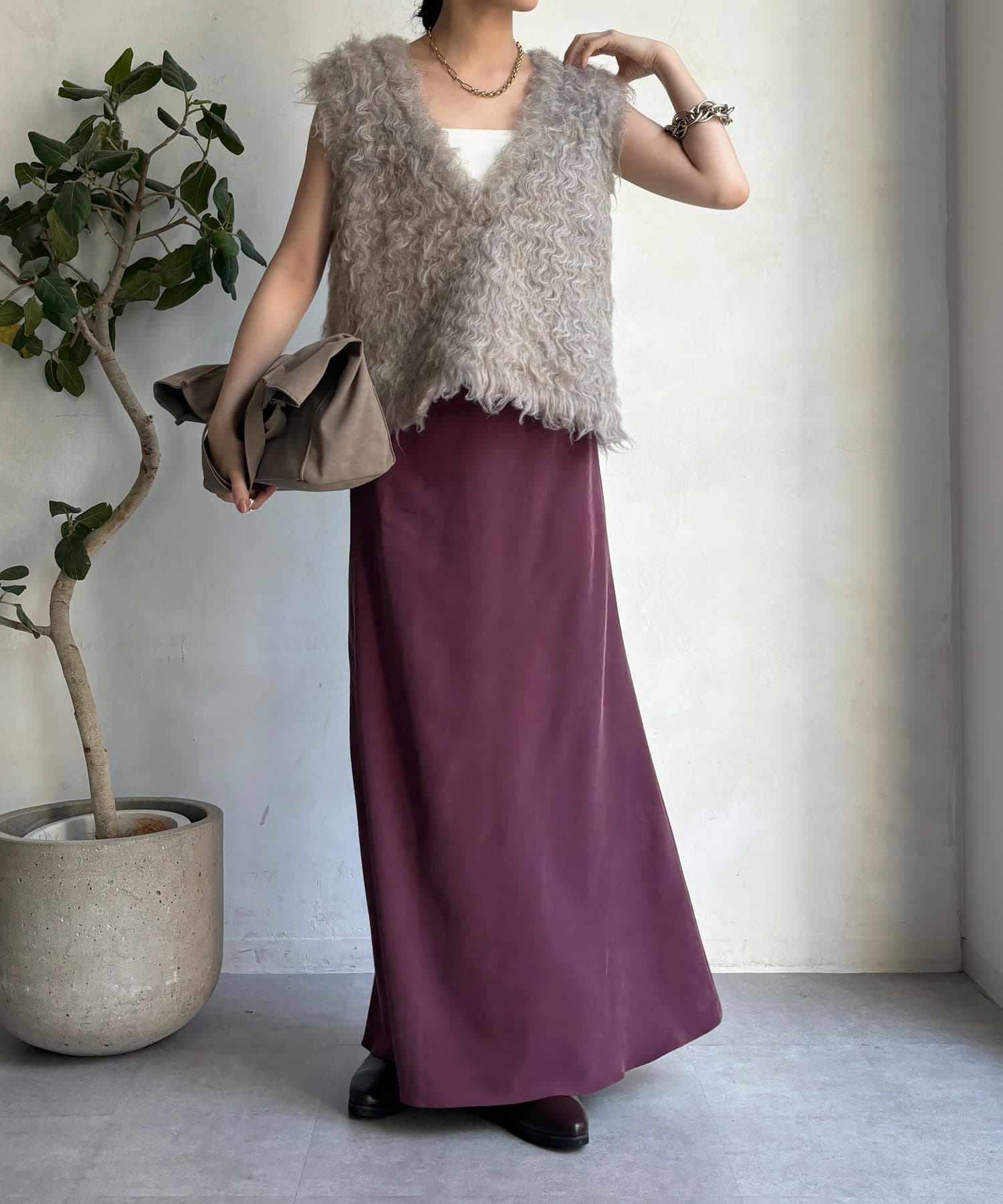 落ち感のある素材を使用し、レディライクな印象に。