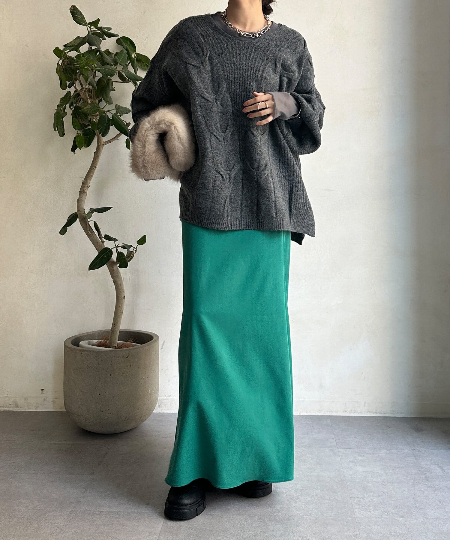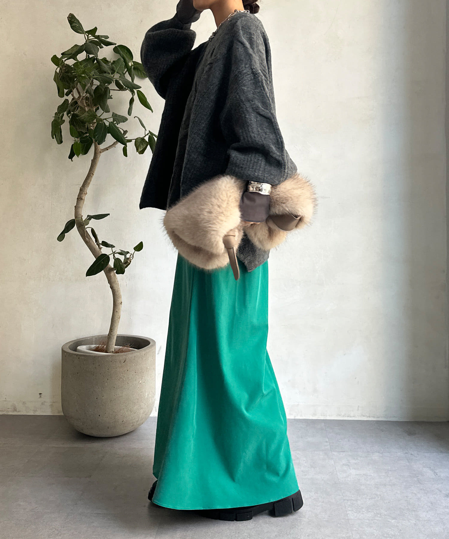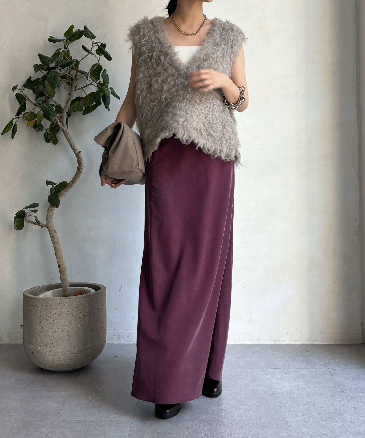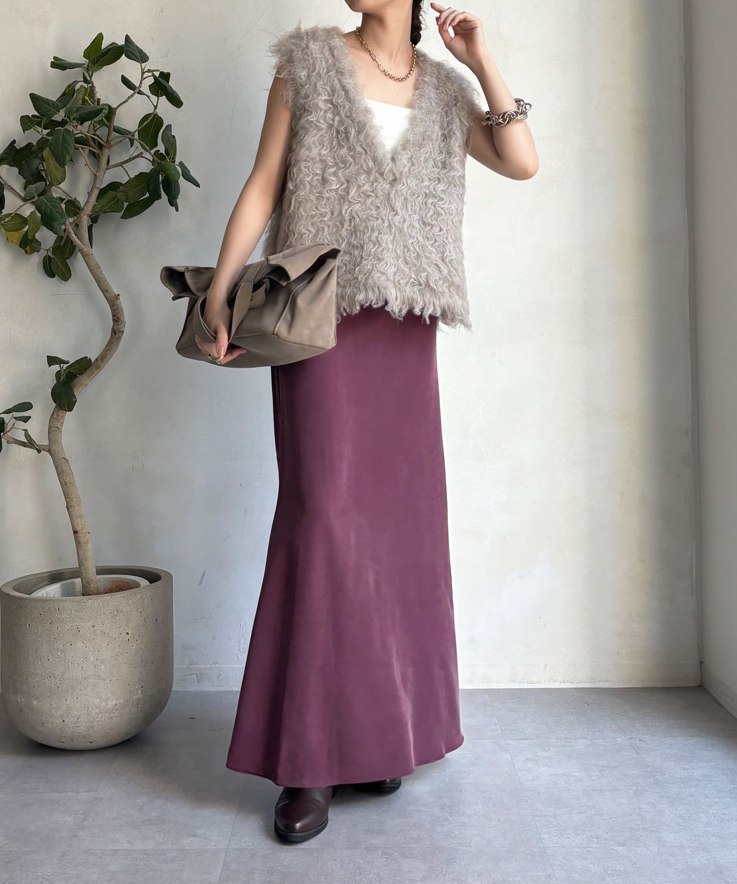 落ち感のある素材を使用し、レディライクな印象に。