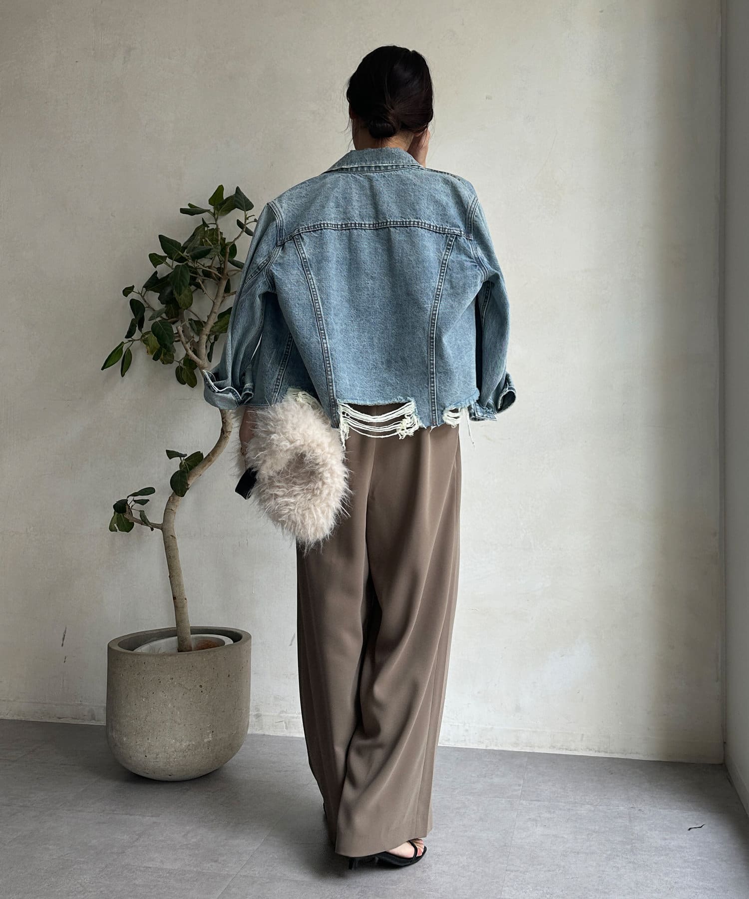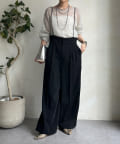 クラシカルな要素を取り入れながらも、ゆとり感のあるパンツシルエットで旬な印象に。