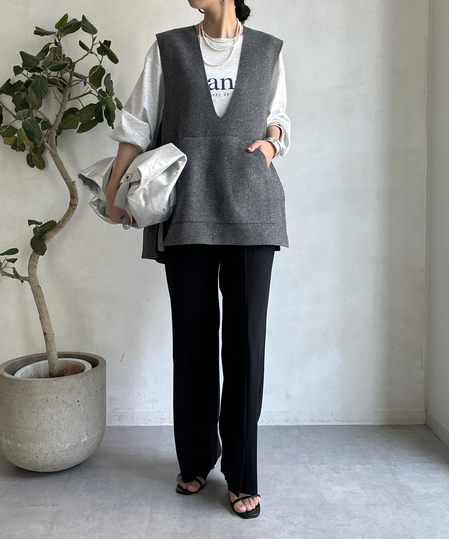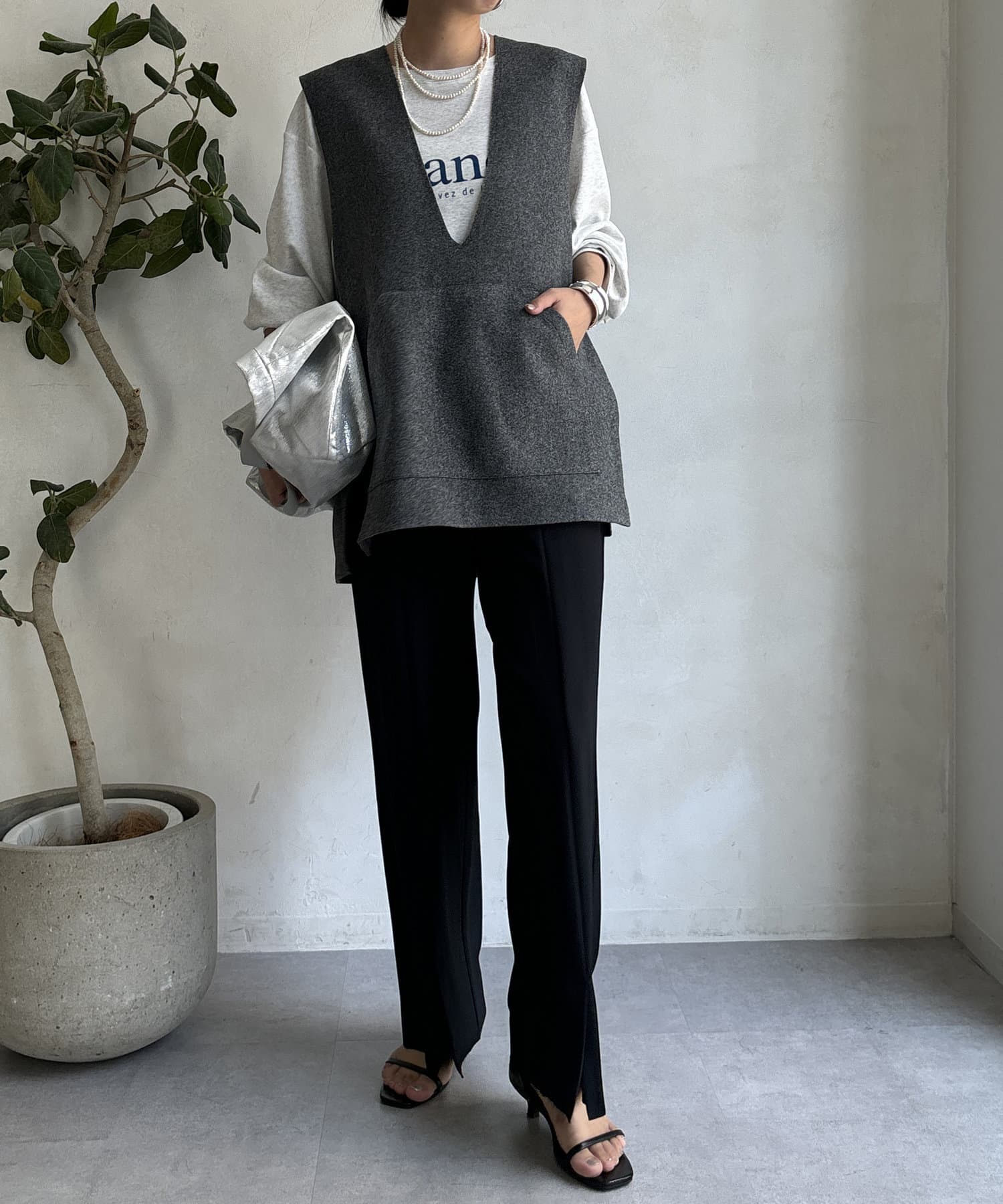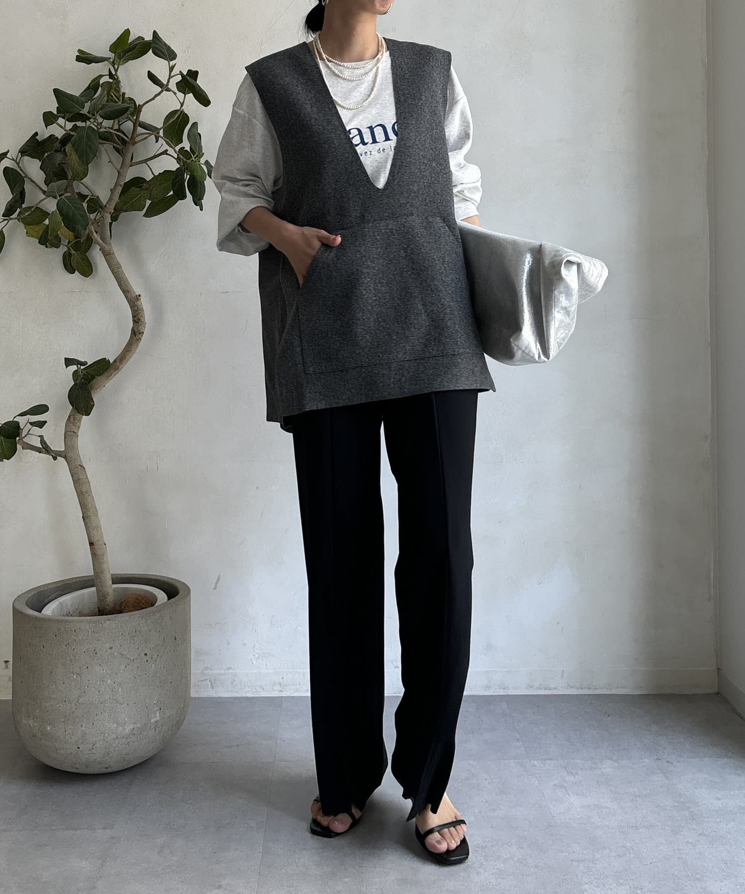 裾のベンツはフロントに入れることで、コーディネートのアクセントに。