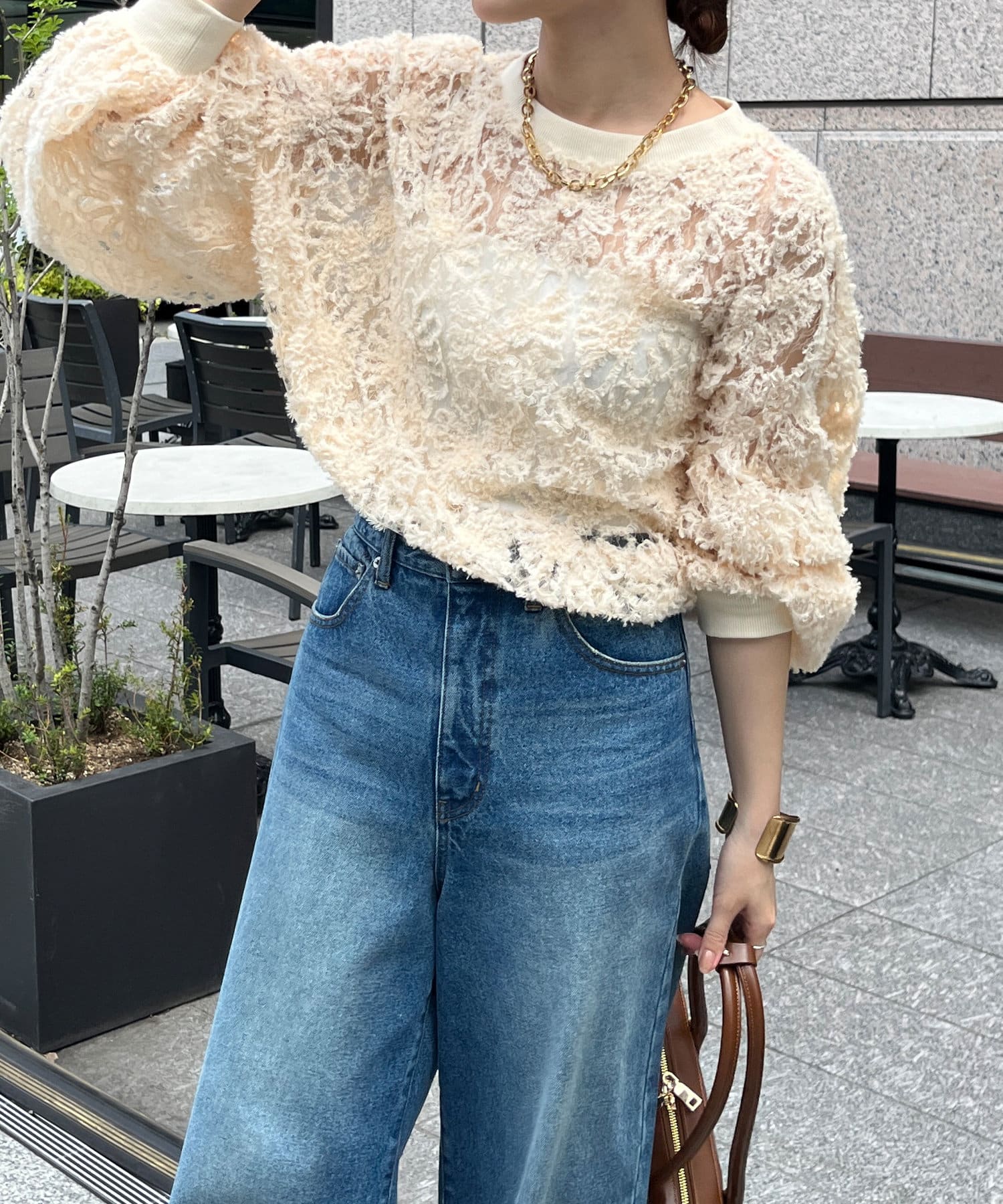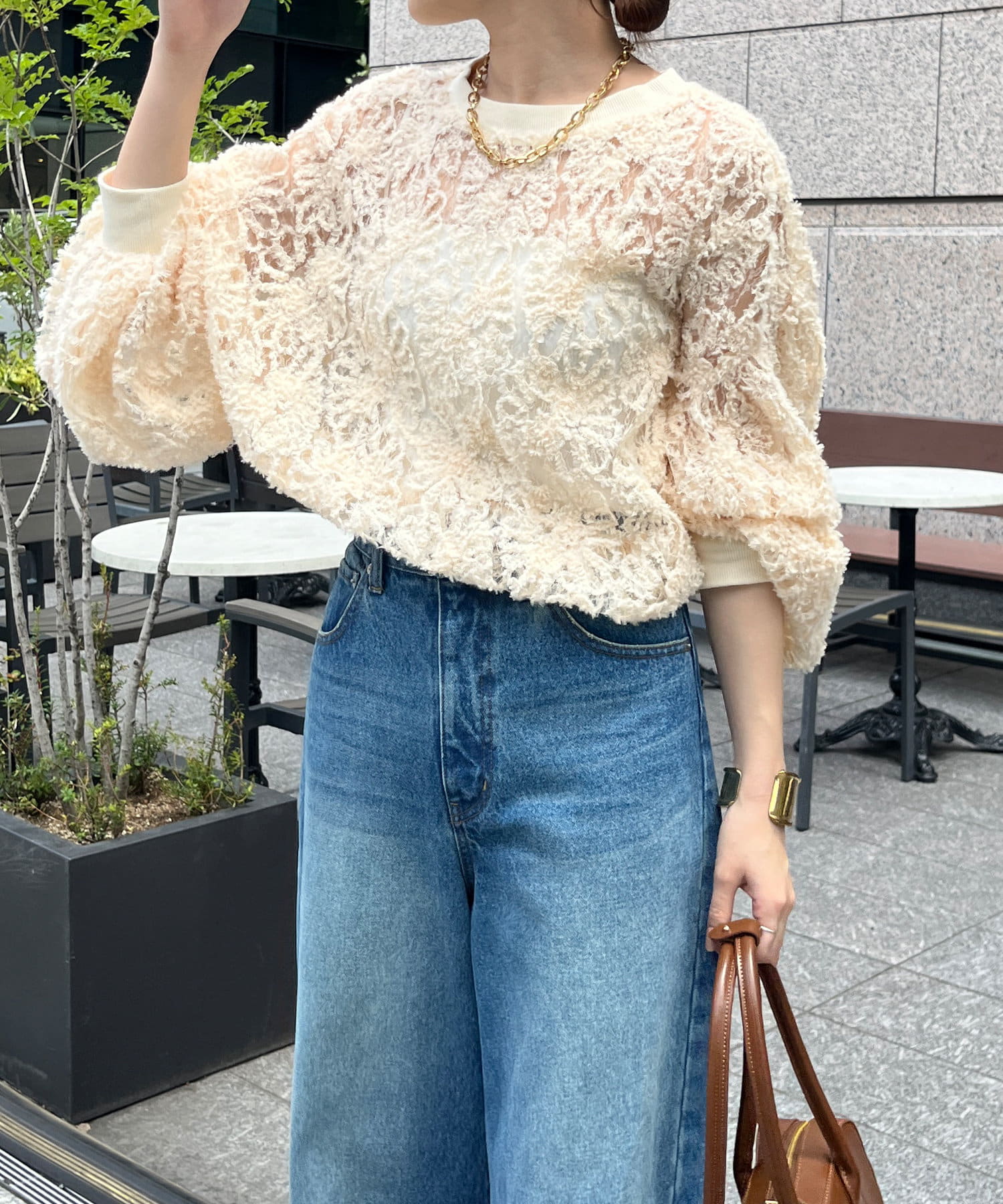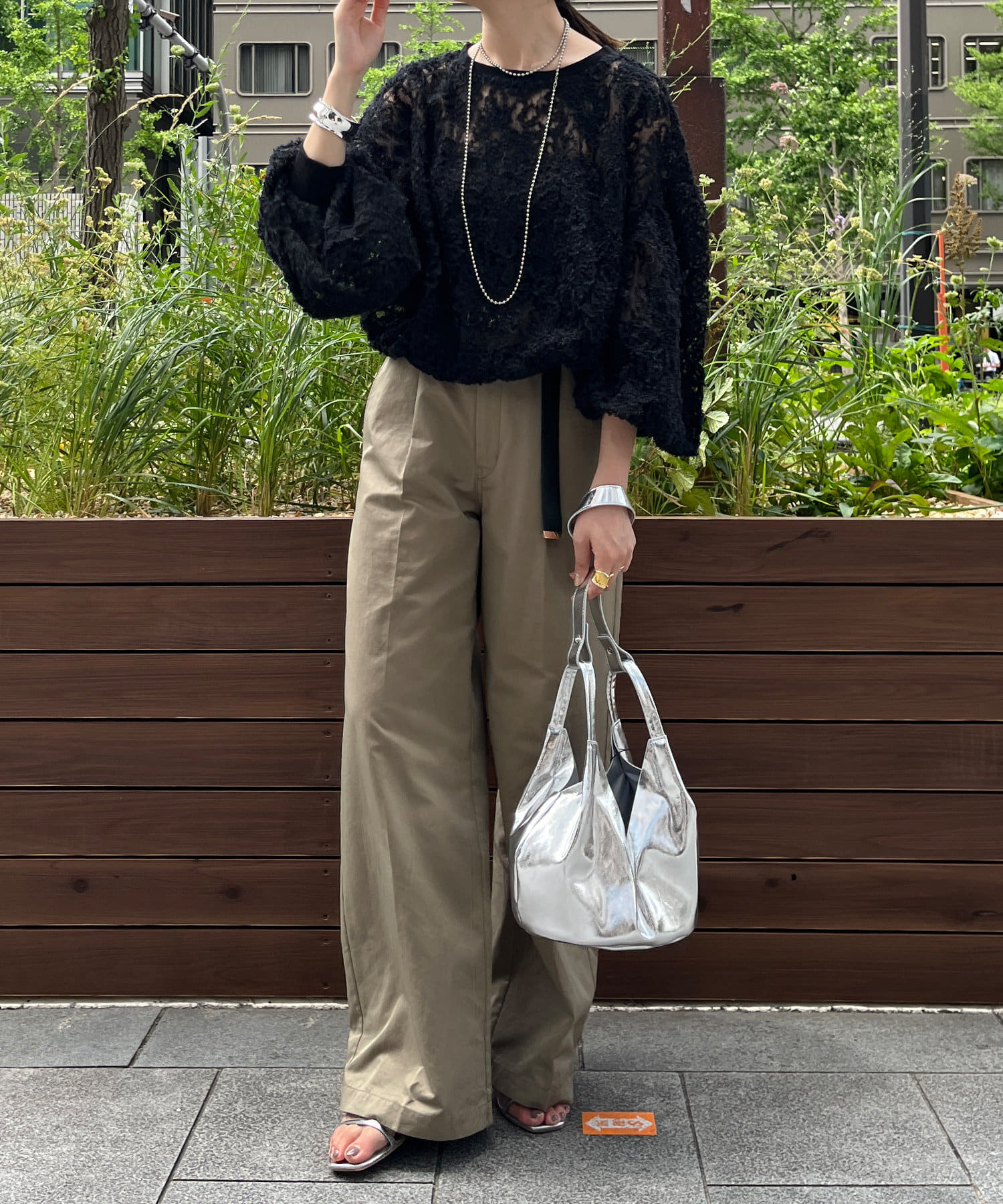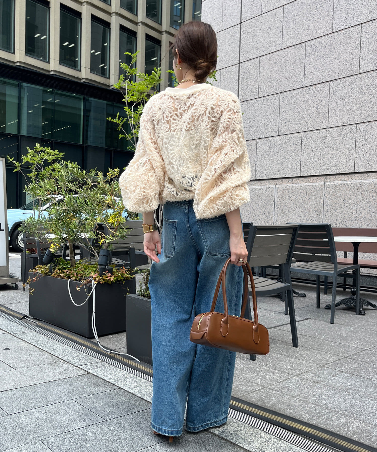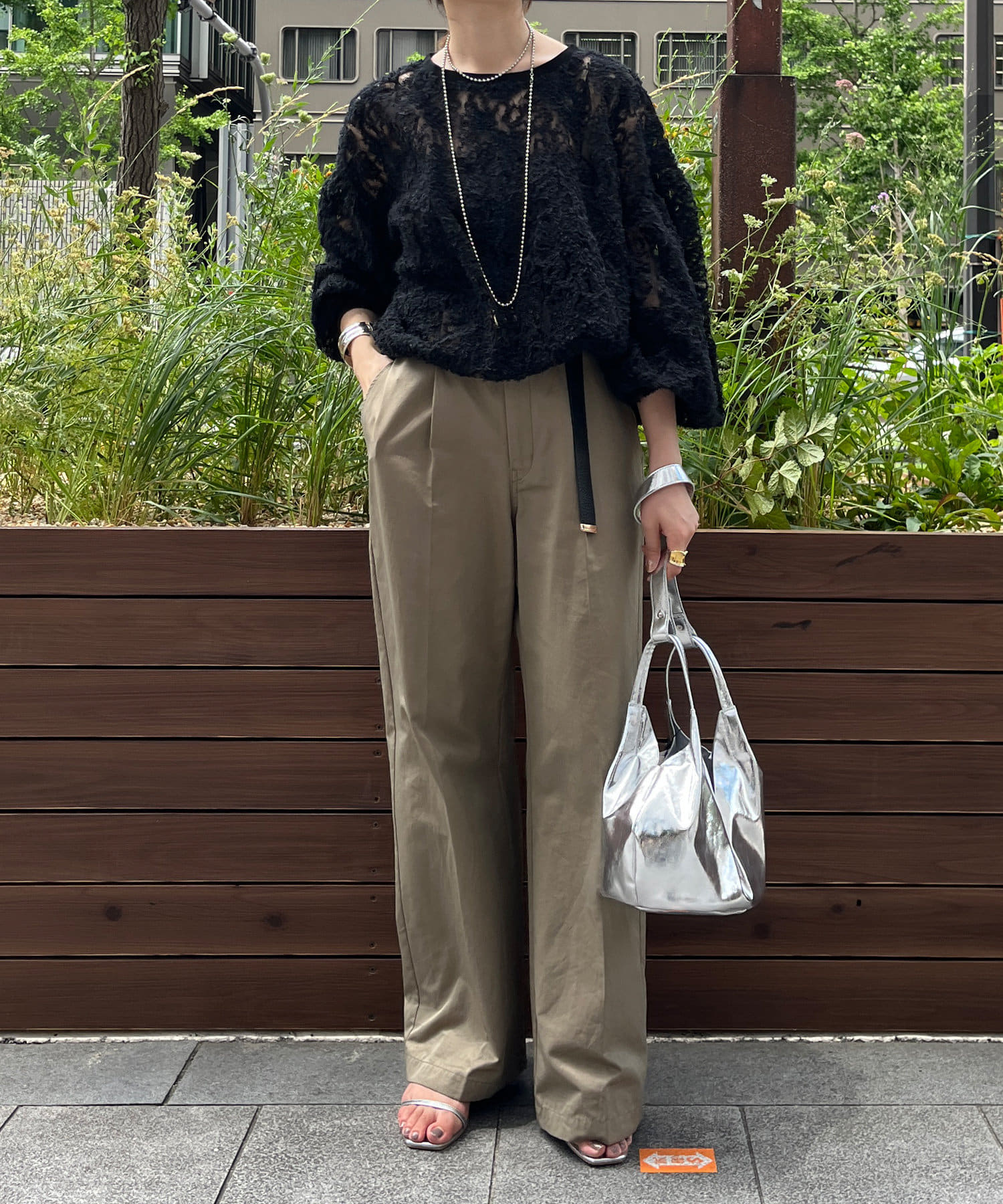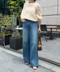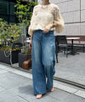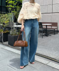 カジュアルなボトムと合わせてバランスをとったスタイリングがおすすめです。