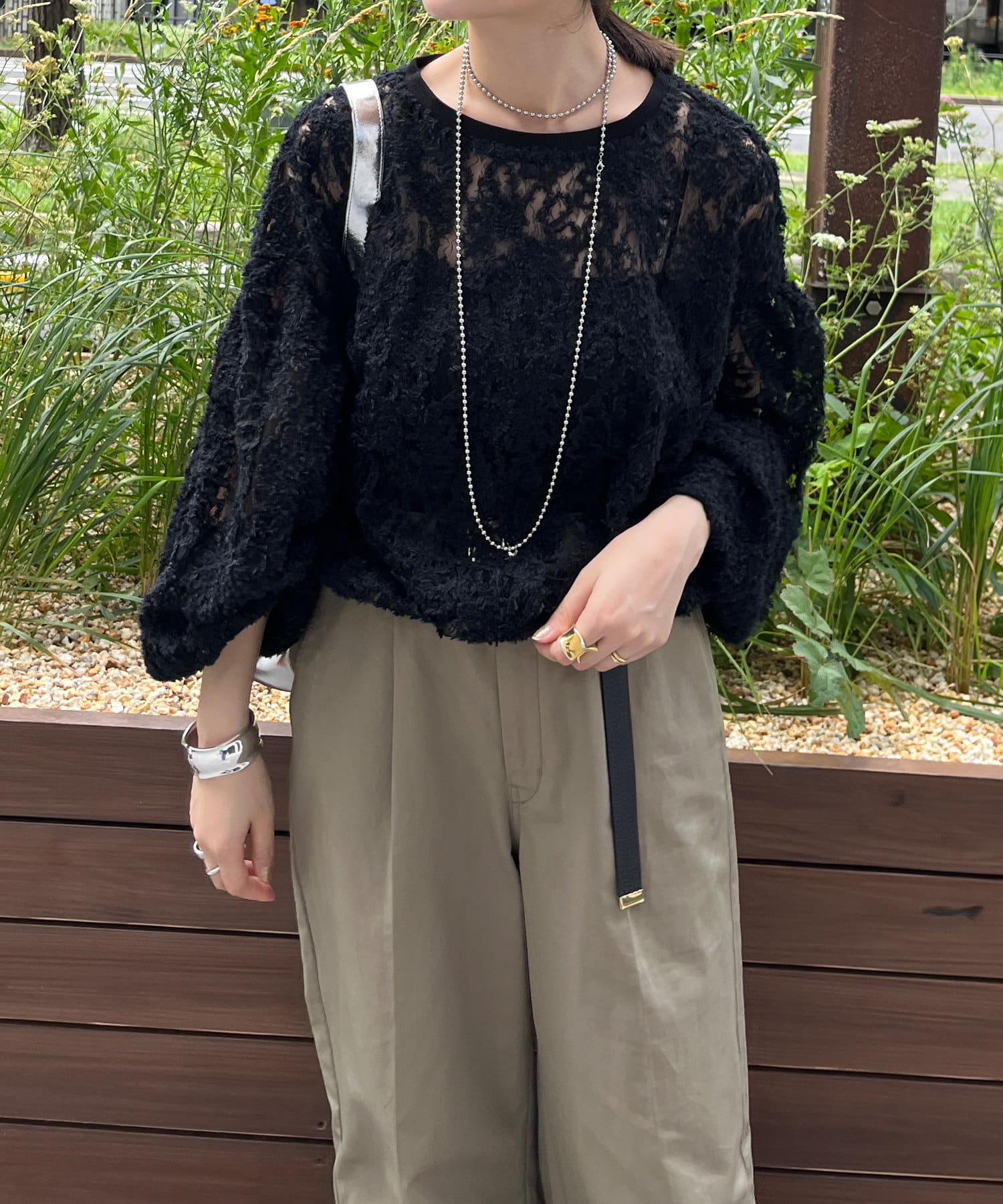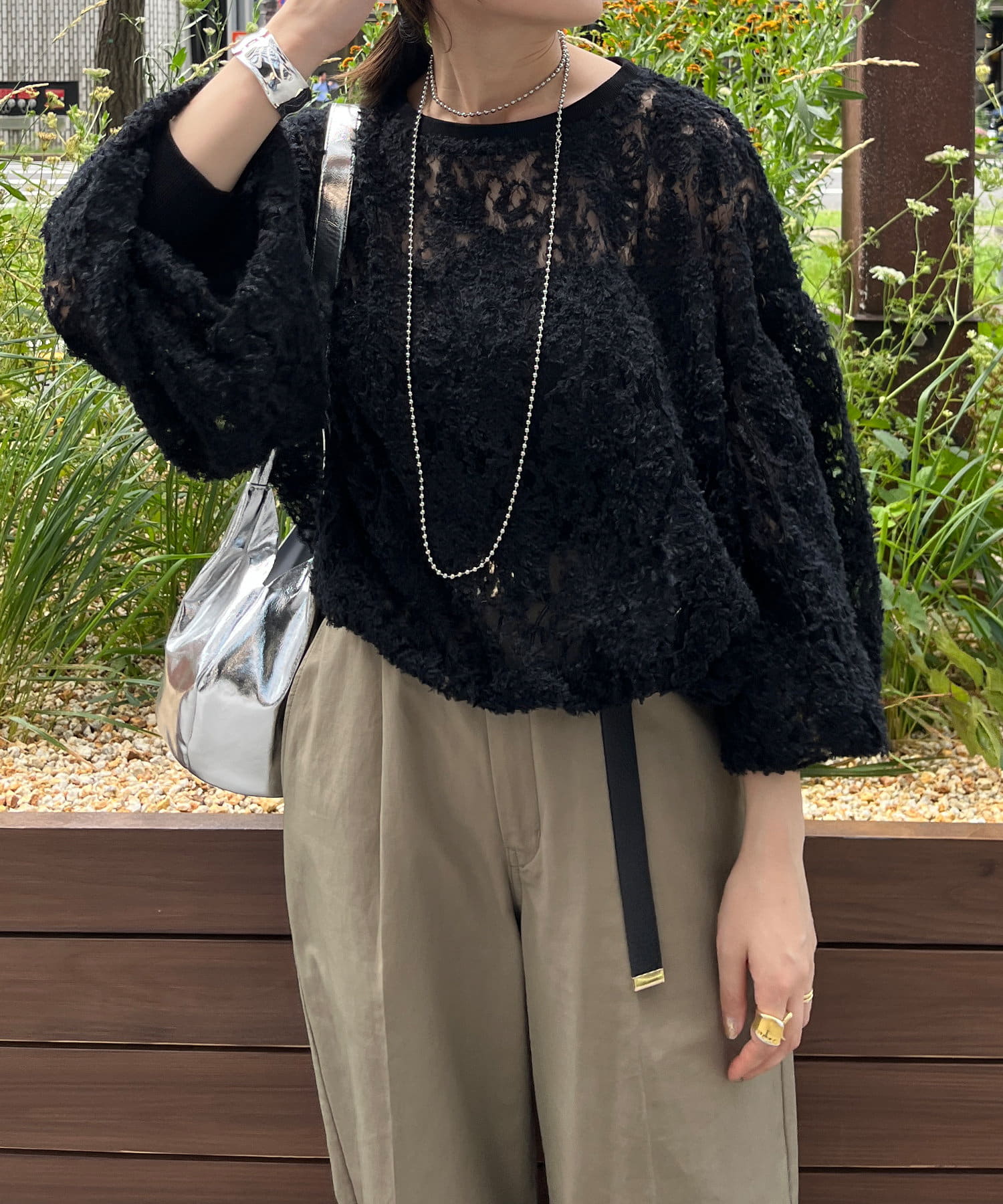 お袖口や首回りはリブ仕様で施し、カジュアルなポイントをプラス。