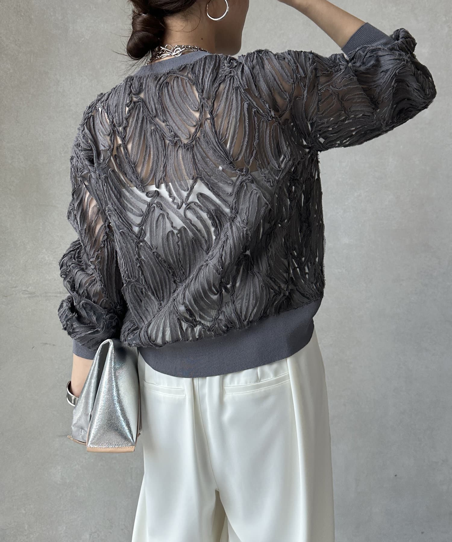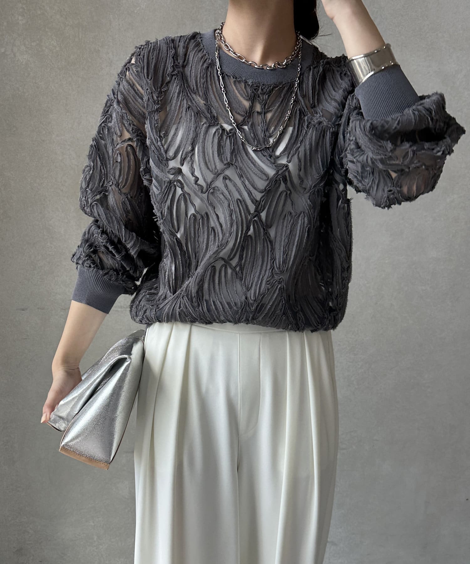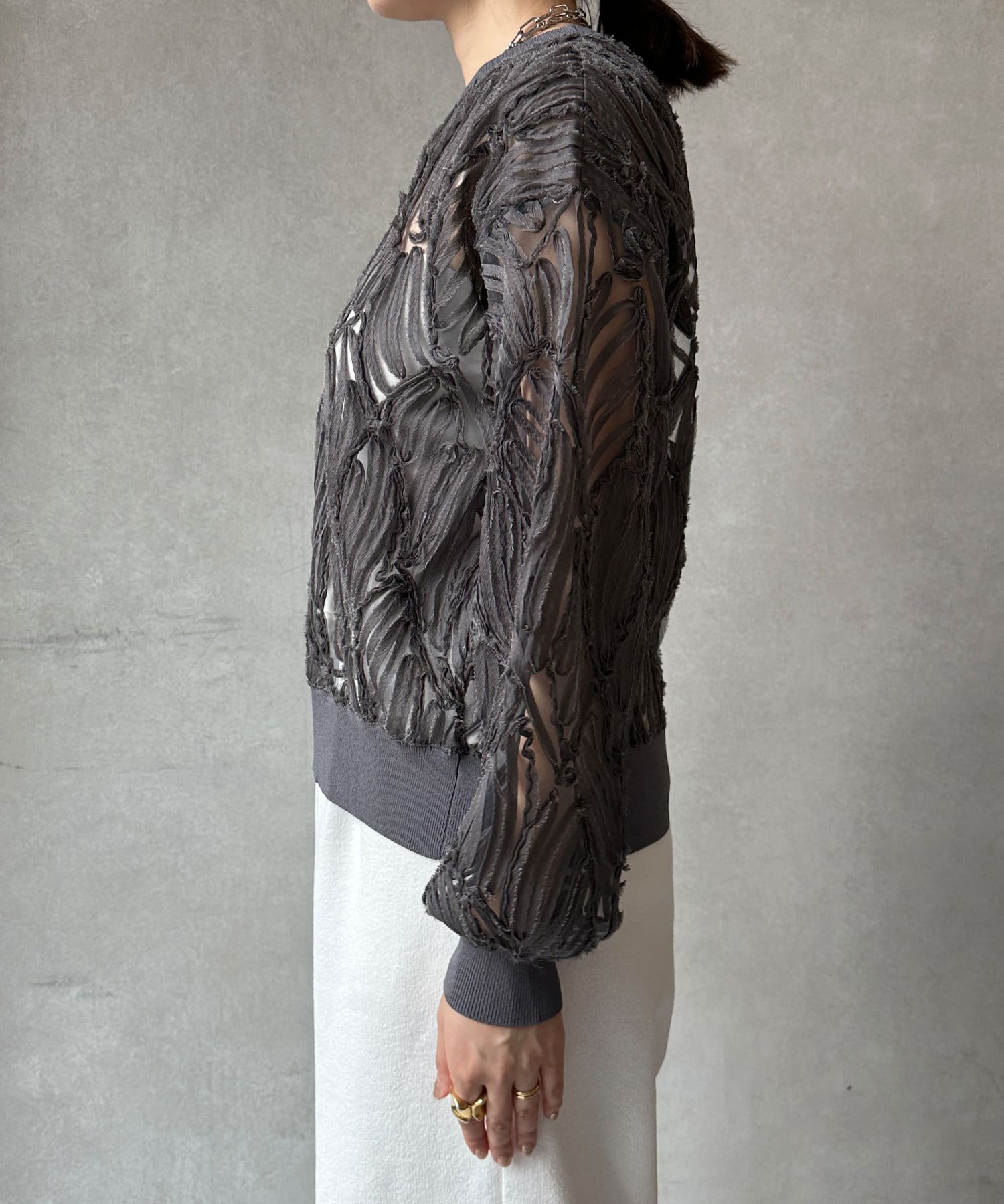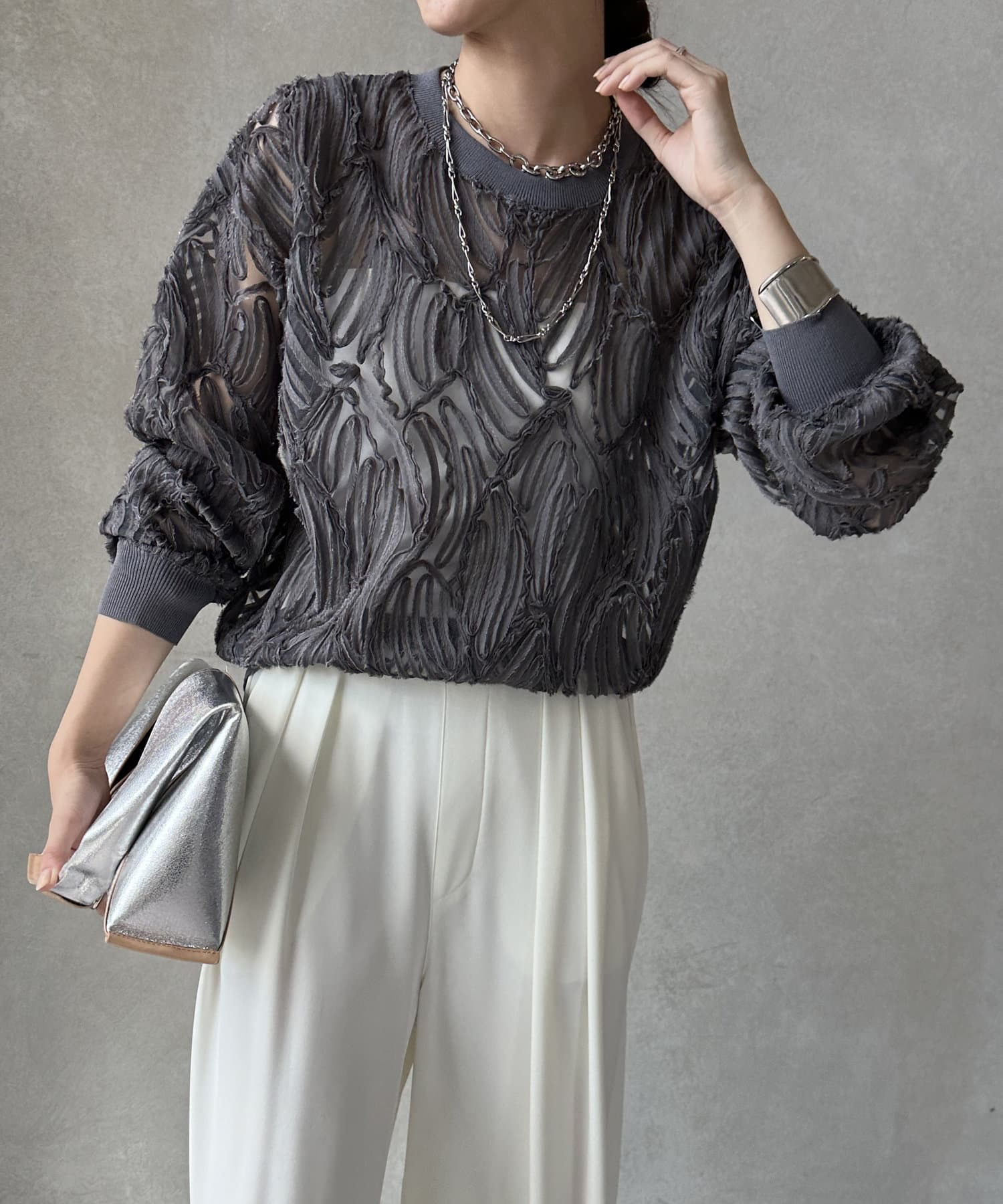 トレンドのシアーに存在感抜群のコード刺繍デザインが、いつものコーデに投入するだけで一気に華やかさUP!!