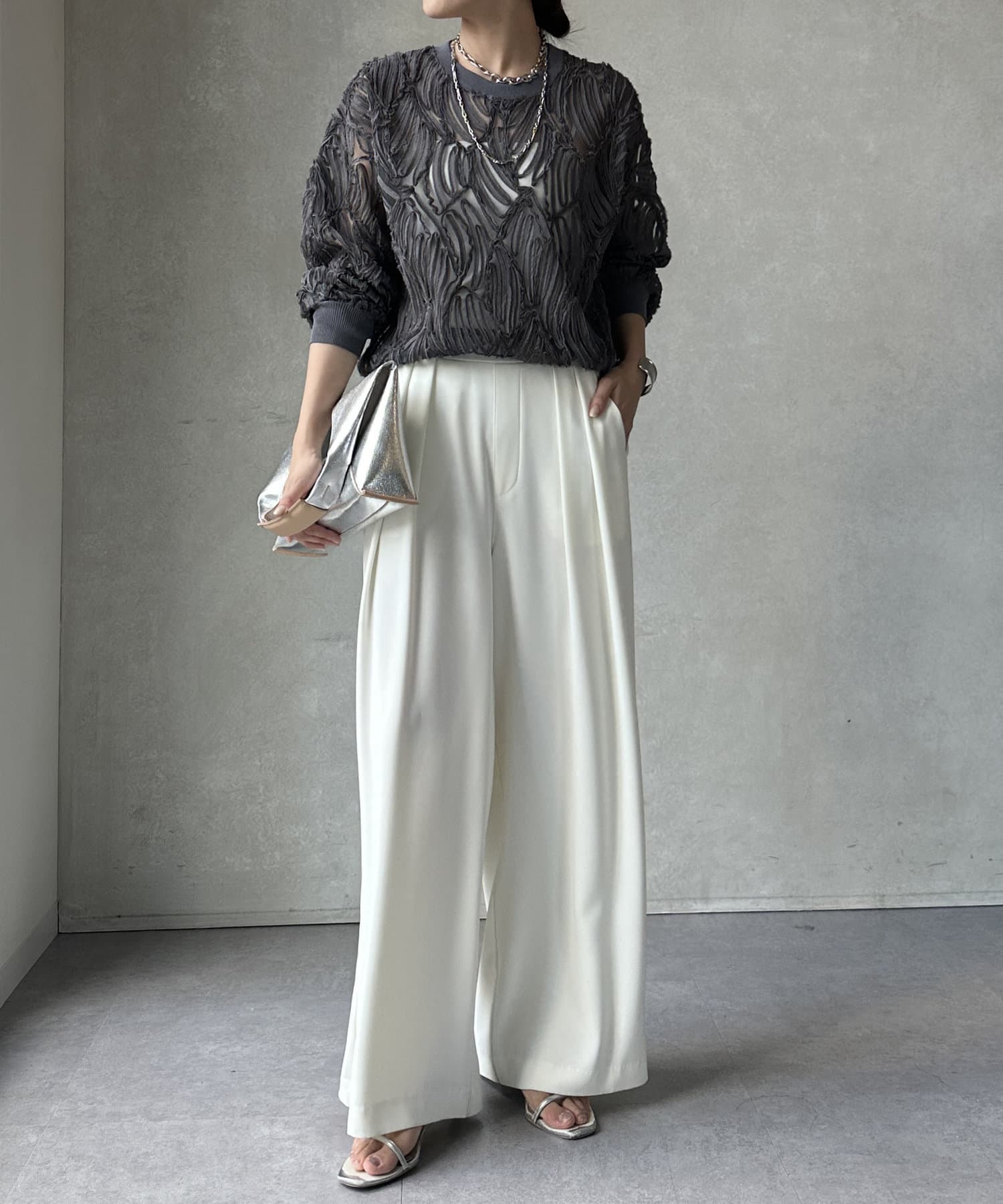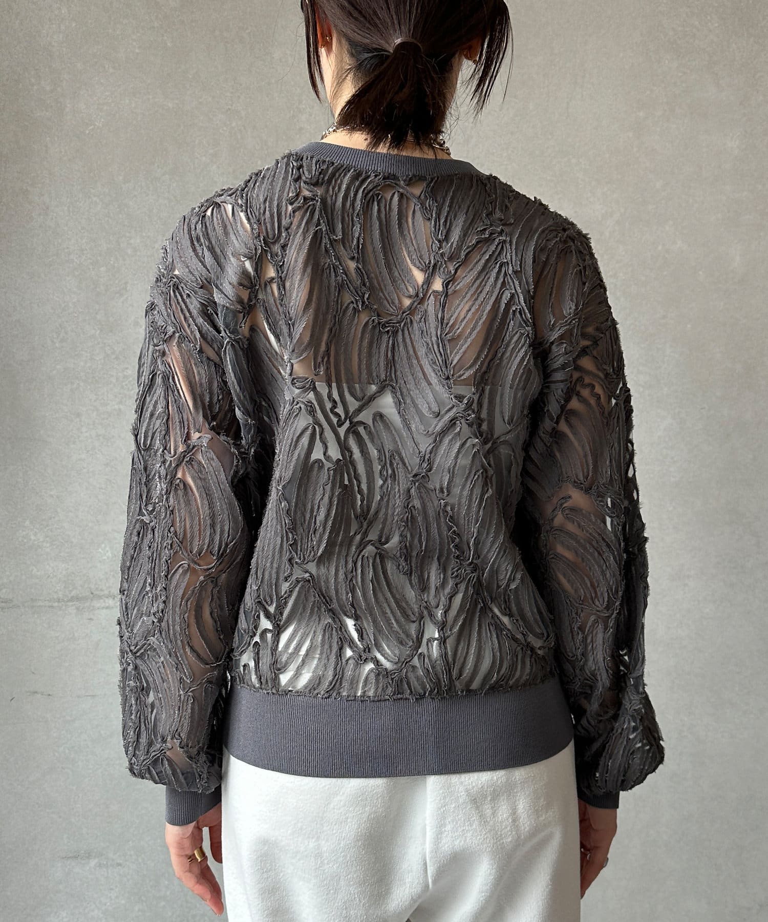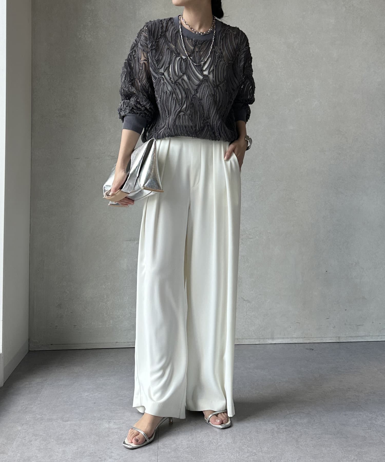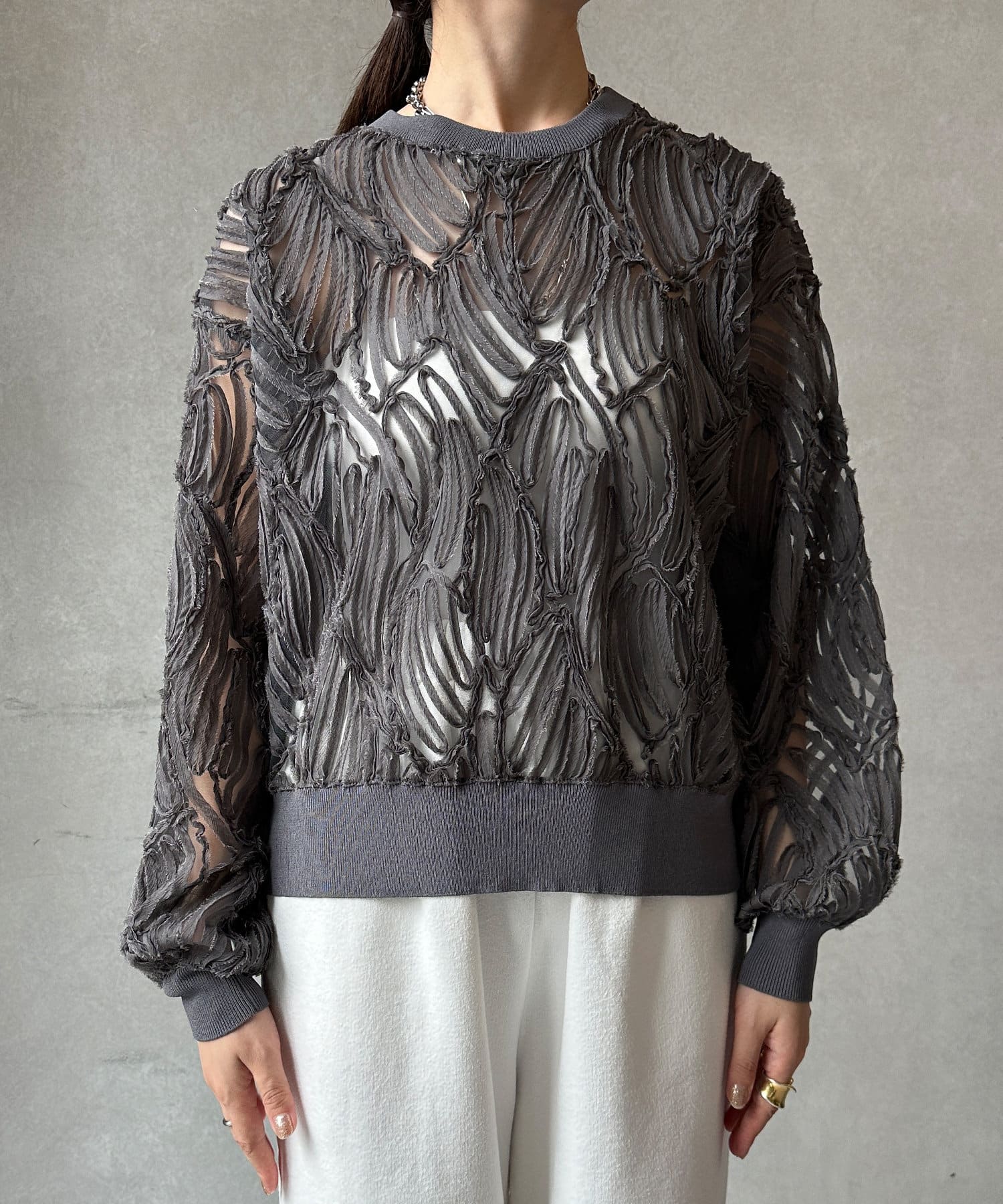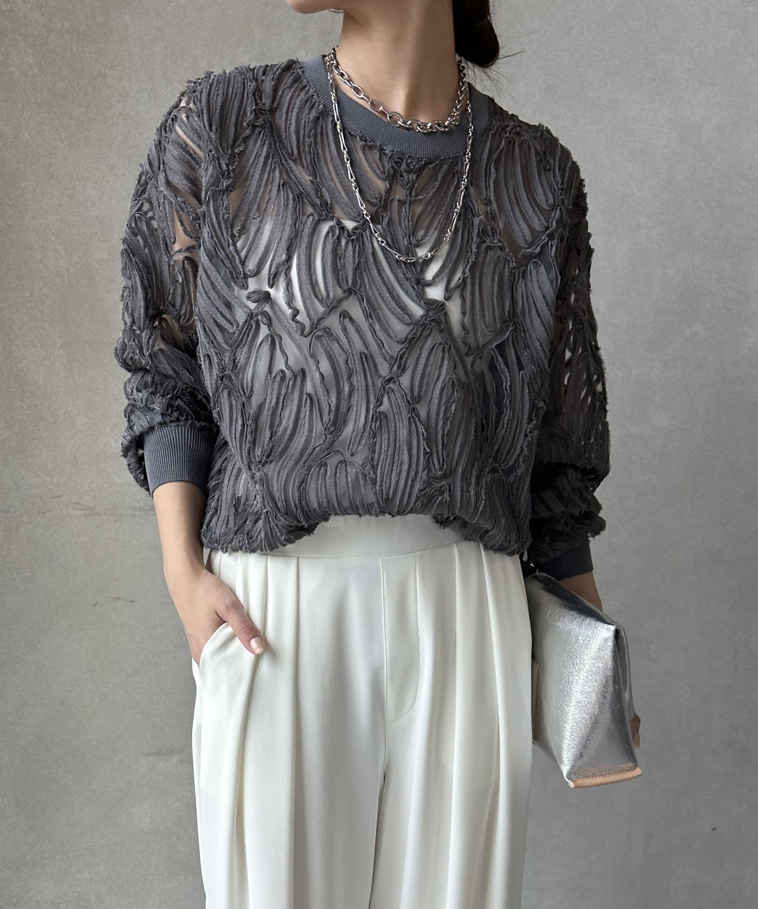 トレンドのシアーに存在感抜群のコード刺繍デザインが、いつものコーデに投入するだけで一気に華やかさUP!!