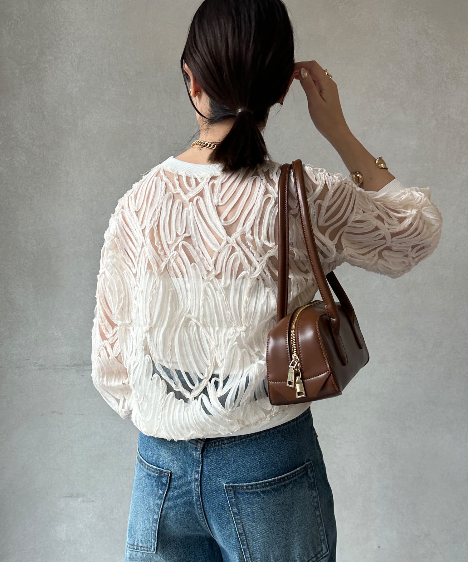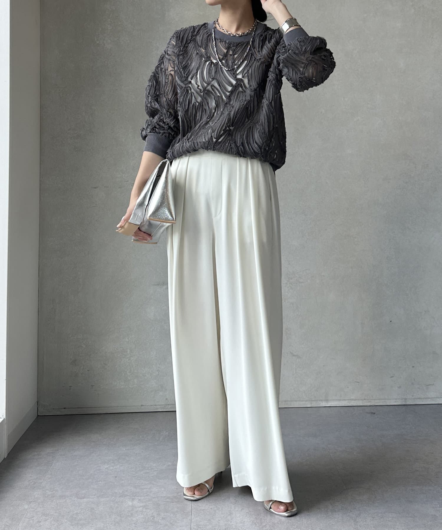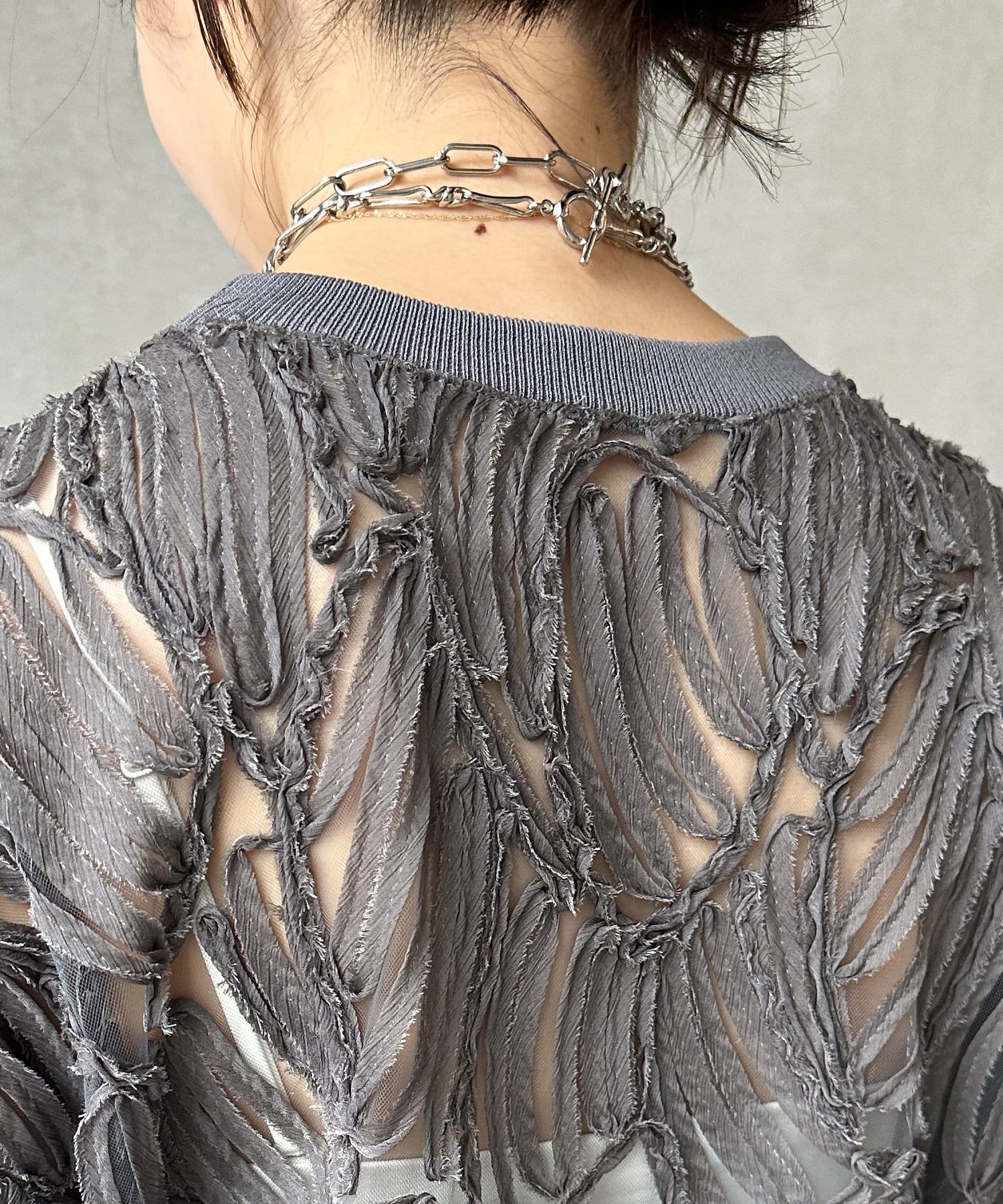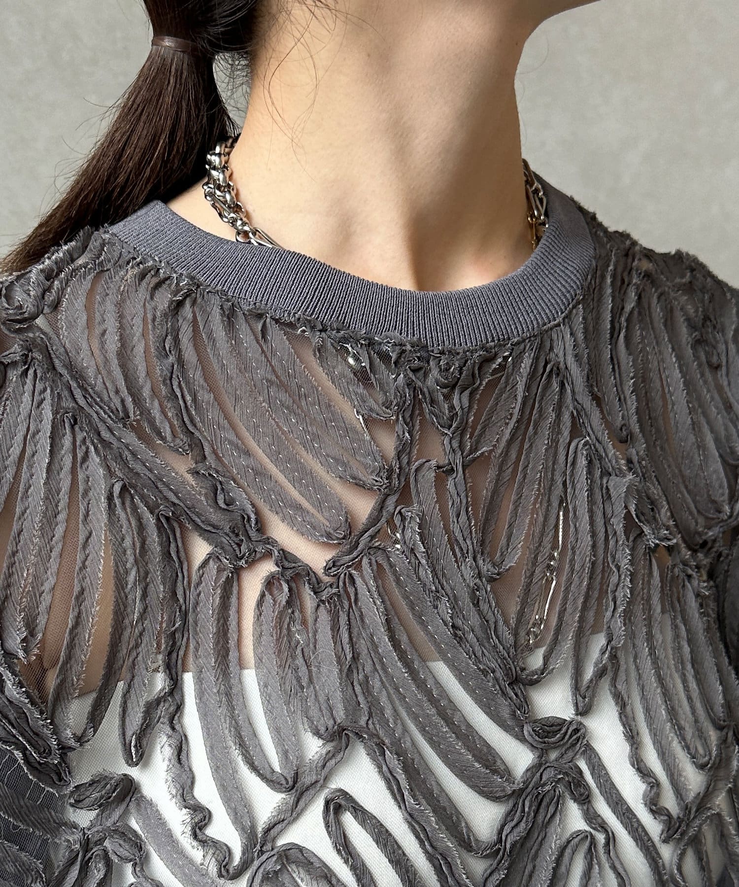 トレンドのシアーに存在感抜群のコード刺繍デザインが、いつものコーデに投入するだけで一気に華やかさUP!!
