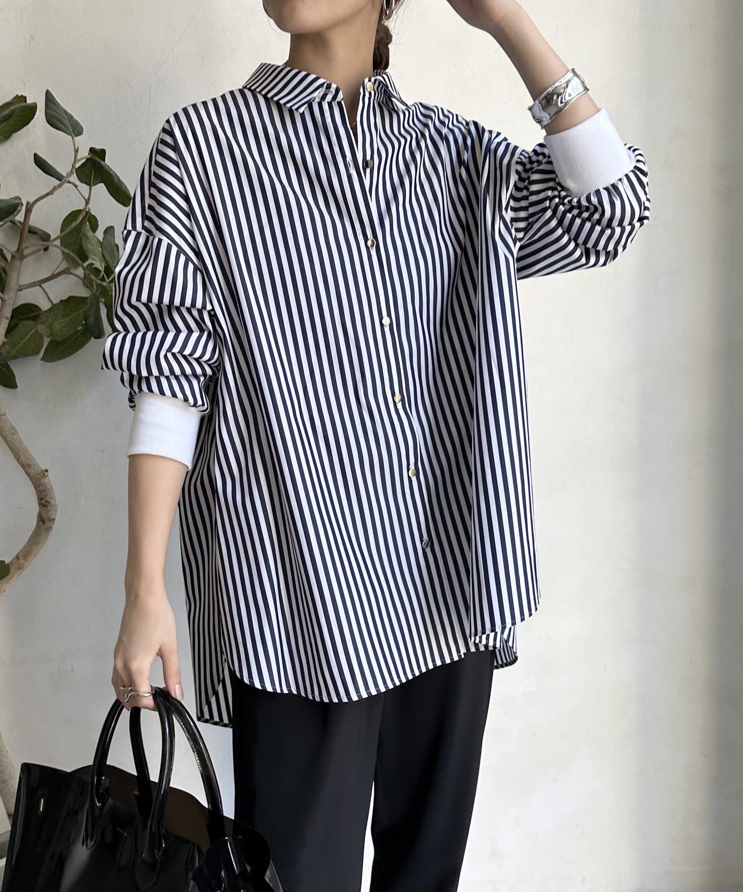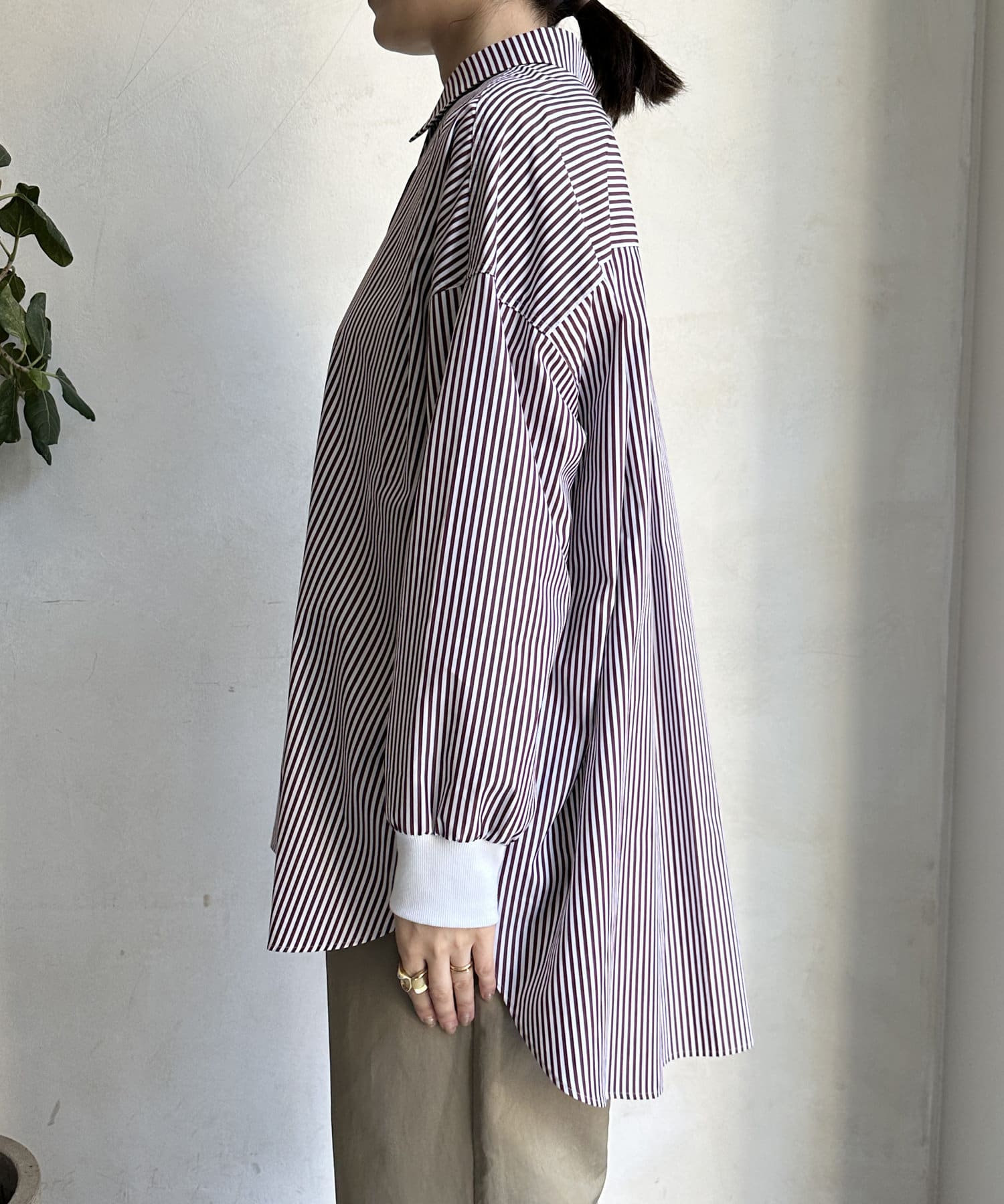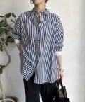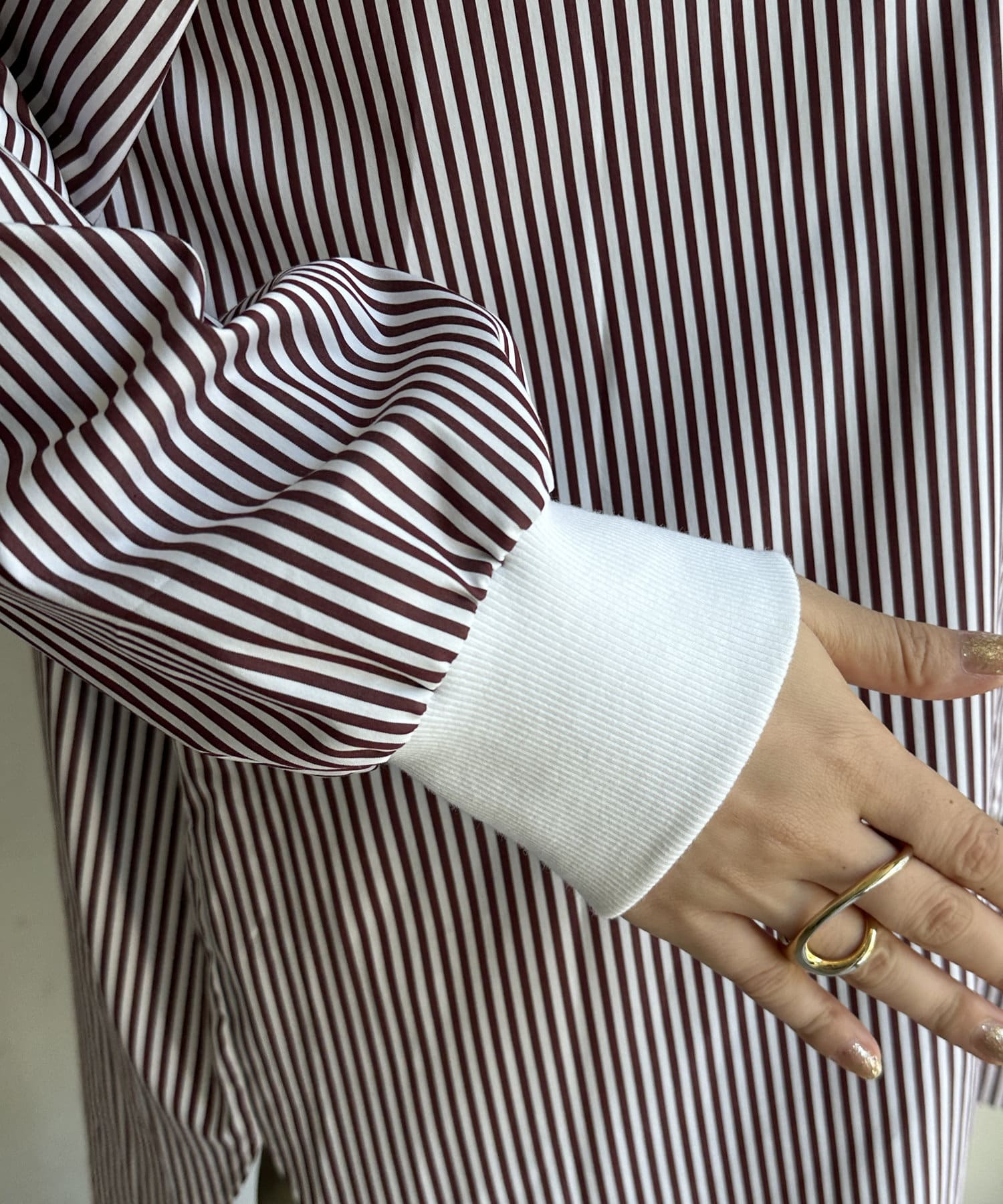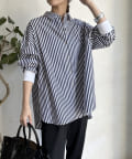 【追加生産決定】GOLDボタン袖リブストライプシャツ