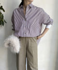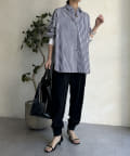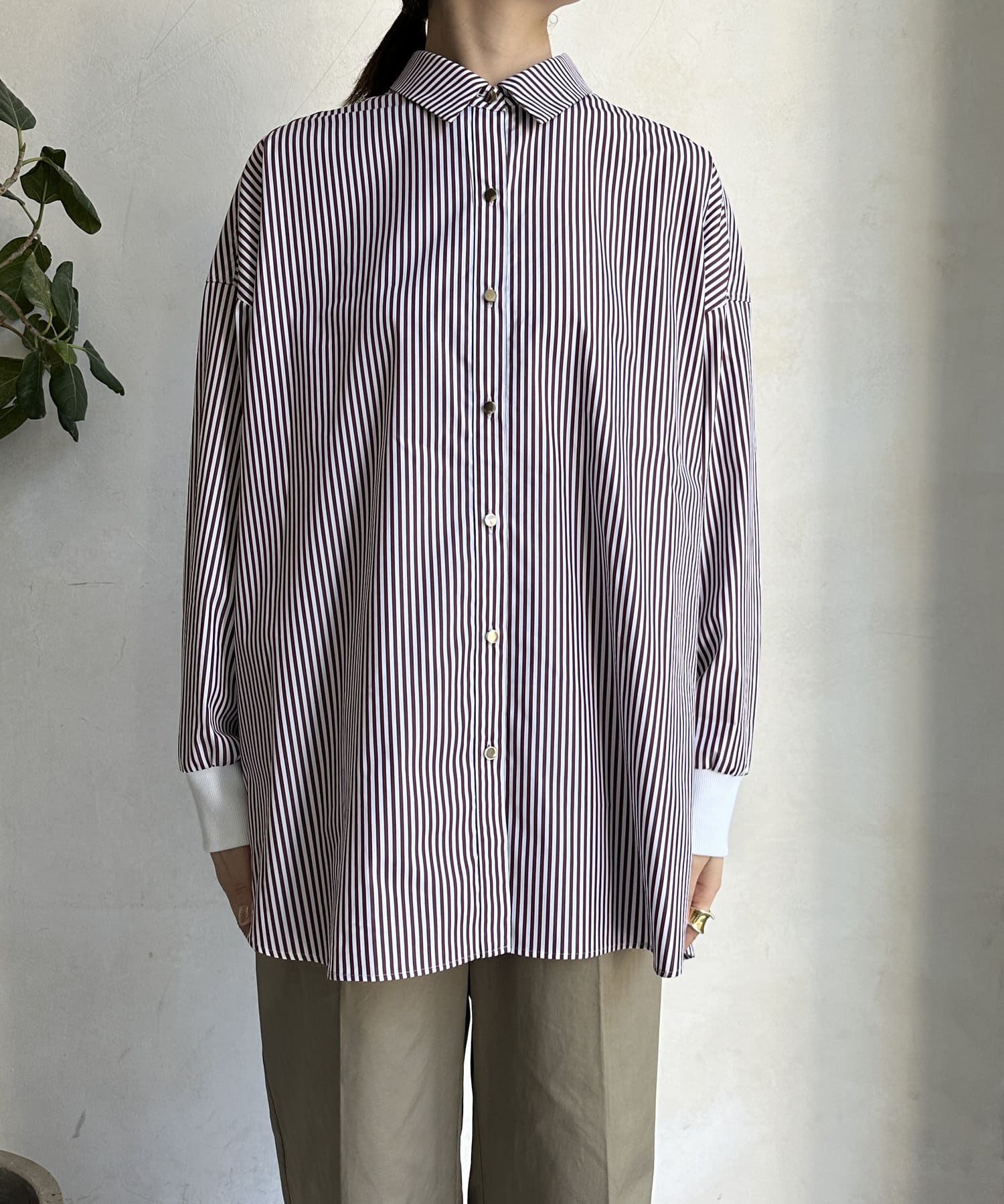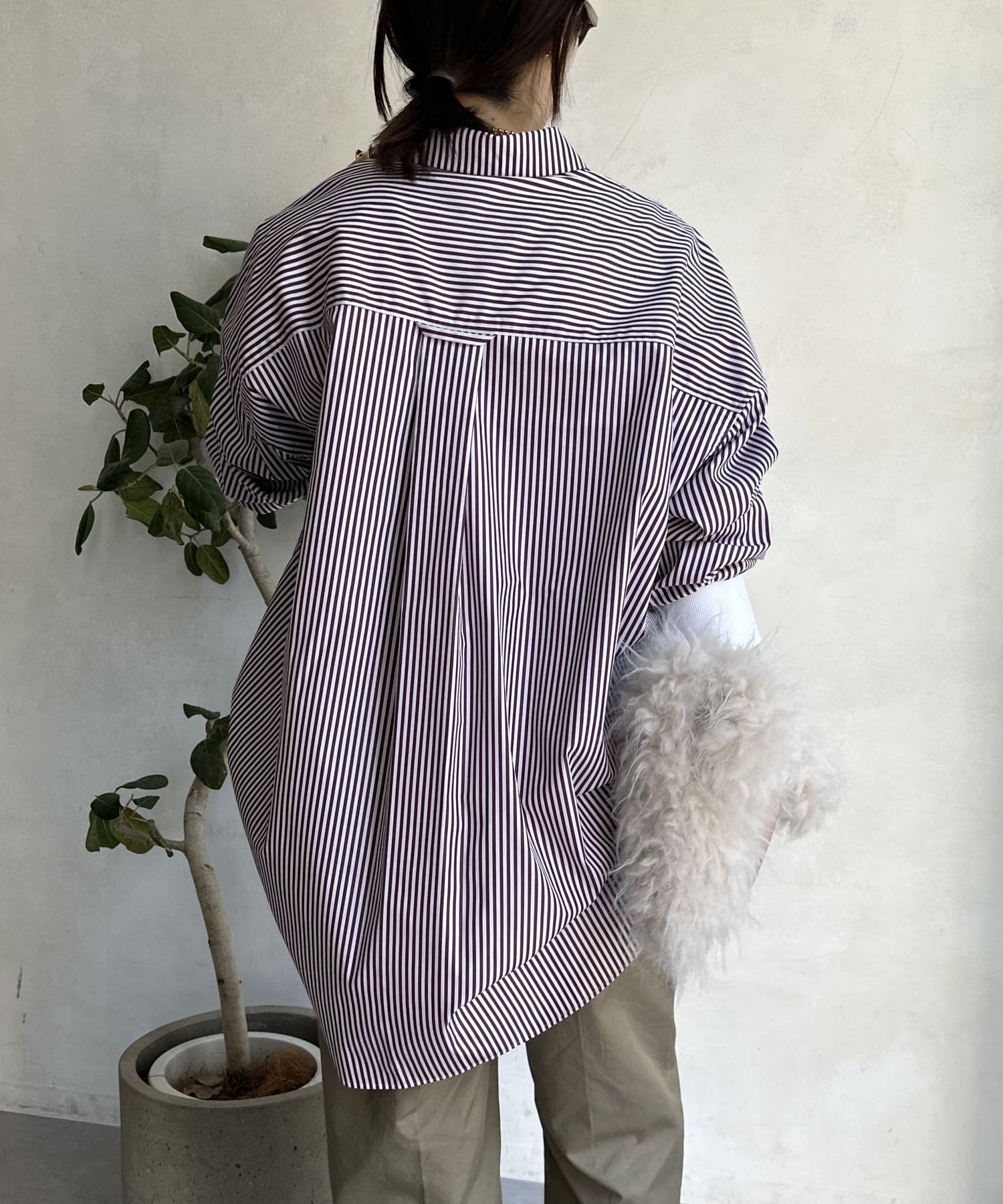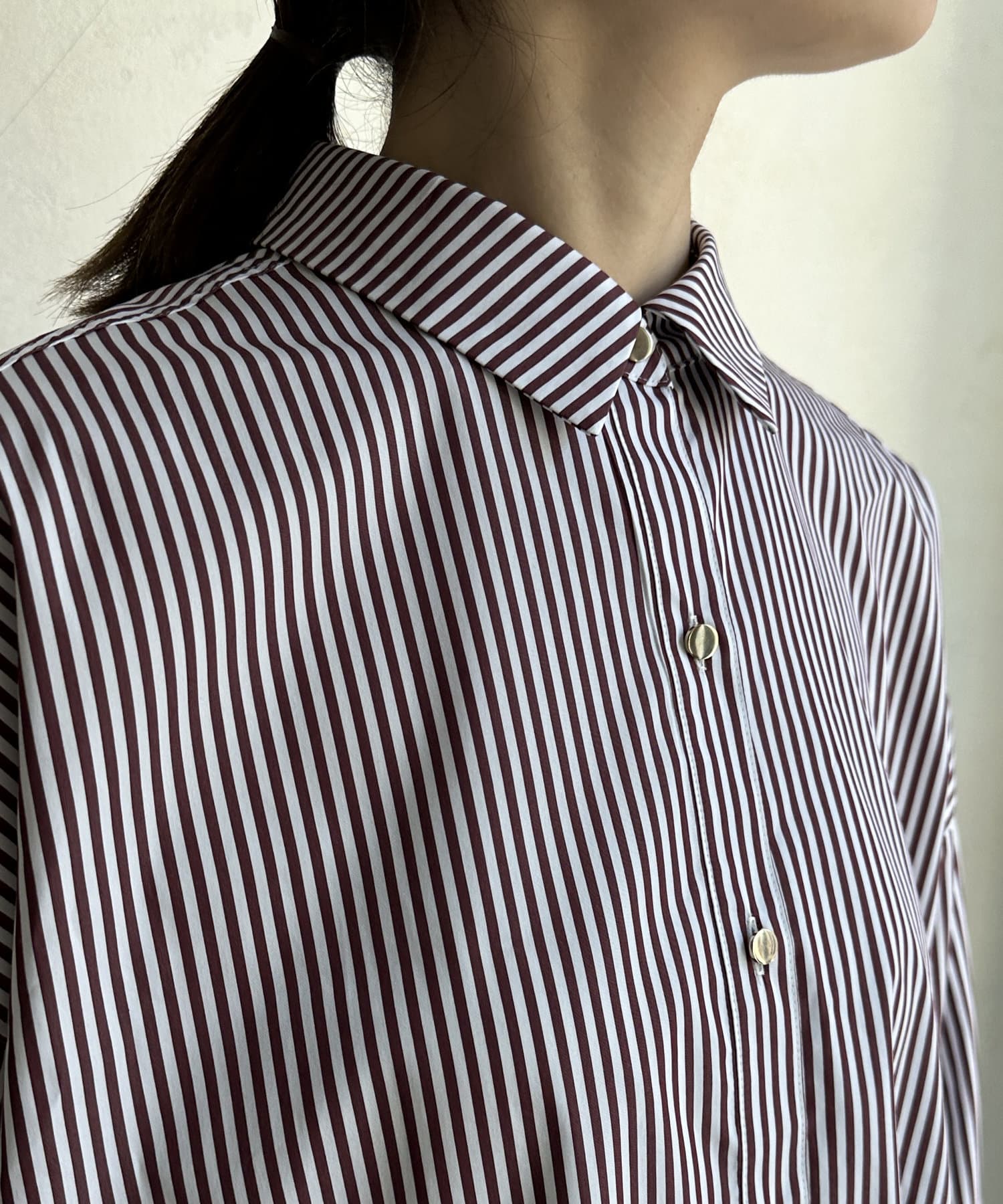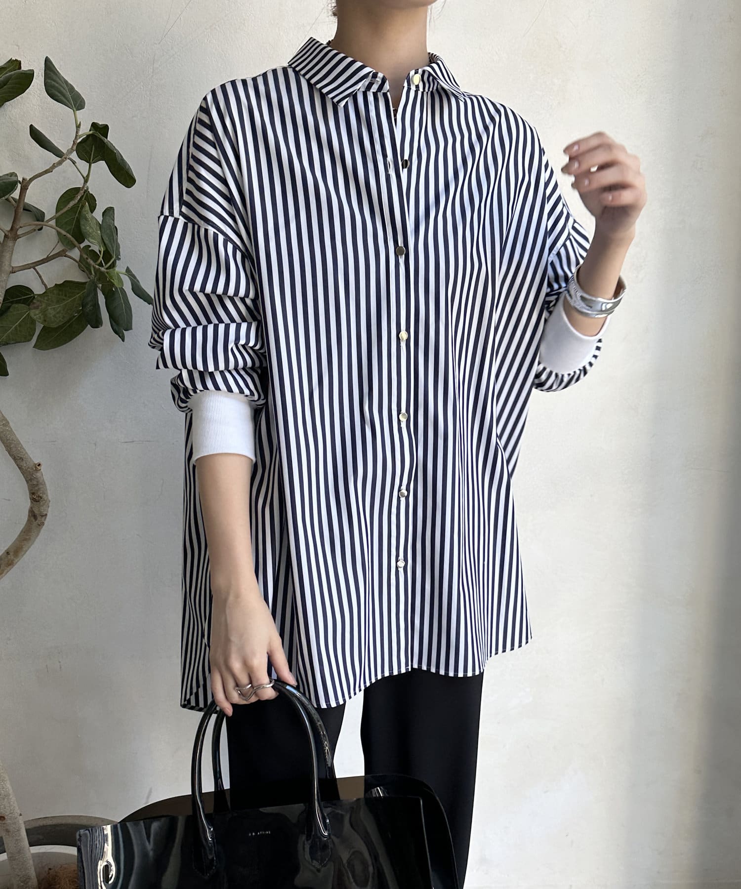 【追加生産決定】GOLDボタン袖リブストライプシャツ