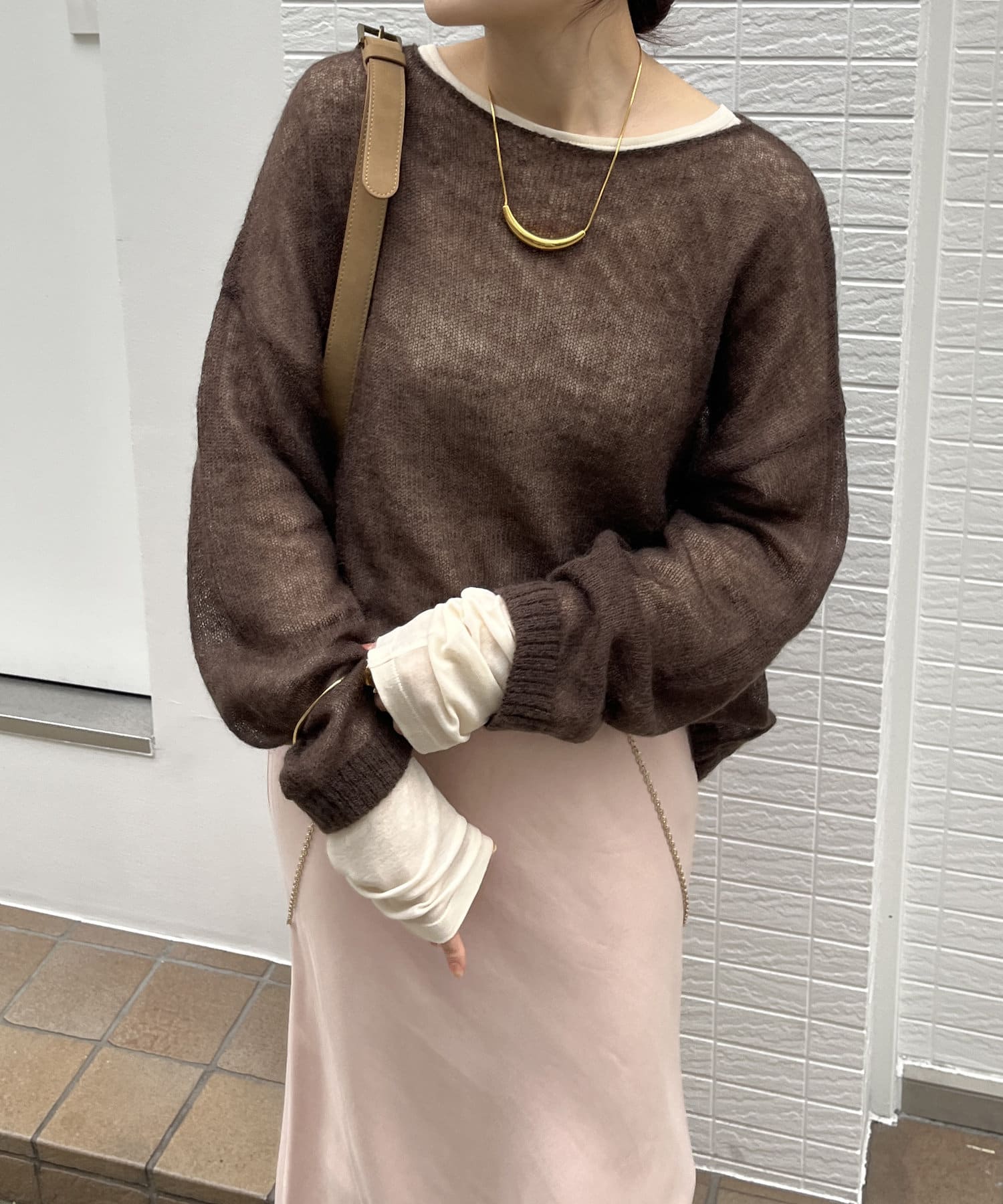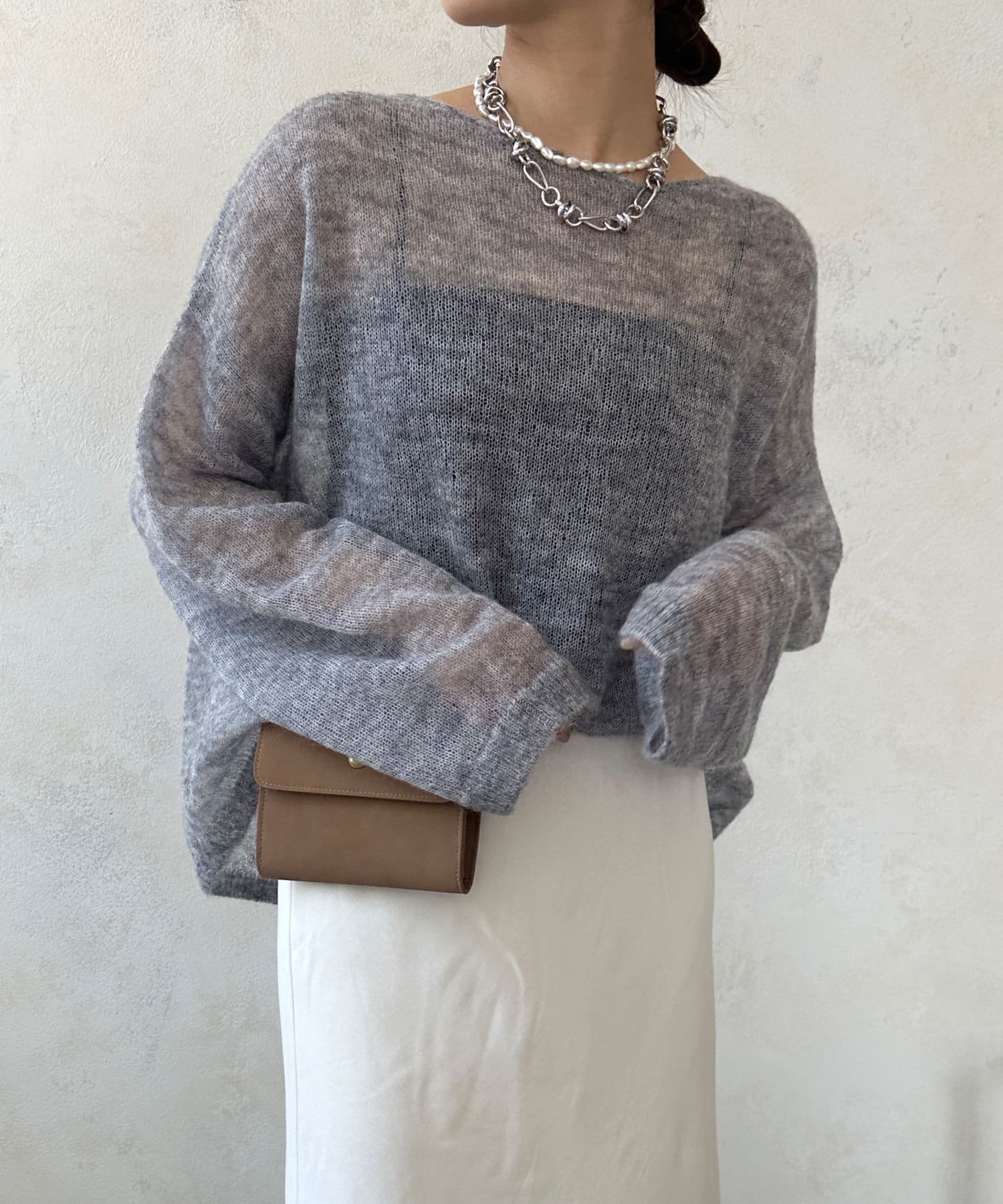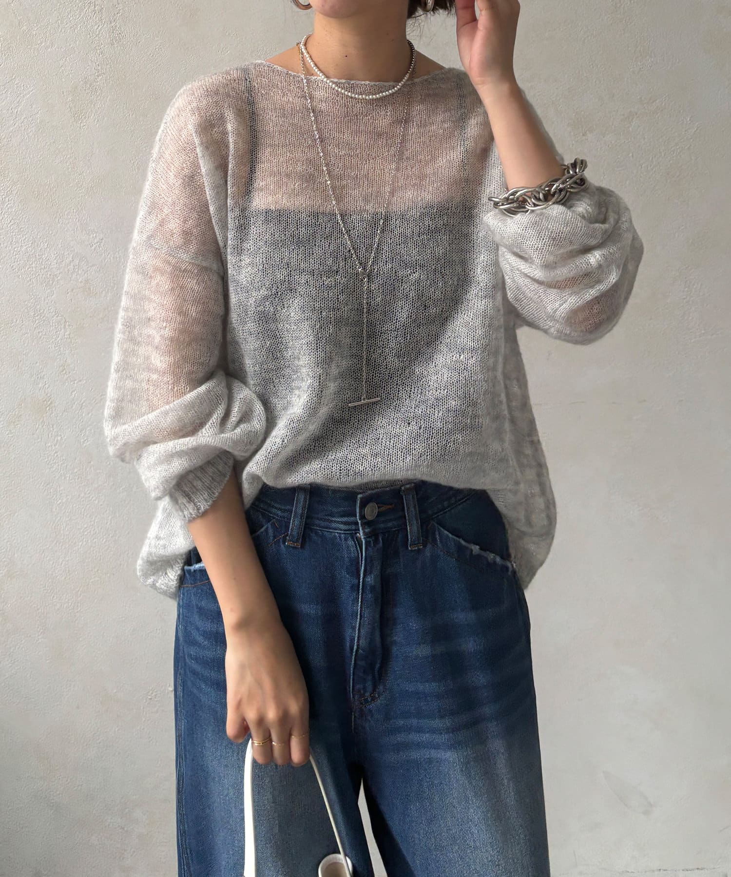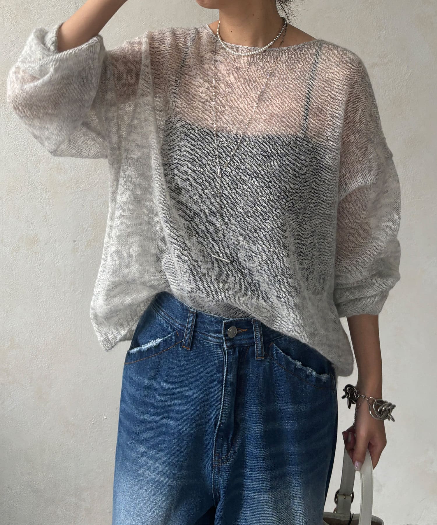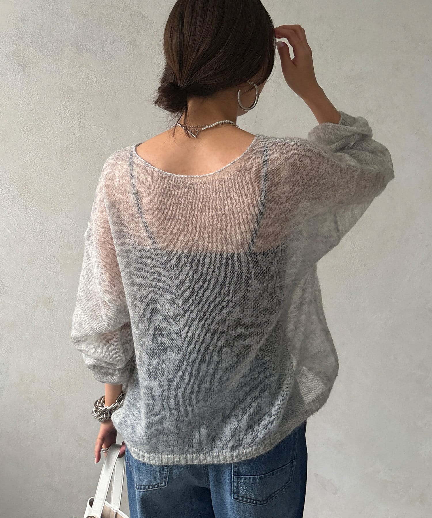 ヘアリーな素材感と透かし編みで今らしい1着。