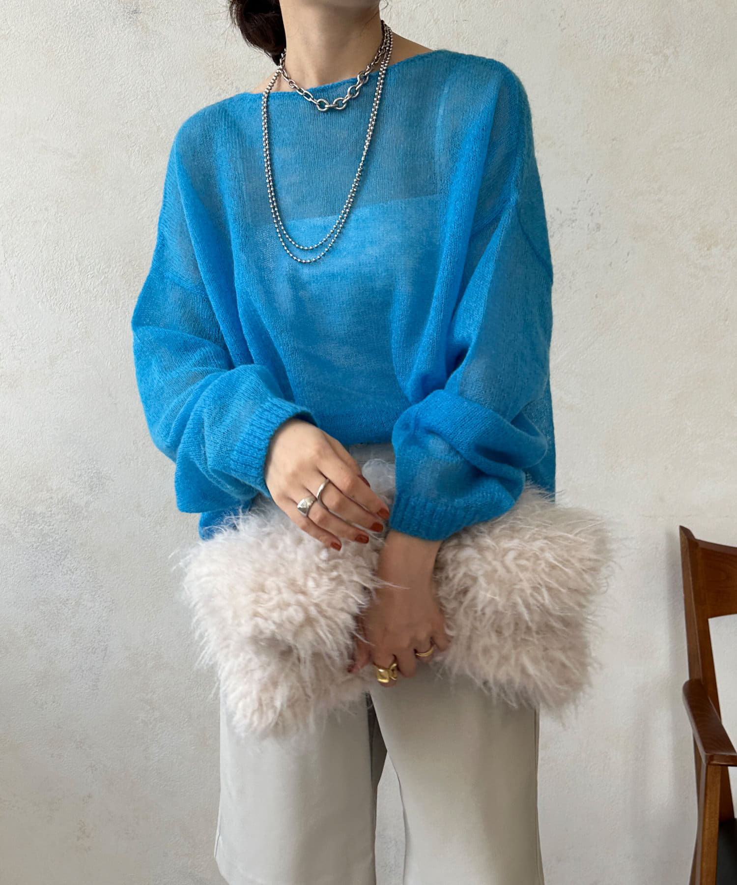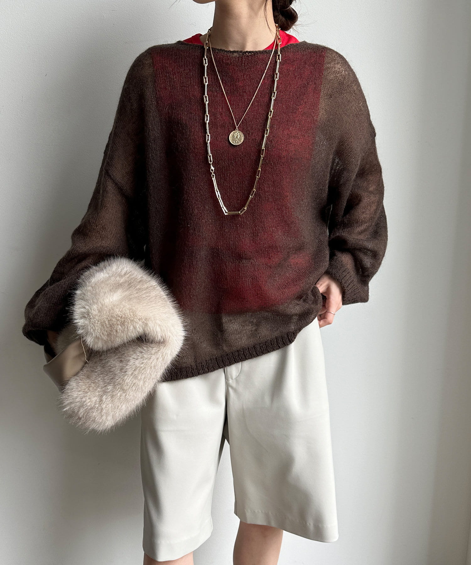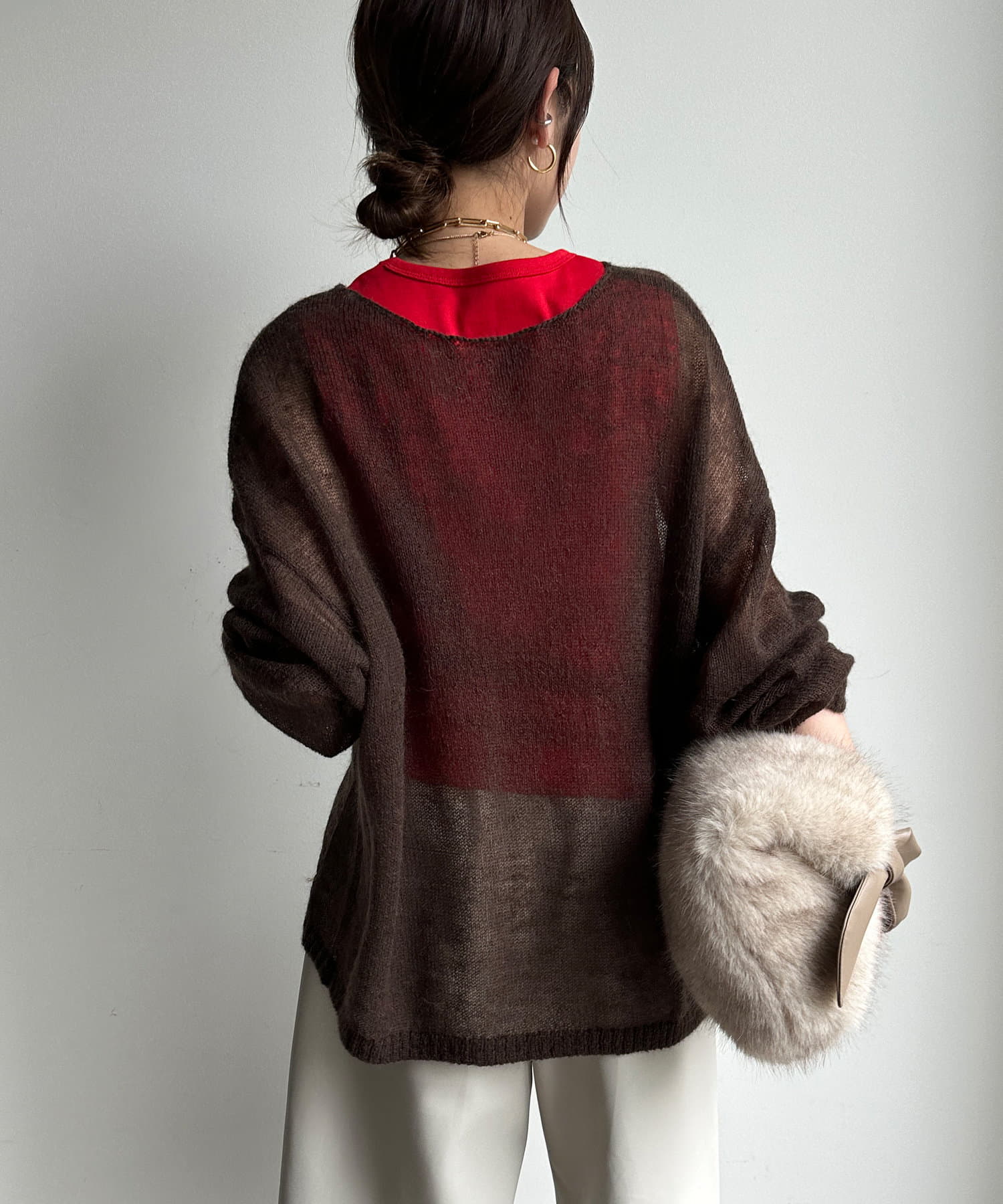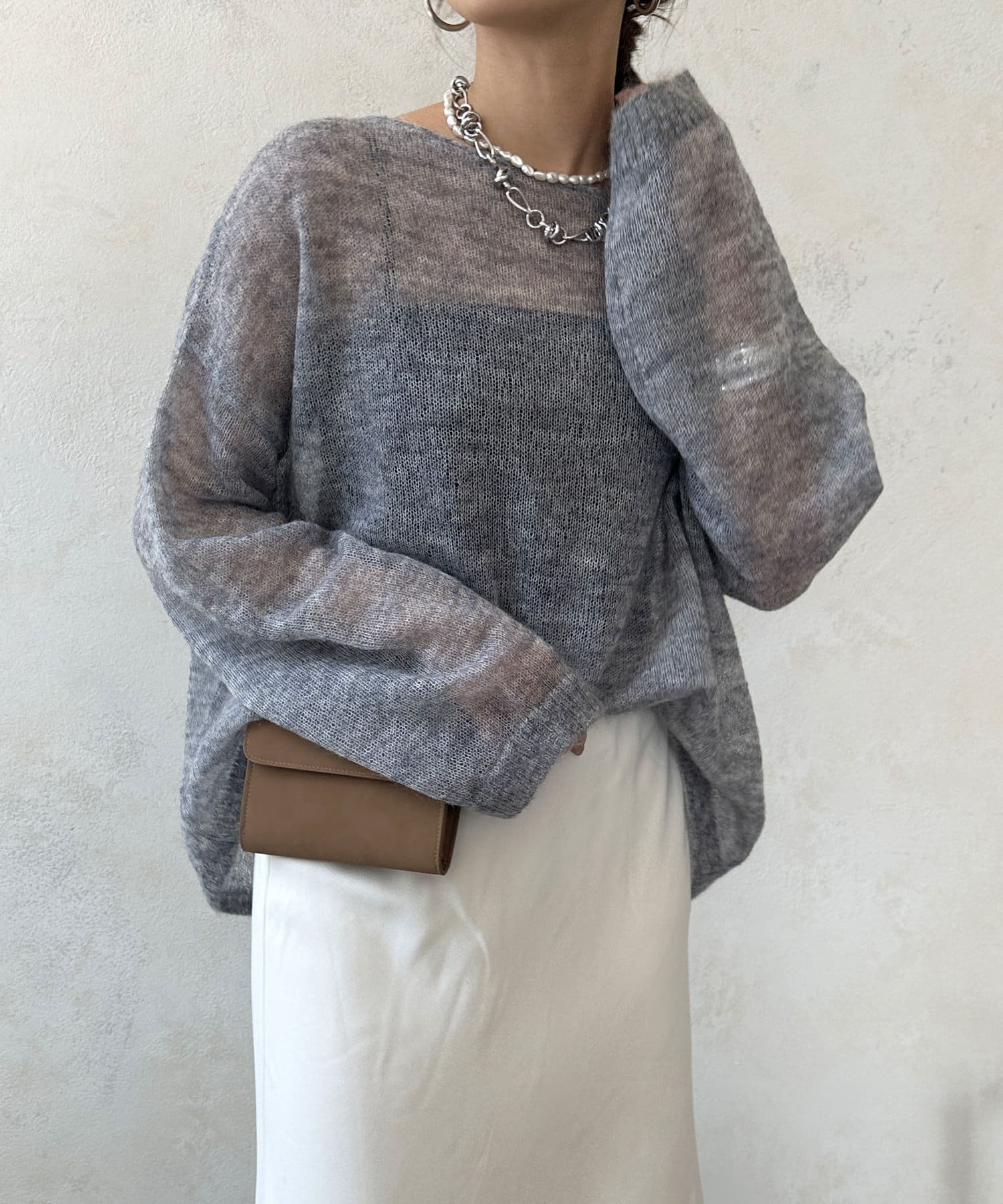 ヘアリーな素材感と透かし編みで今らしい1着。
