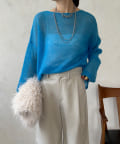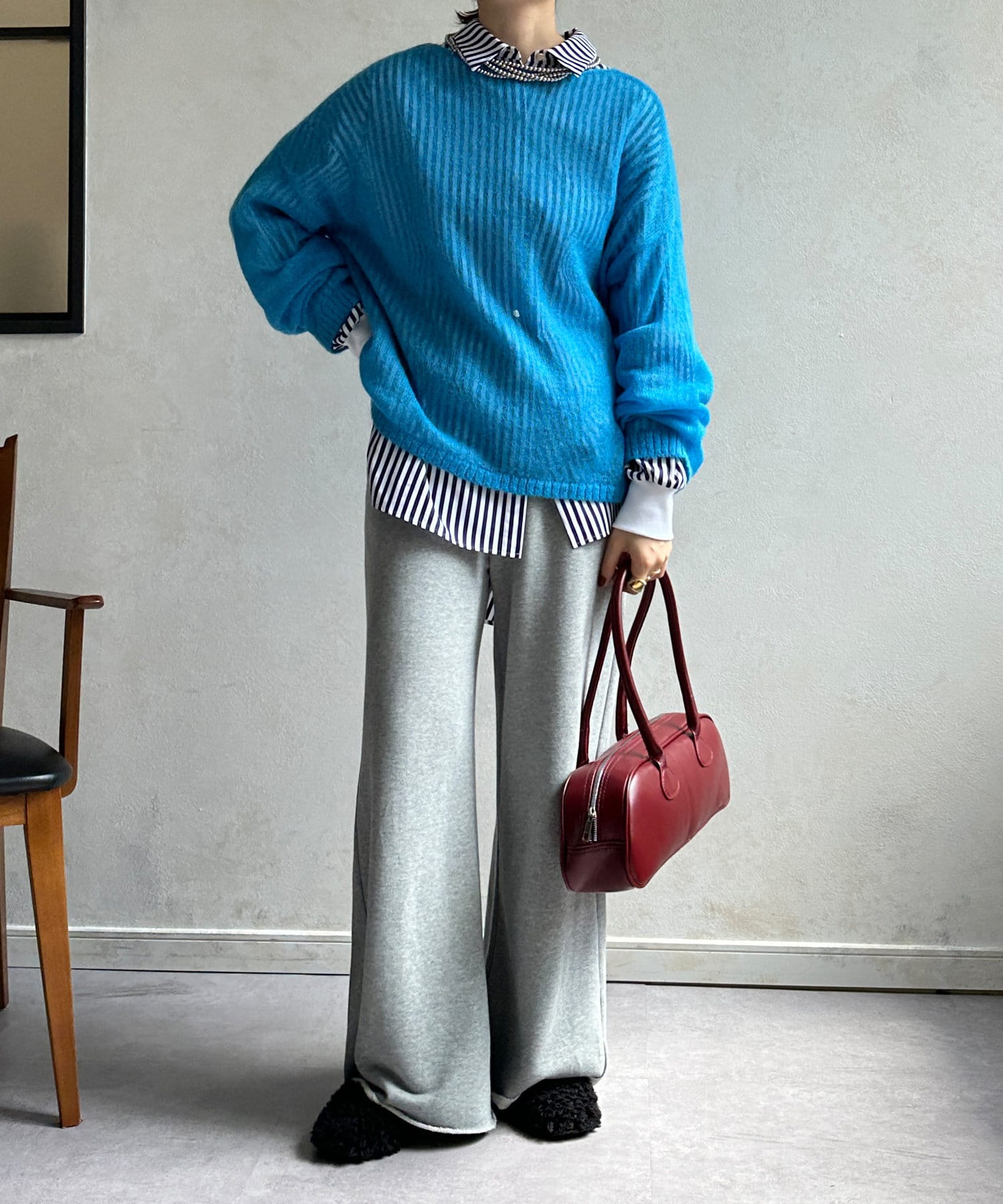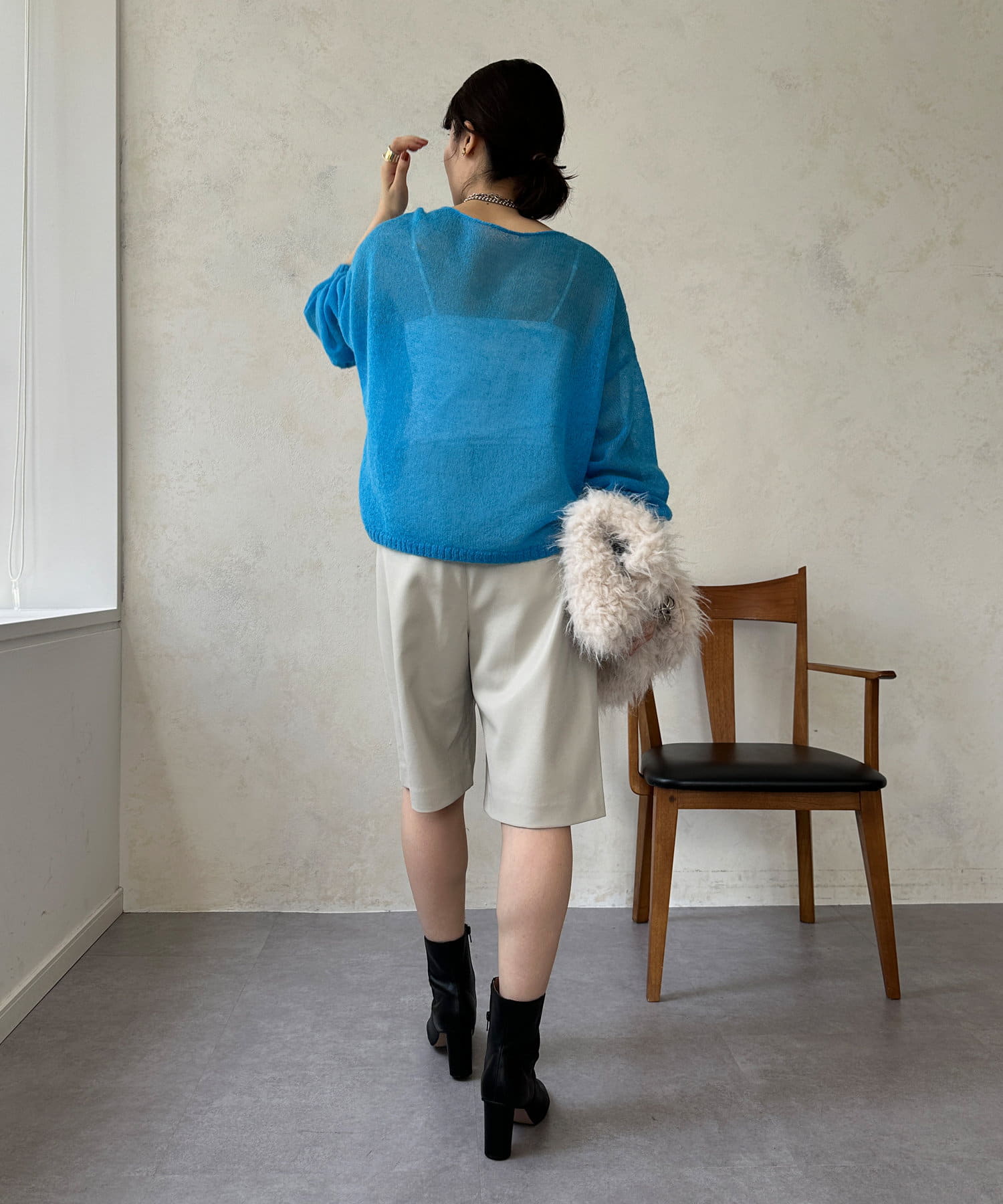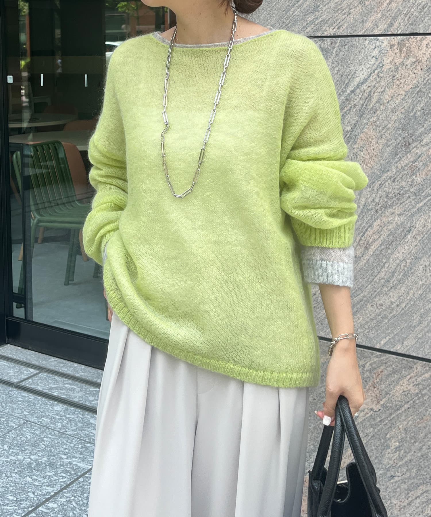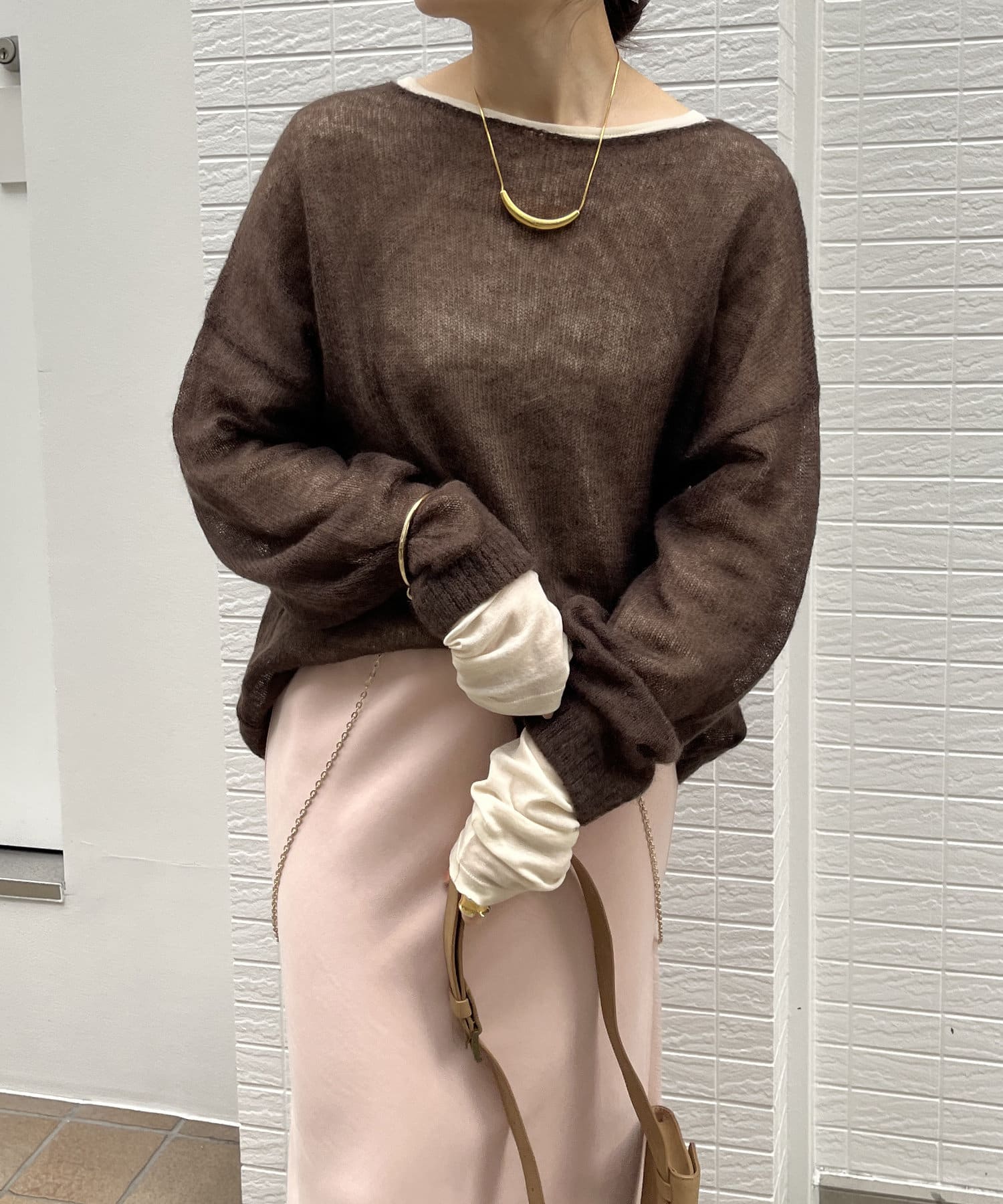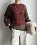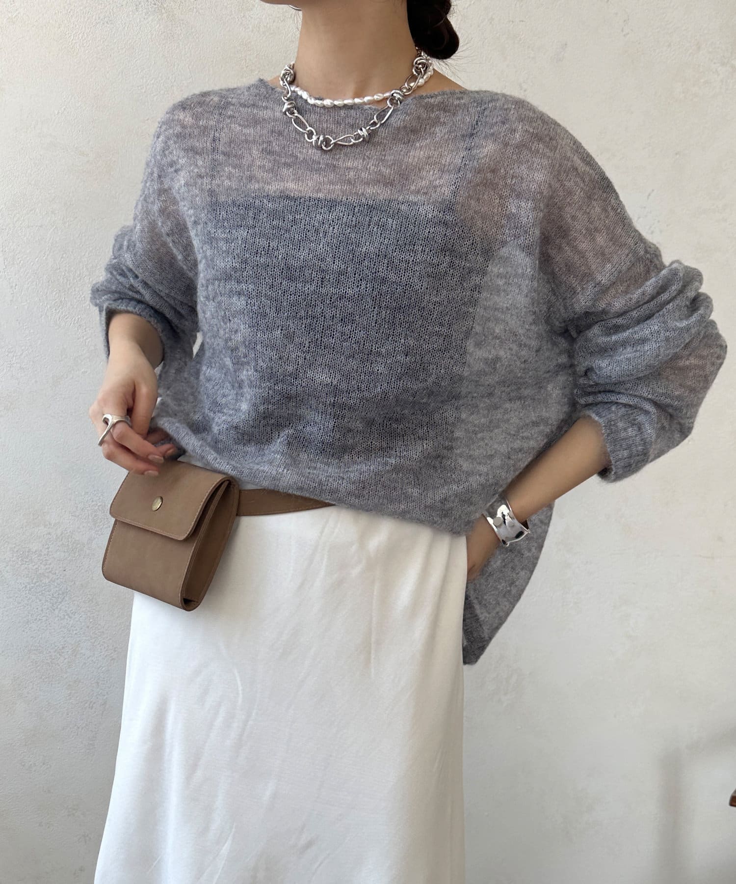 ヘアリーな素材感と透かし編みで今らしい1着。