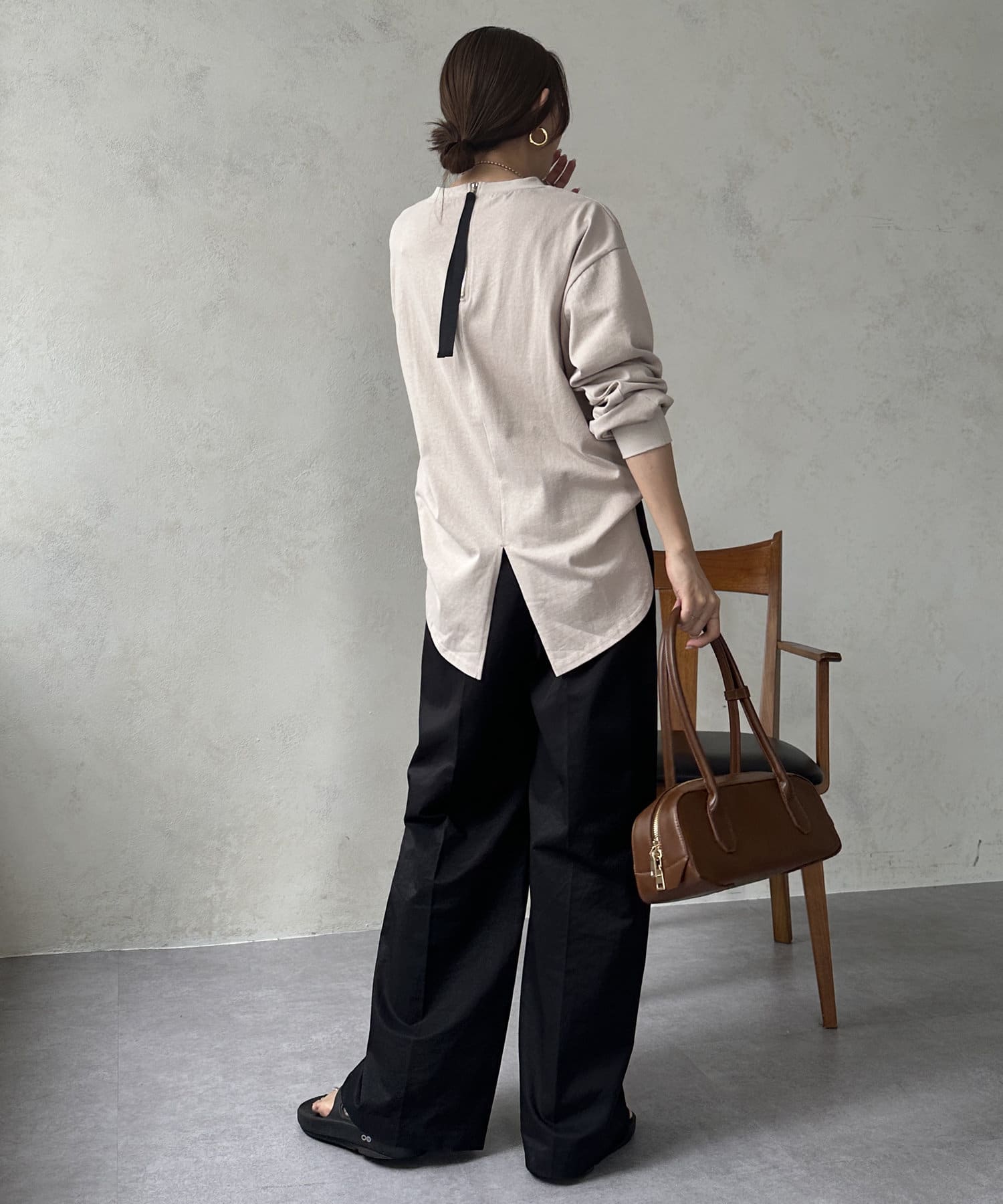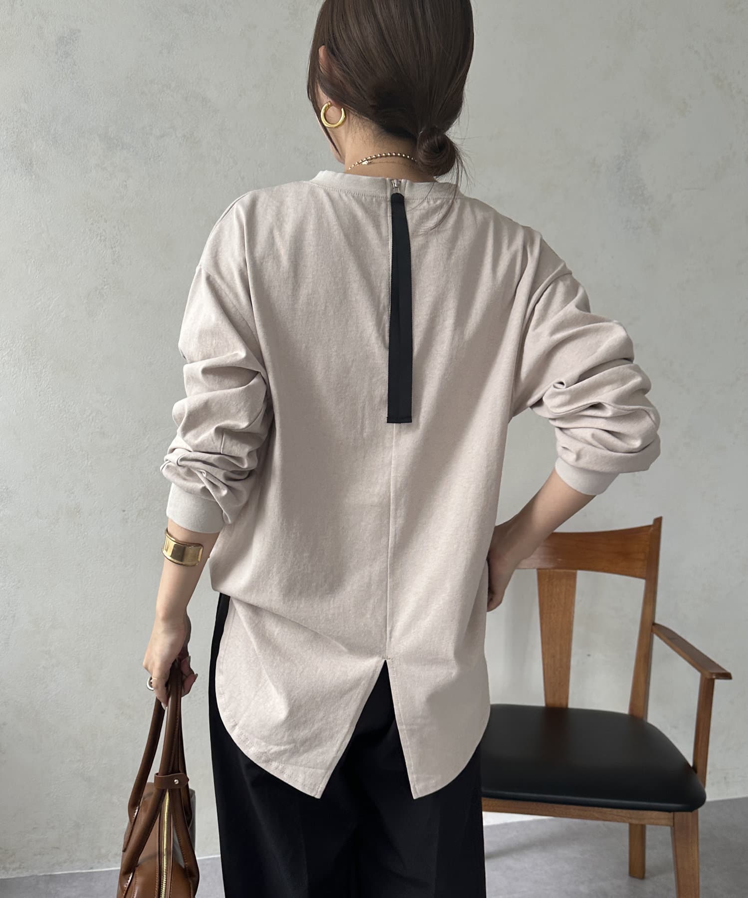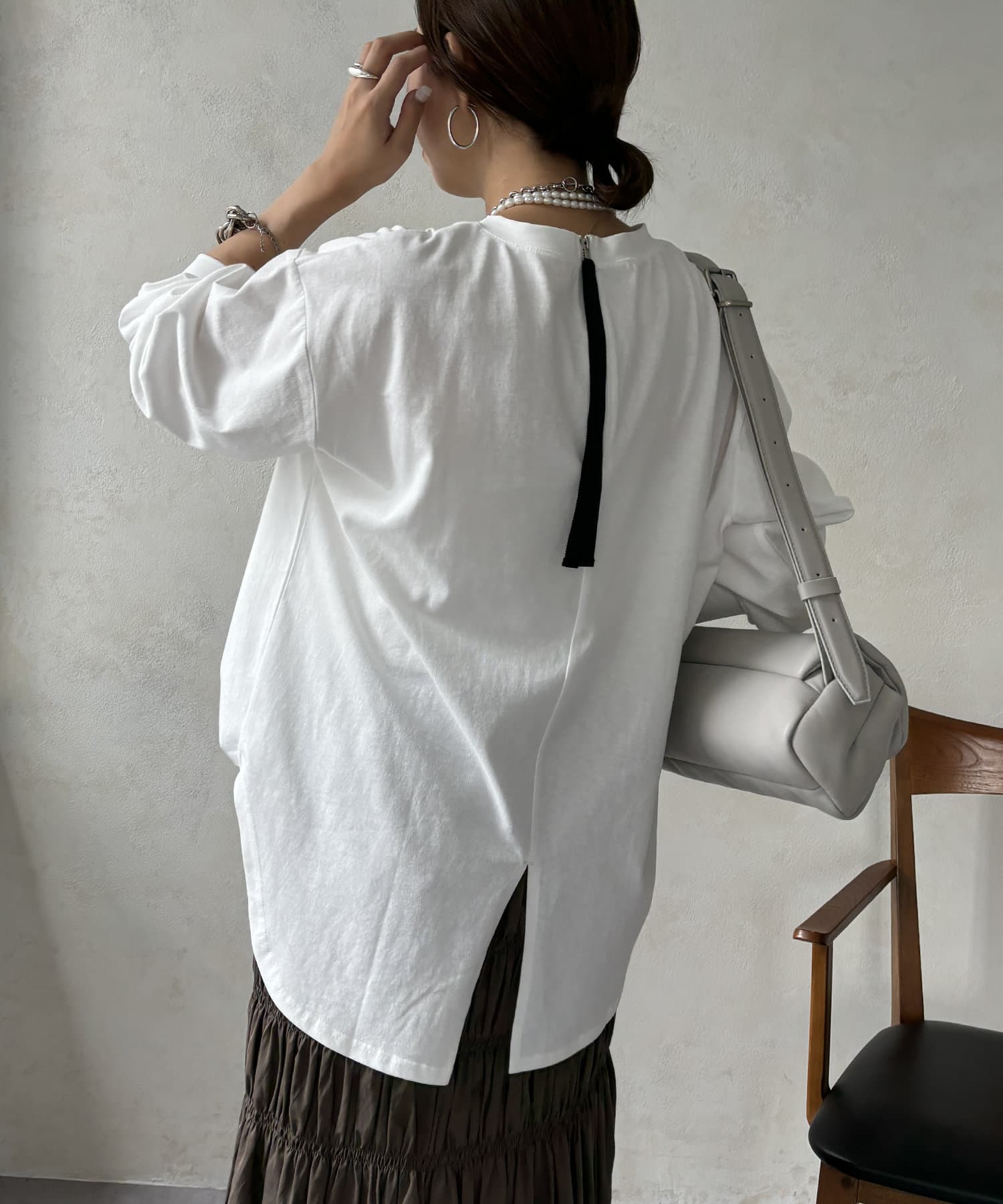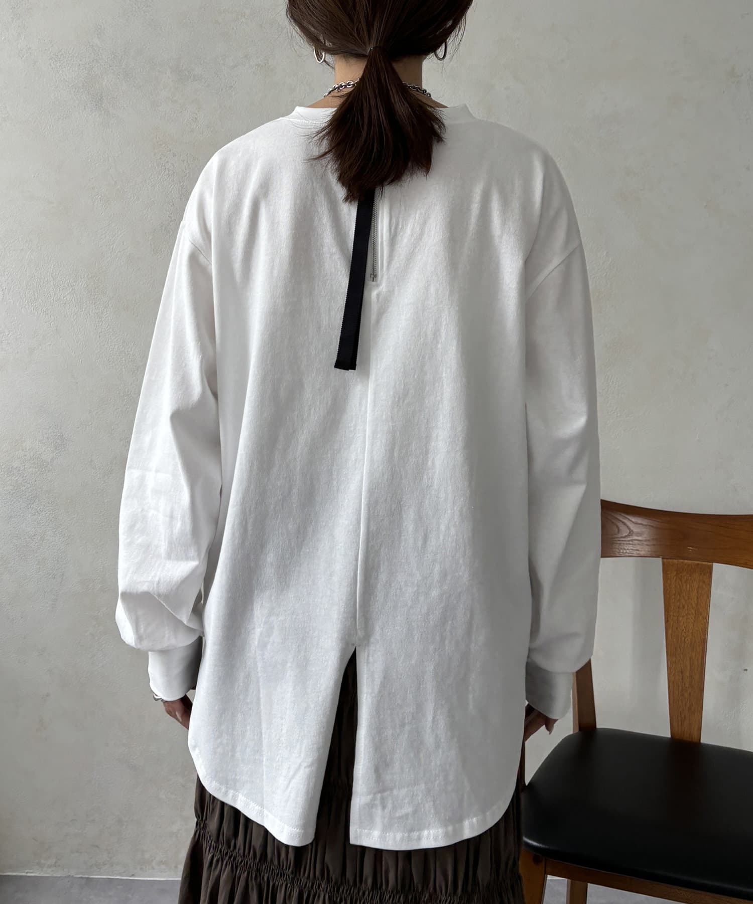 背面にもこだわり特徴的なジップや裾のスリットで、後ろから見てもオシャレな雰囲気を演出できます。