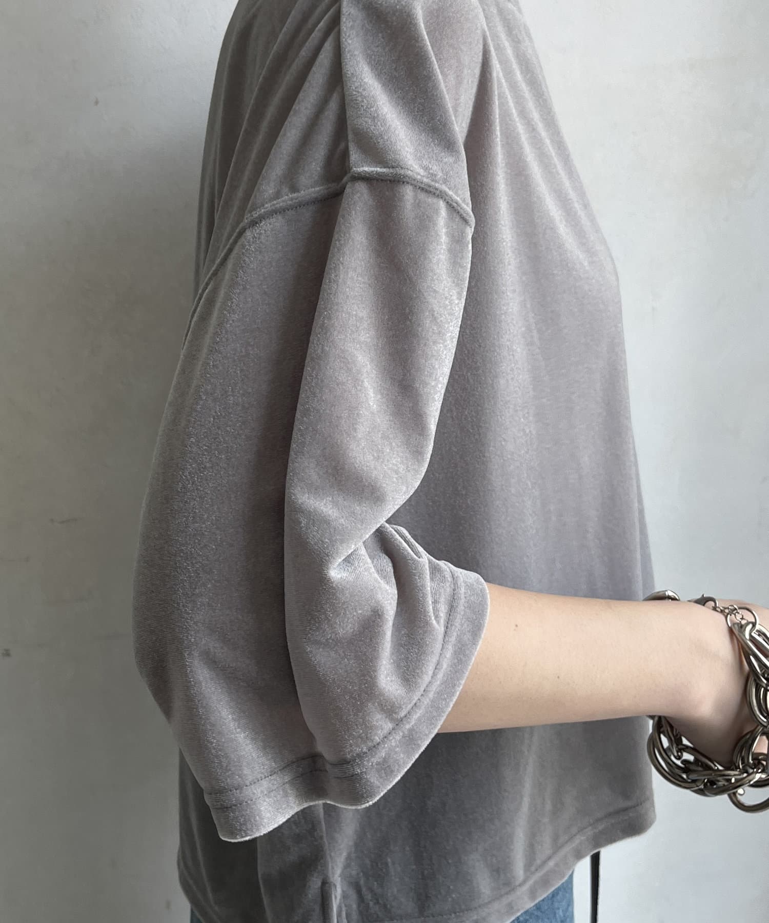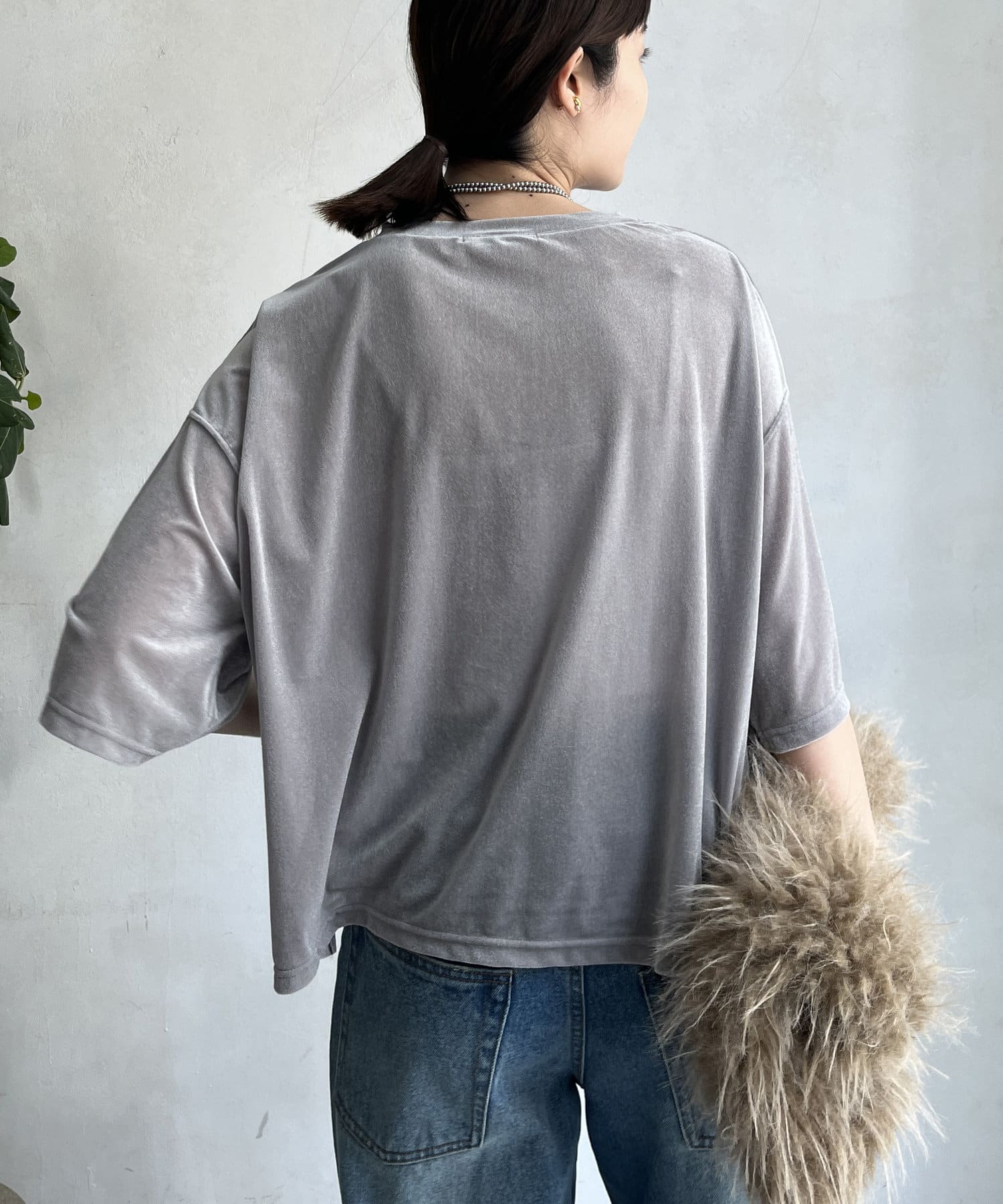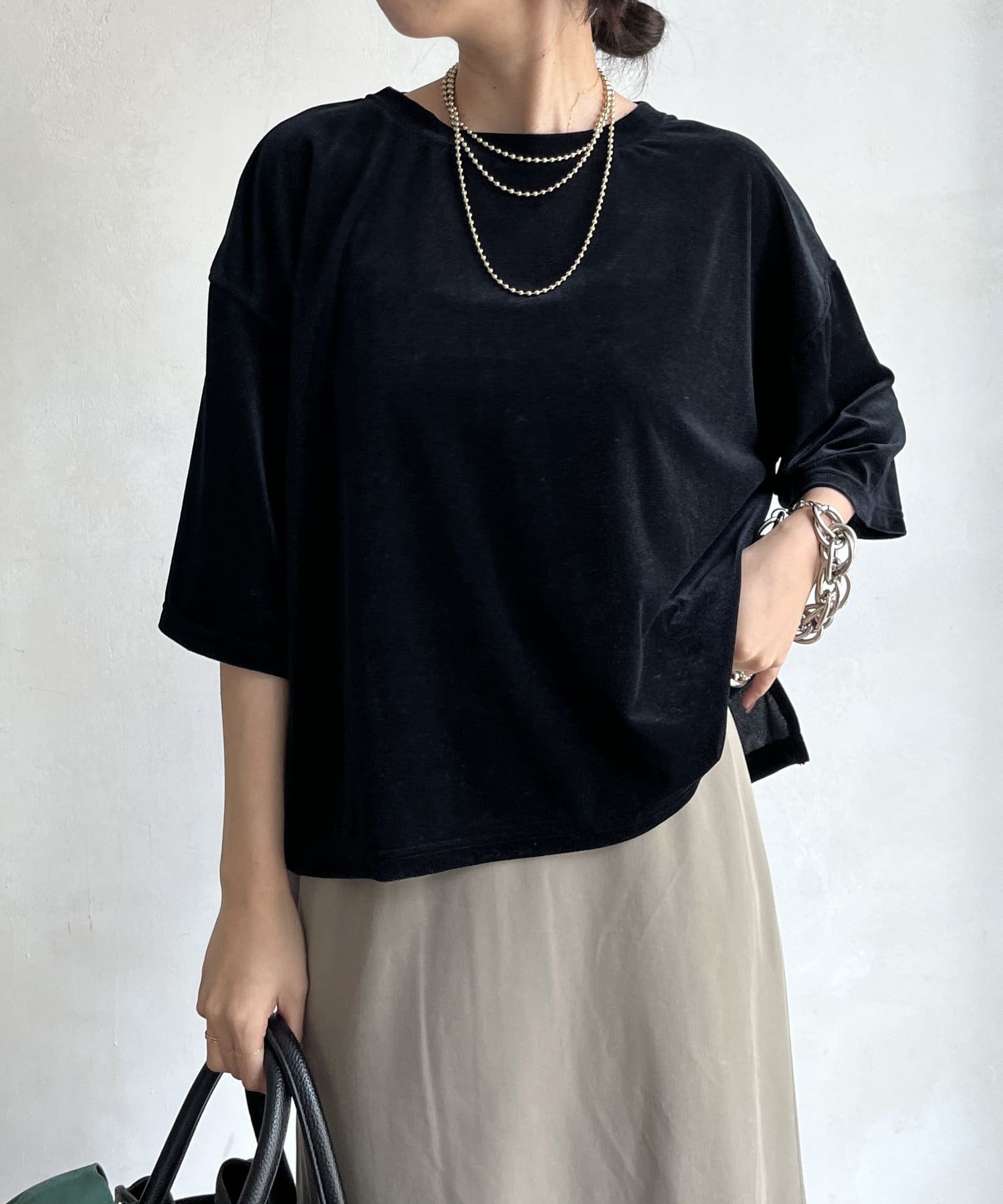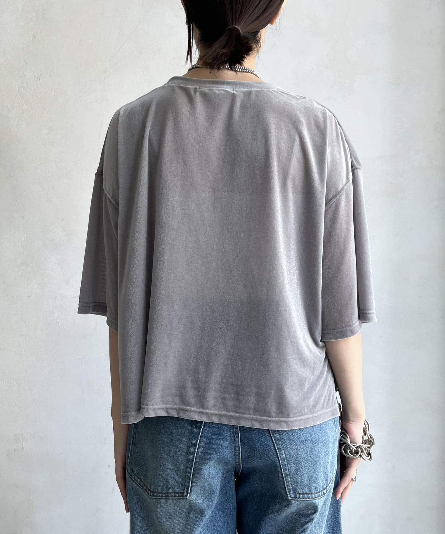 程よいシアー感のあるベロア素材がおしゃれな印象のTシャツ。
