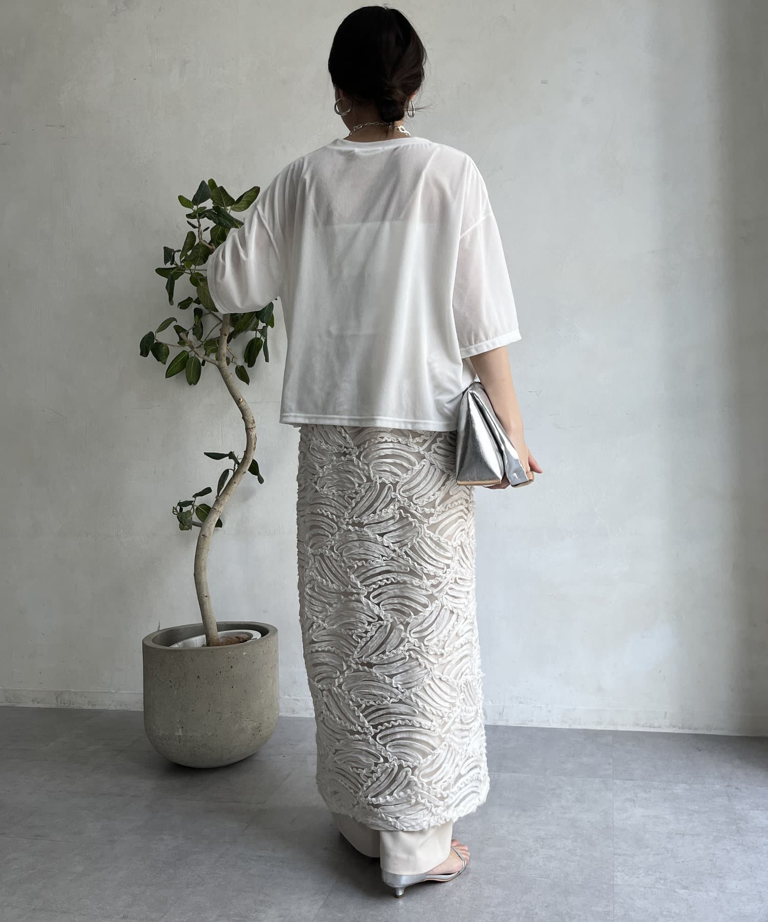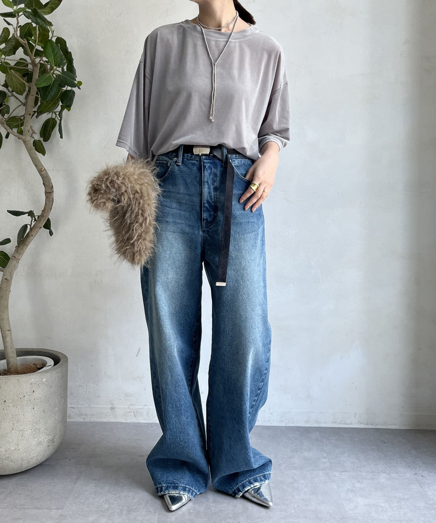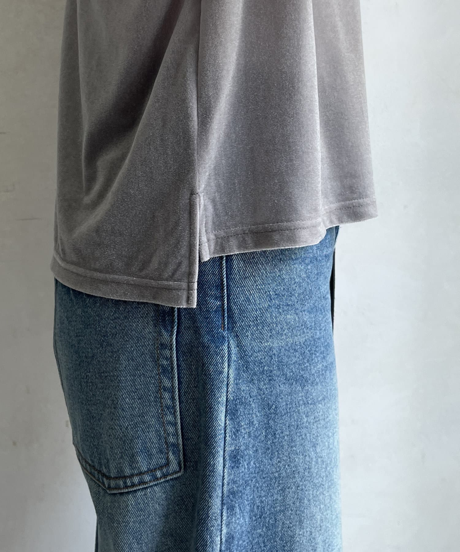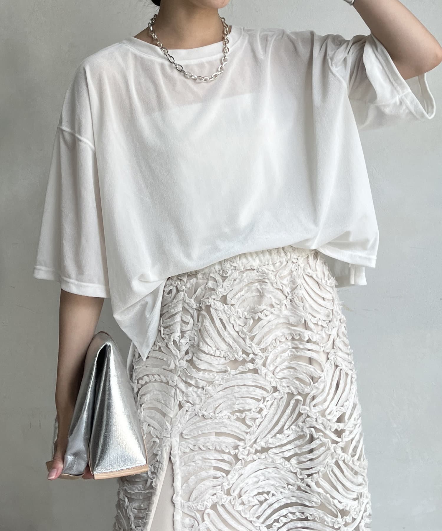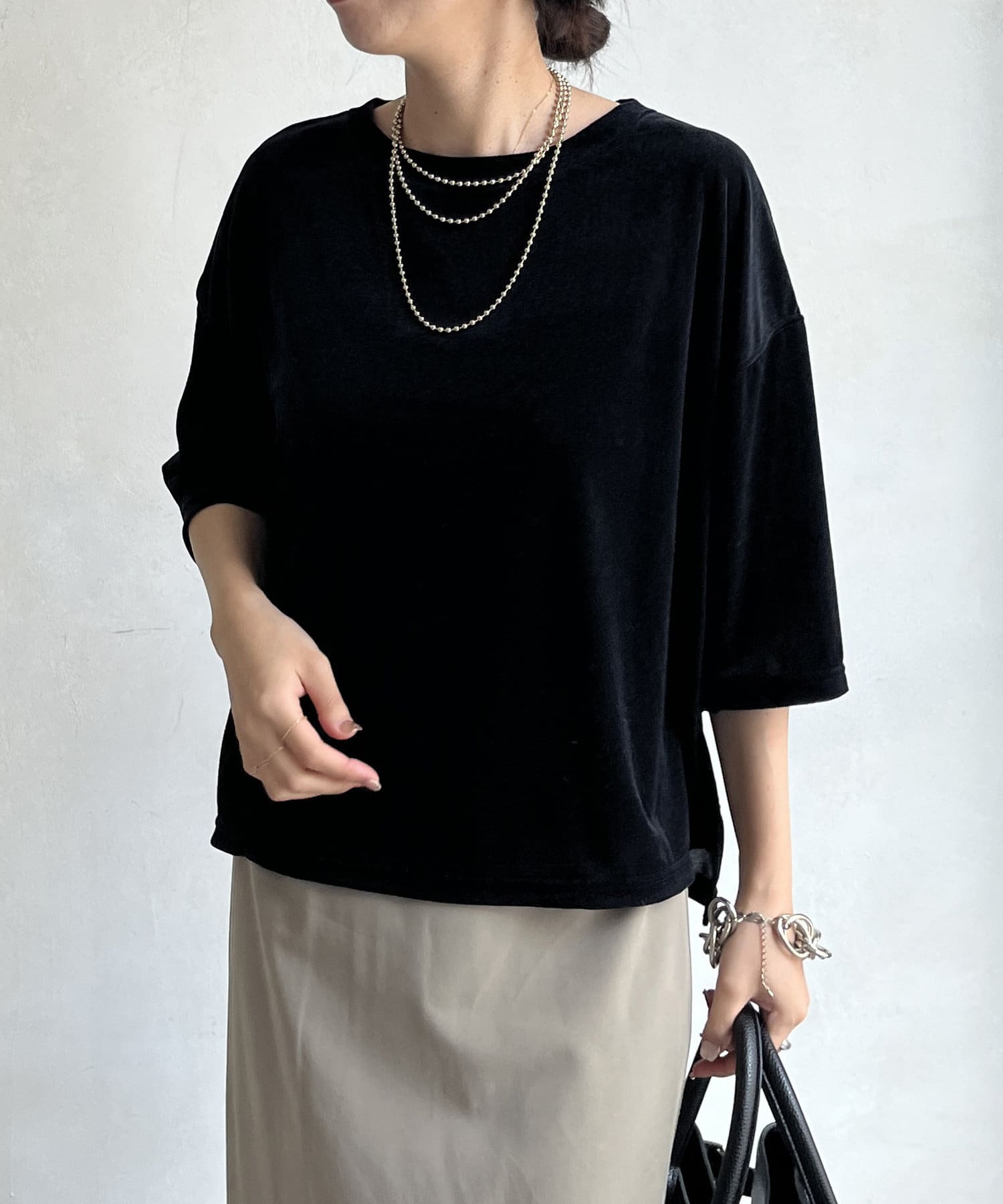 程よいシアー感のあるベロア素材がおしゃれな印象のTシャツ。