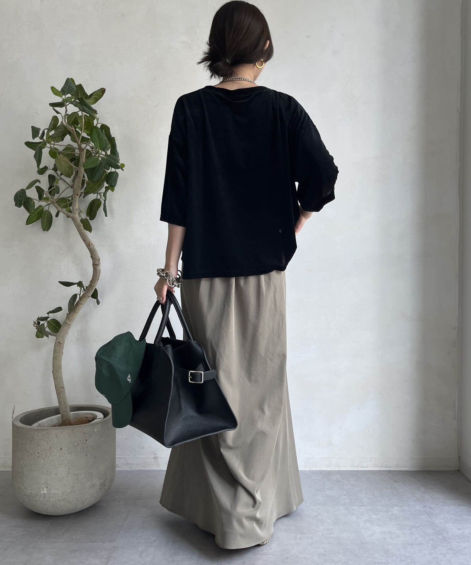 肘が隠れる5分袖で、身幅はゆったりとしたシルエット。