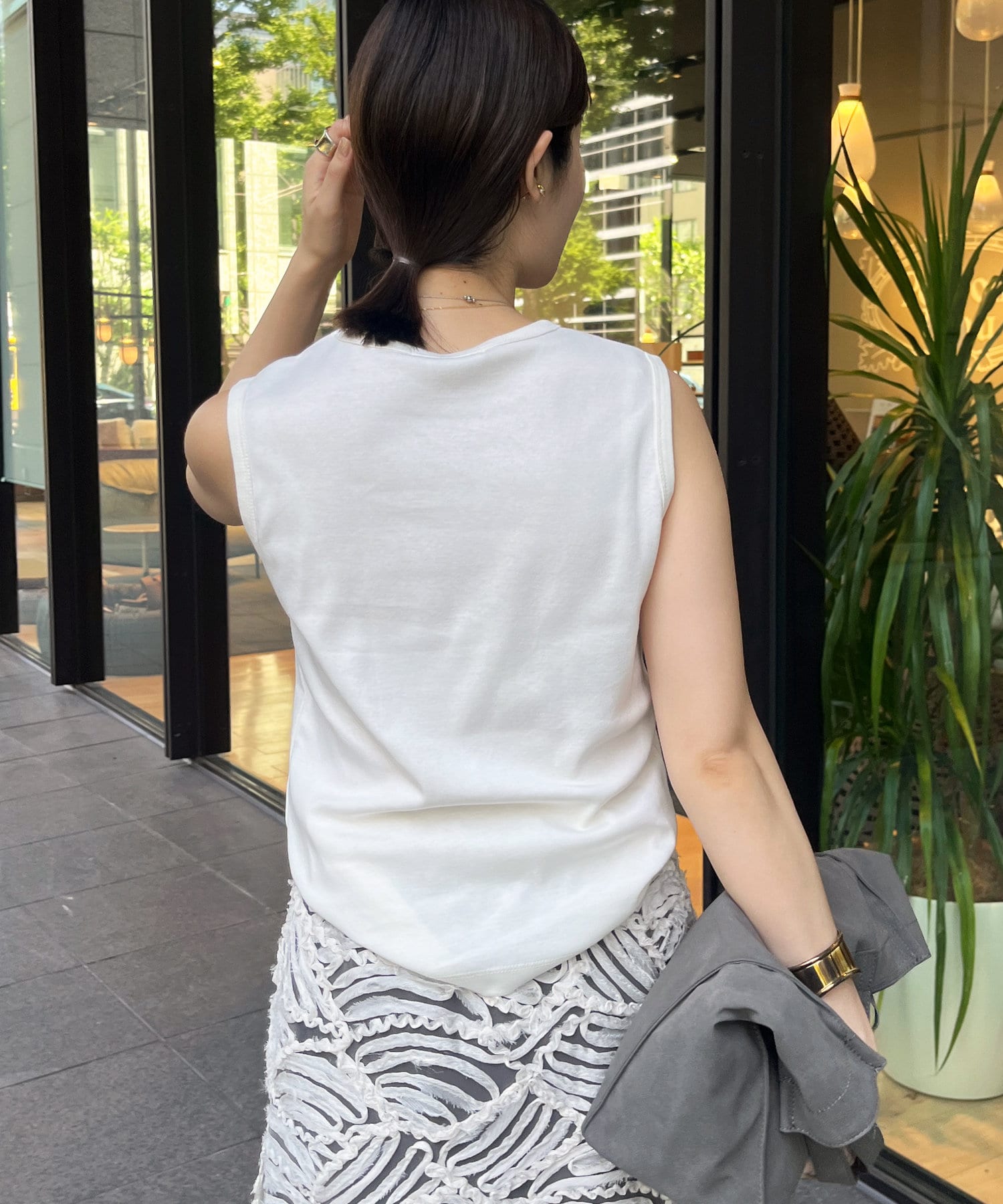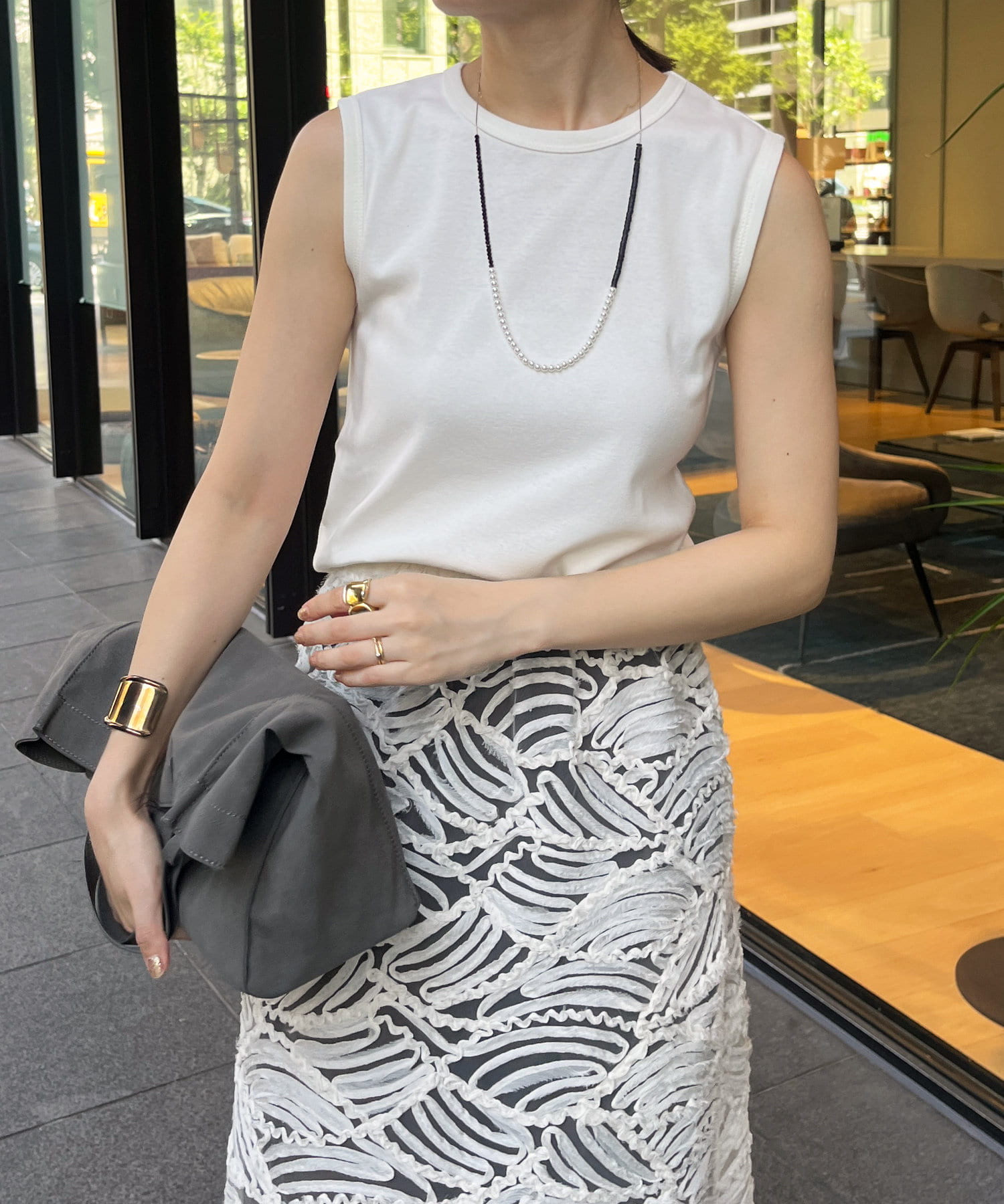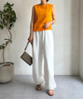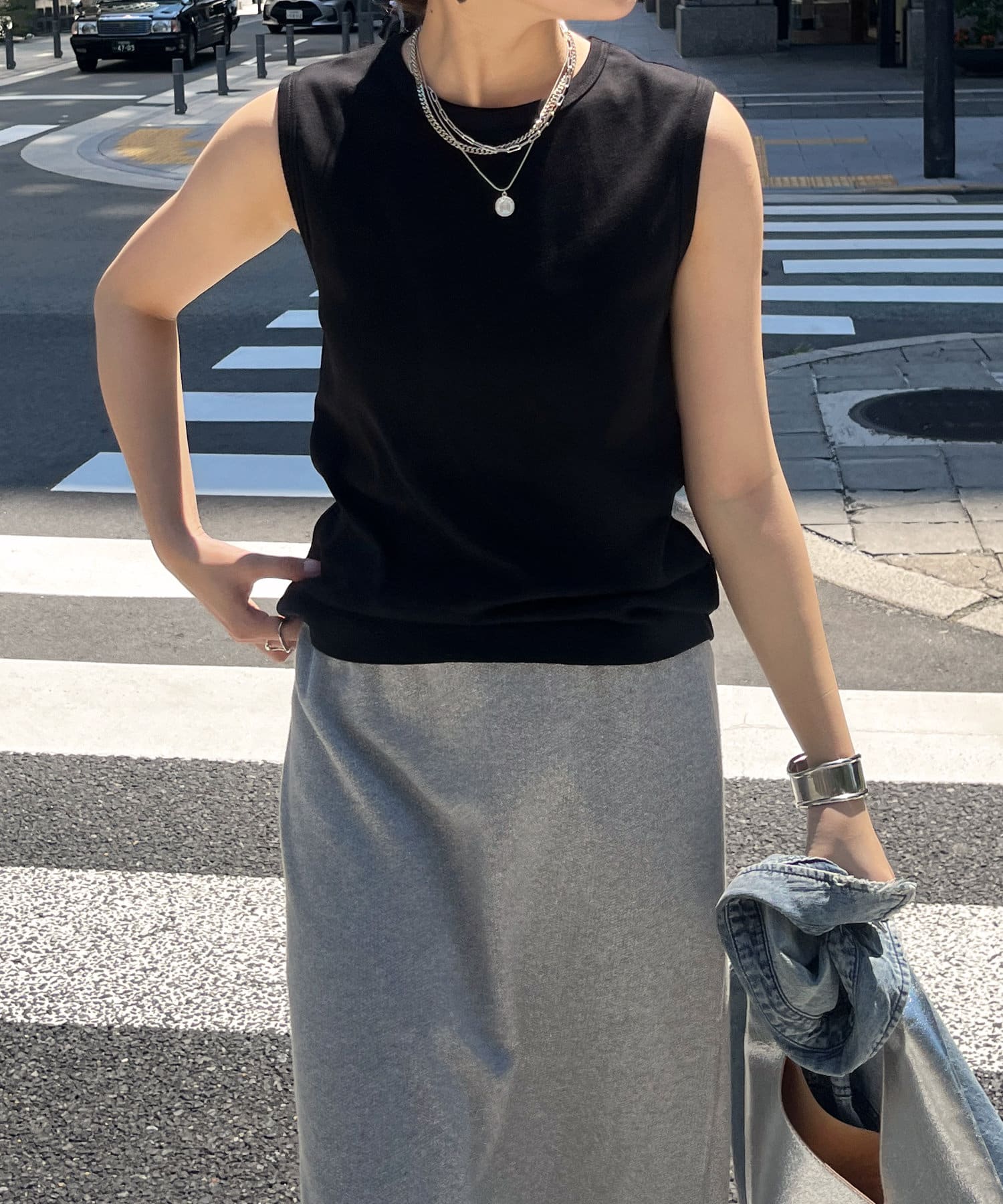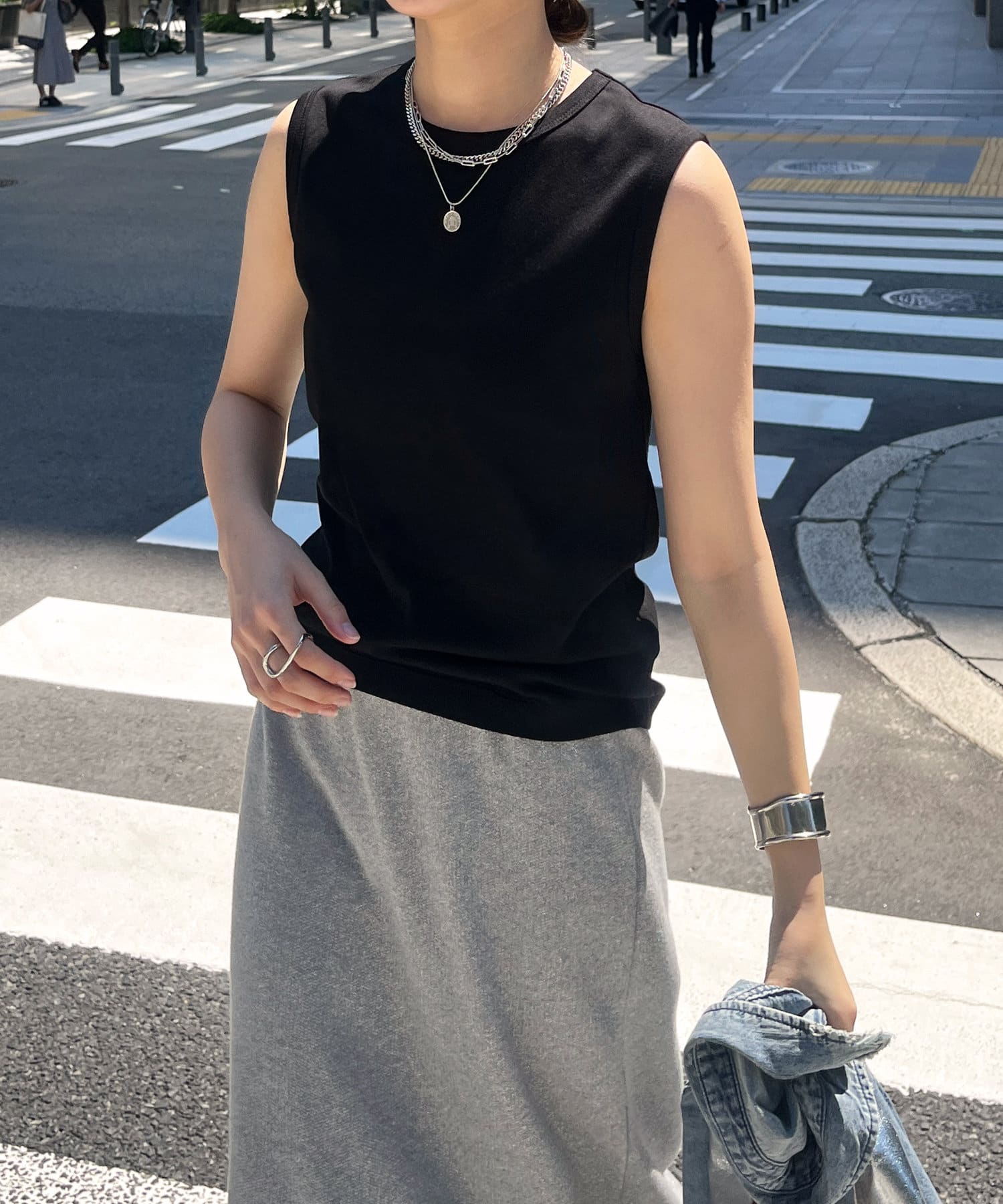 暑い時期は1枚で、秋冬はトレンドのシアーニットのインナーとして着ると一気に今年らしい印象に。