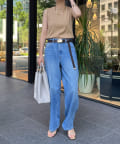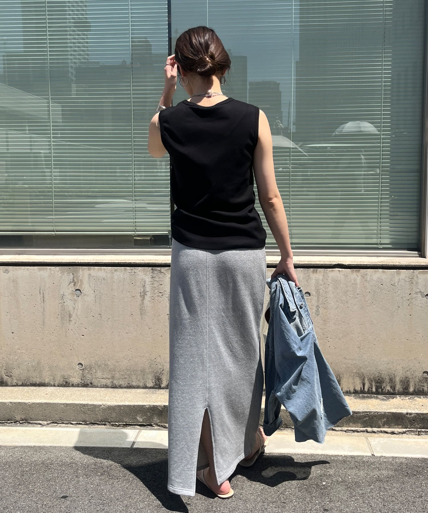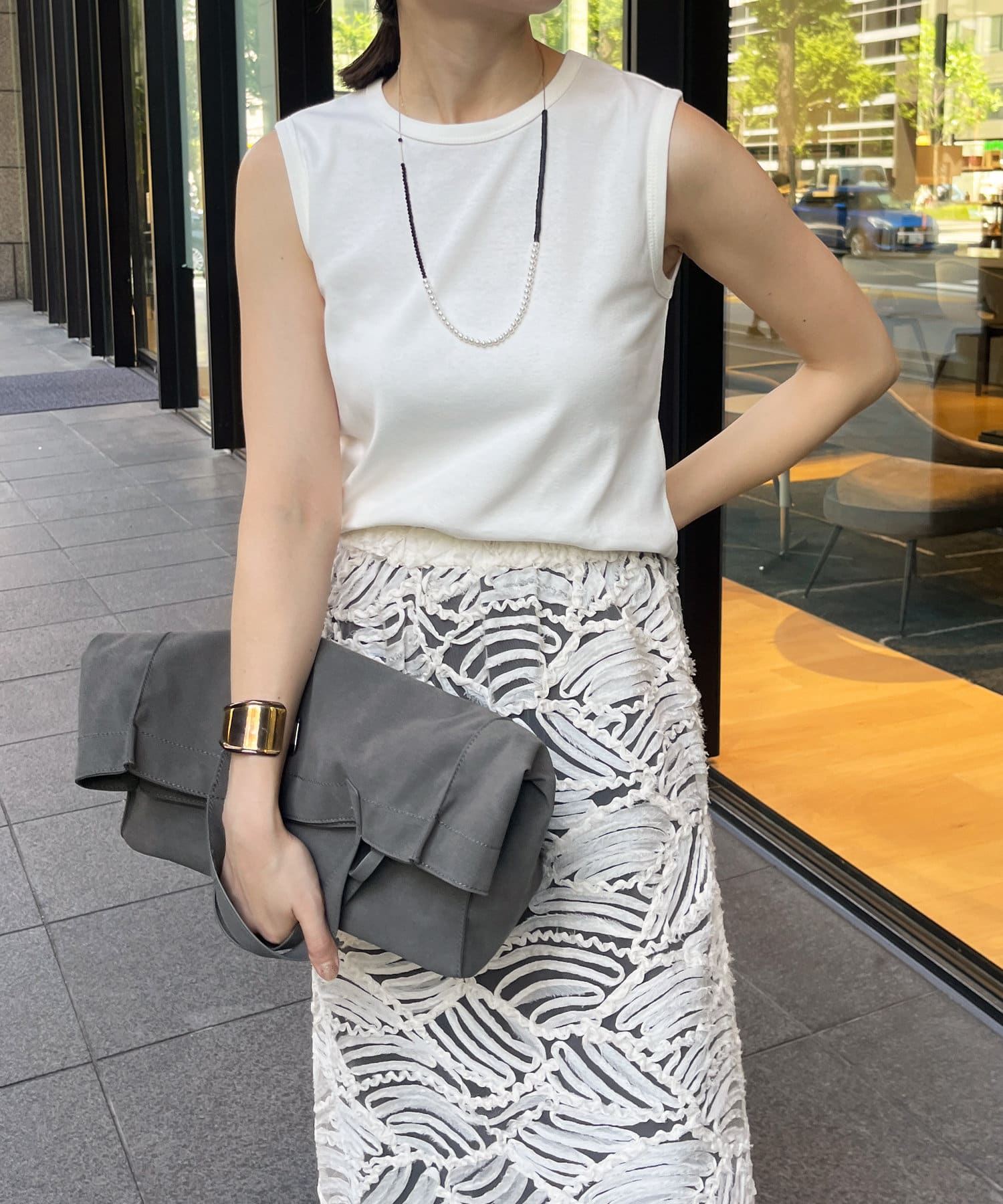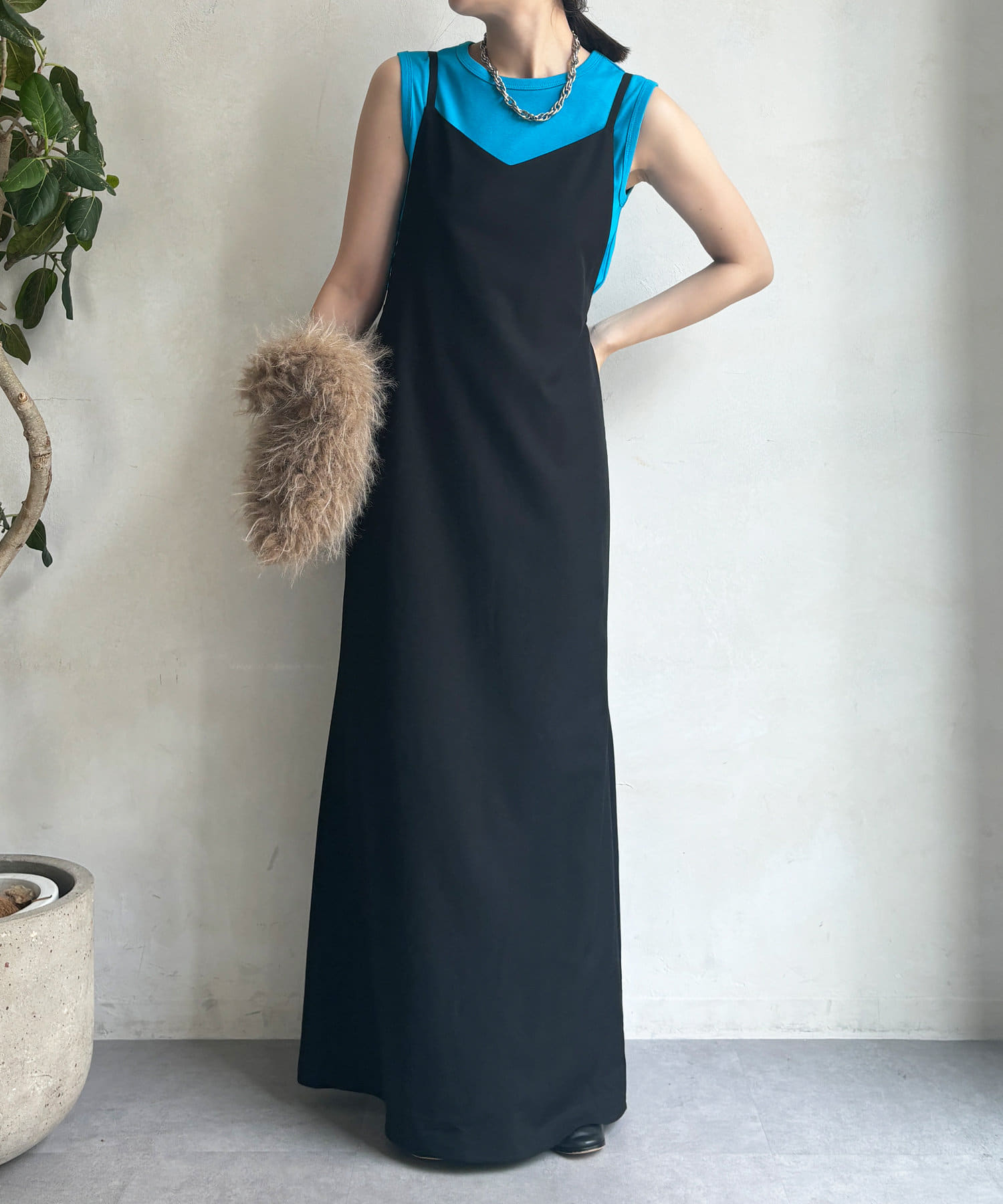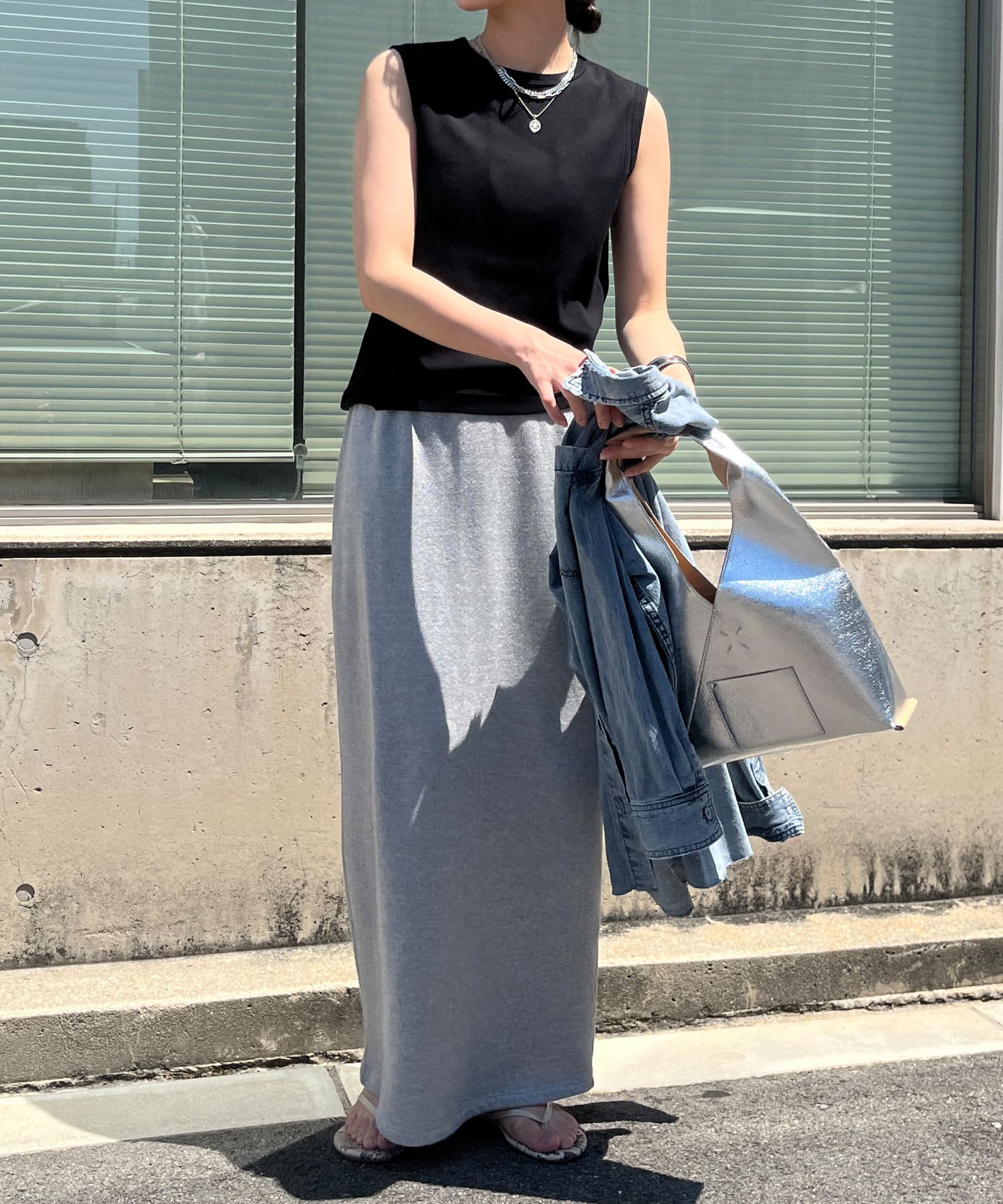 暑い時期は1枚で、秋冬はトレンドのシアーニットのインナーとして着ると一気に今年らしい印象に。