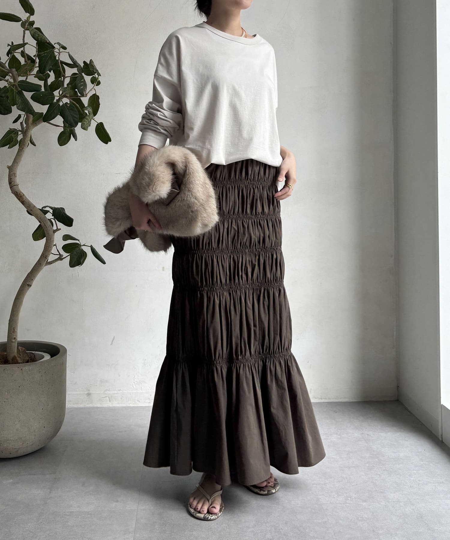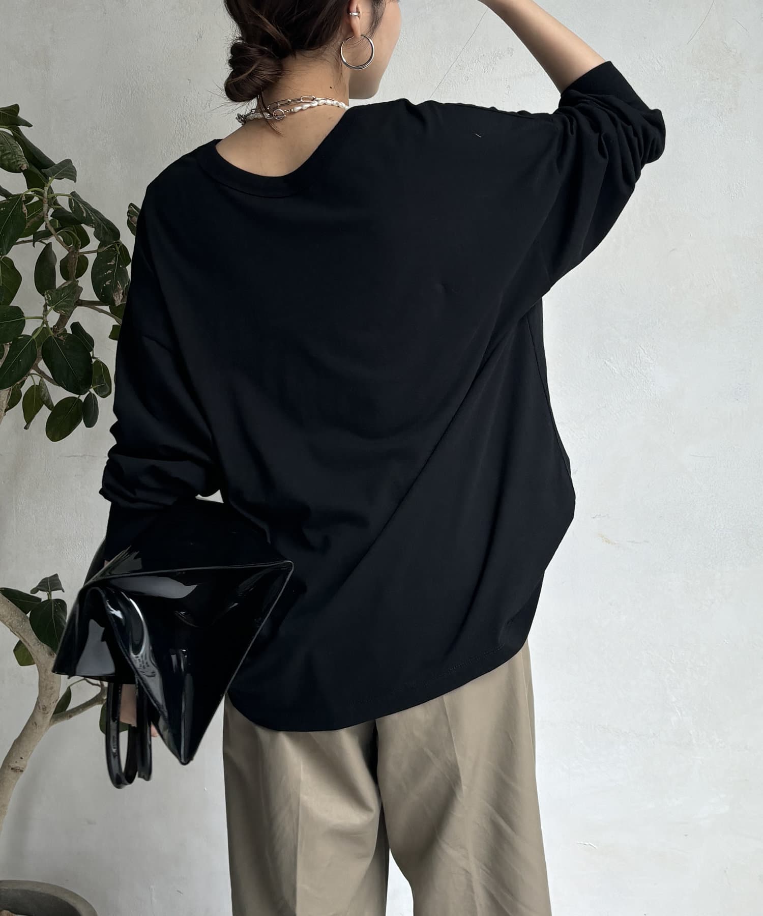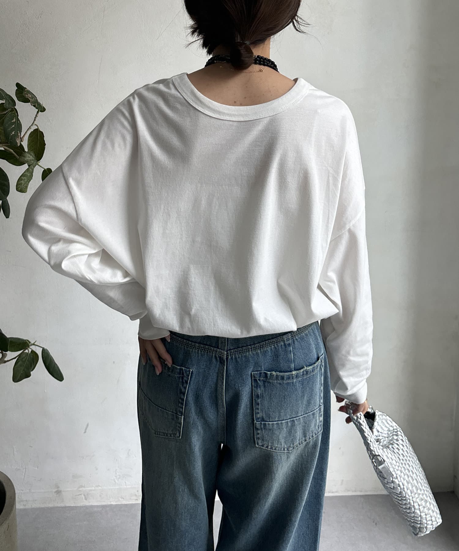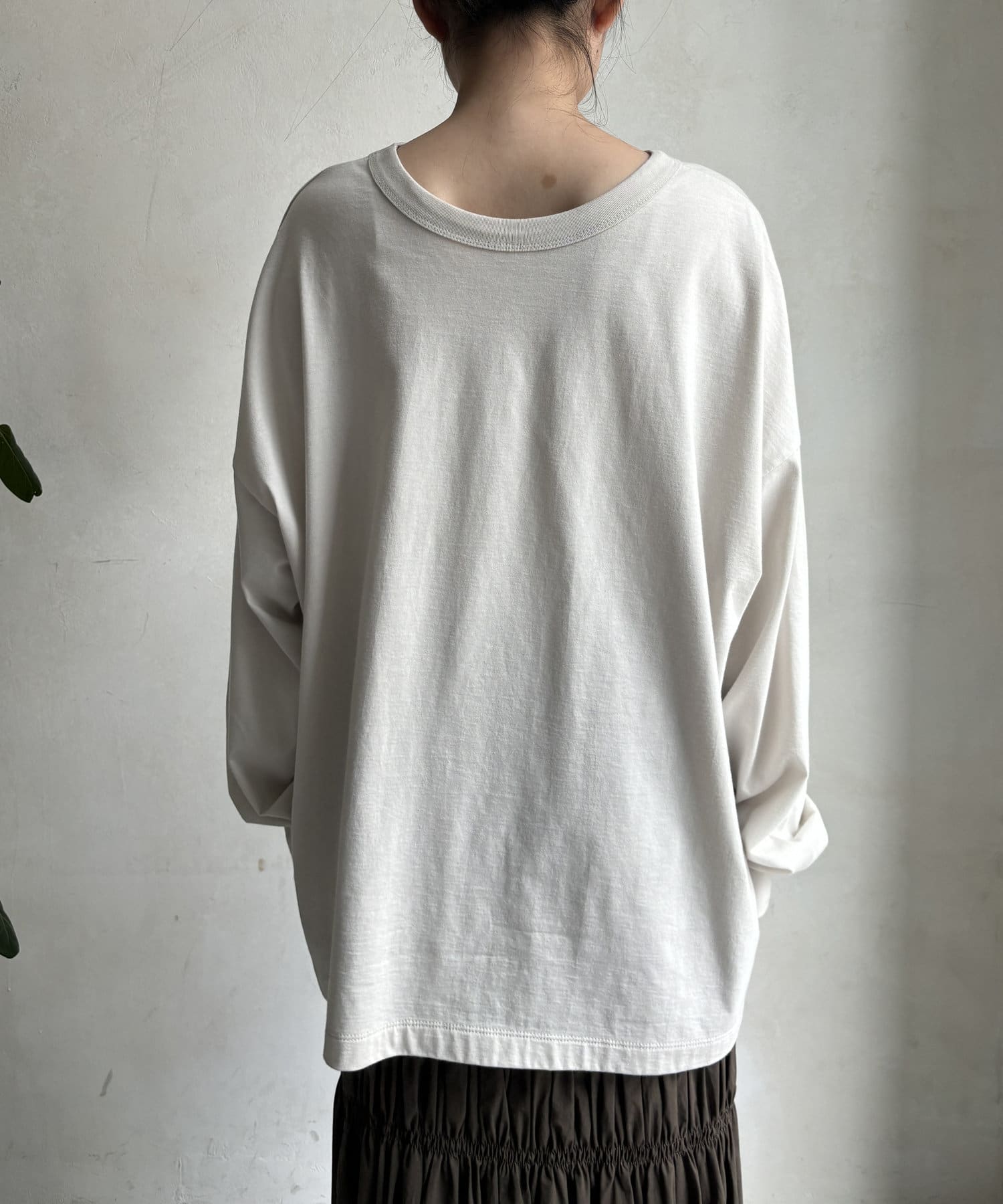 お袖は長めになっているので、たくし上げたときにボリュームを出しやすくこなれた印象になっております。
