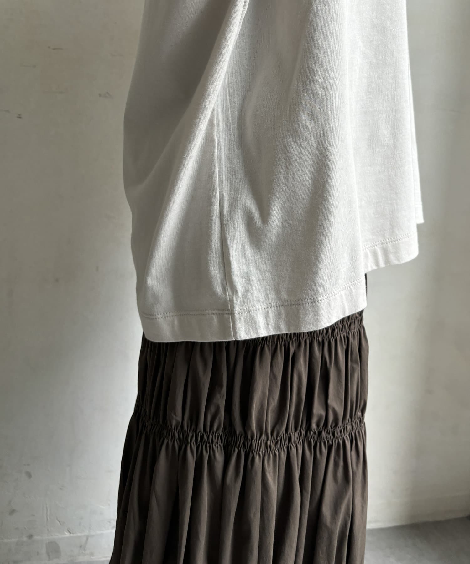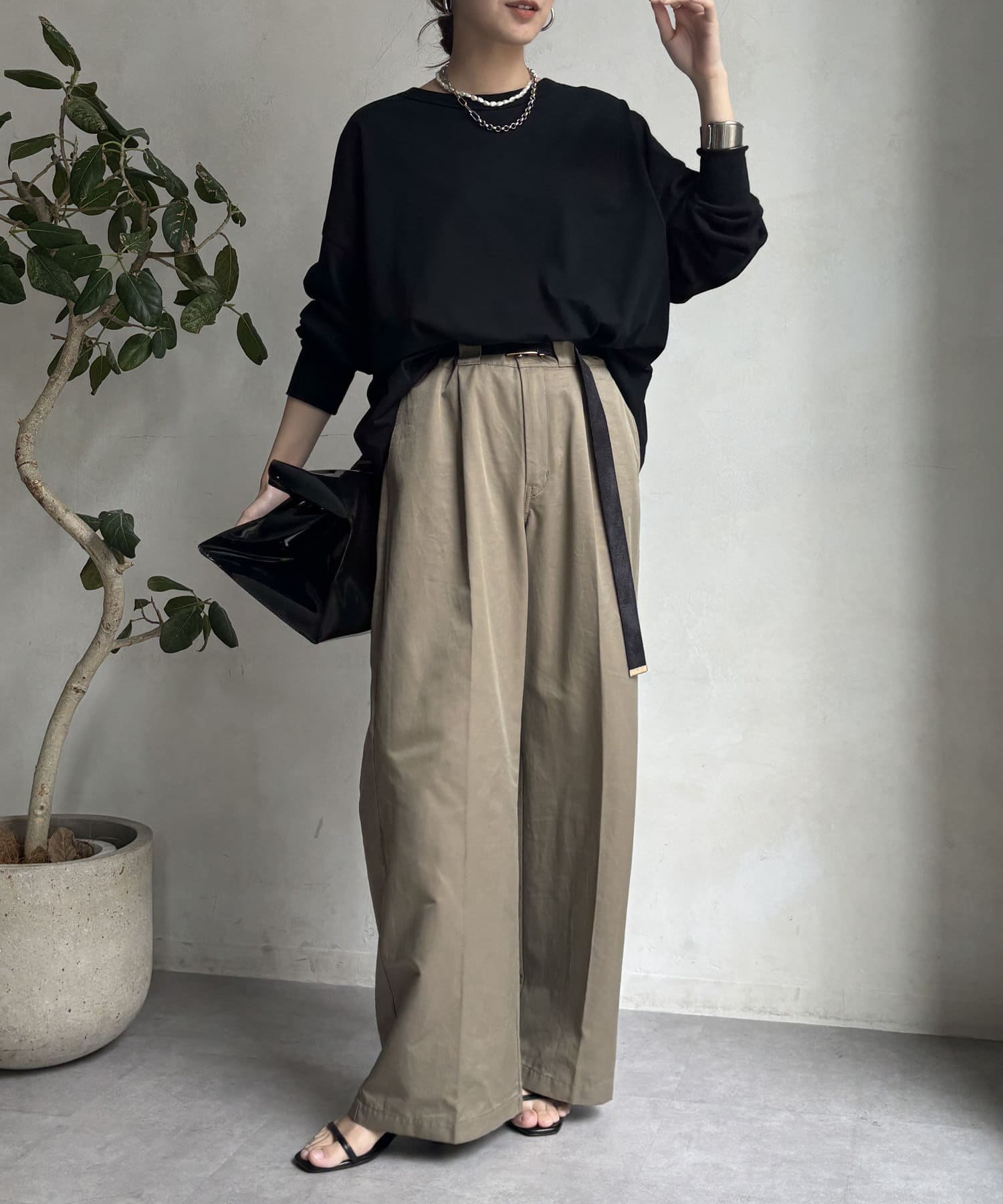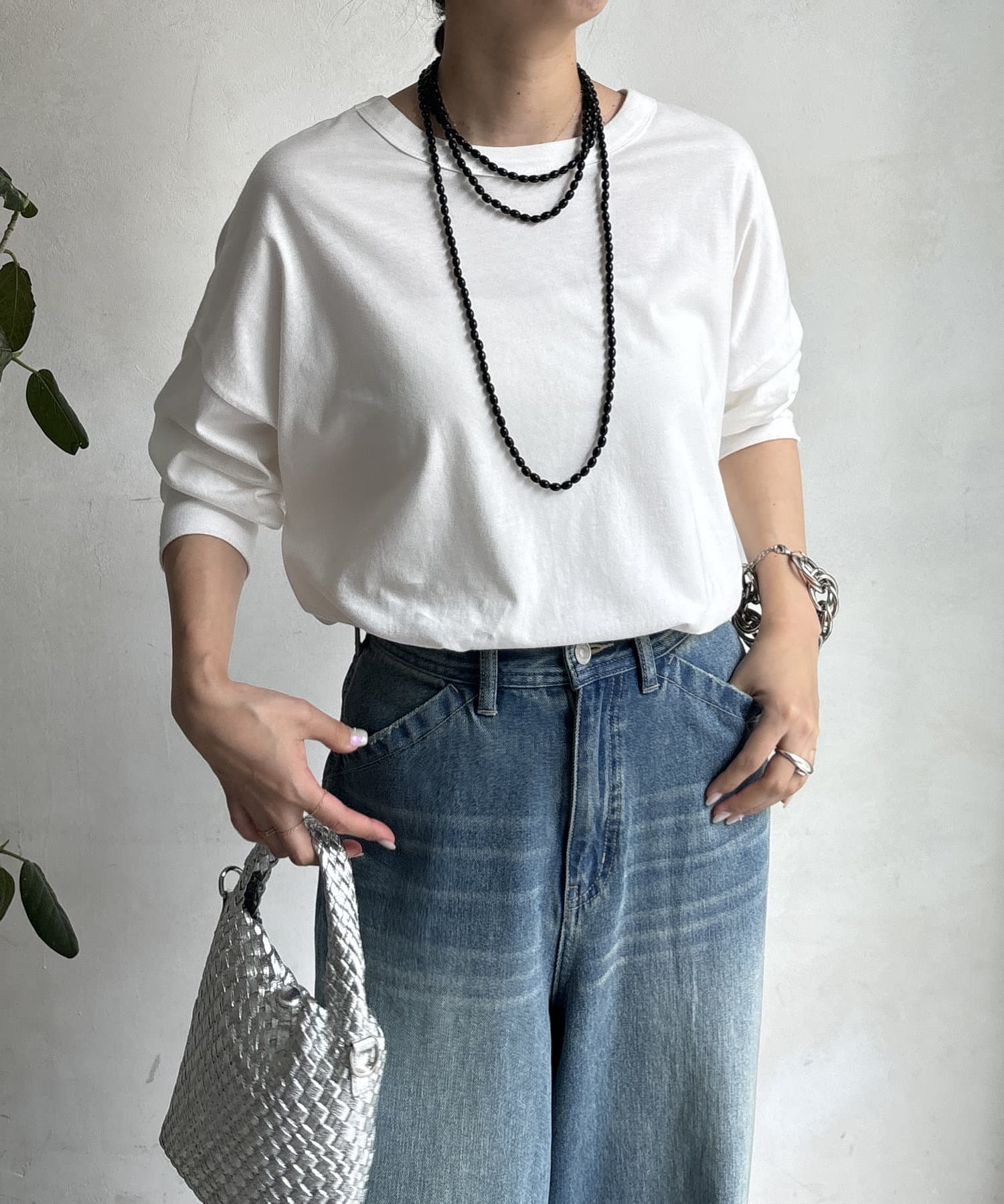 襟ぐりは詰まり過ぎず程よいあきで抜け感を、