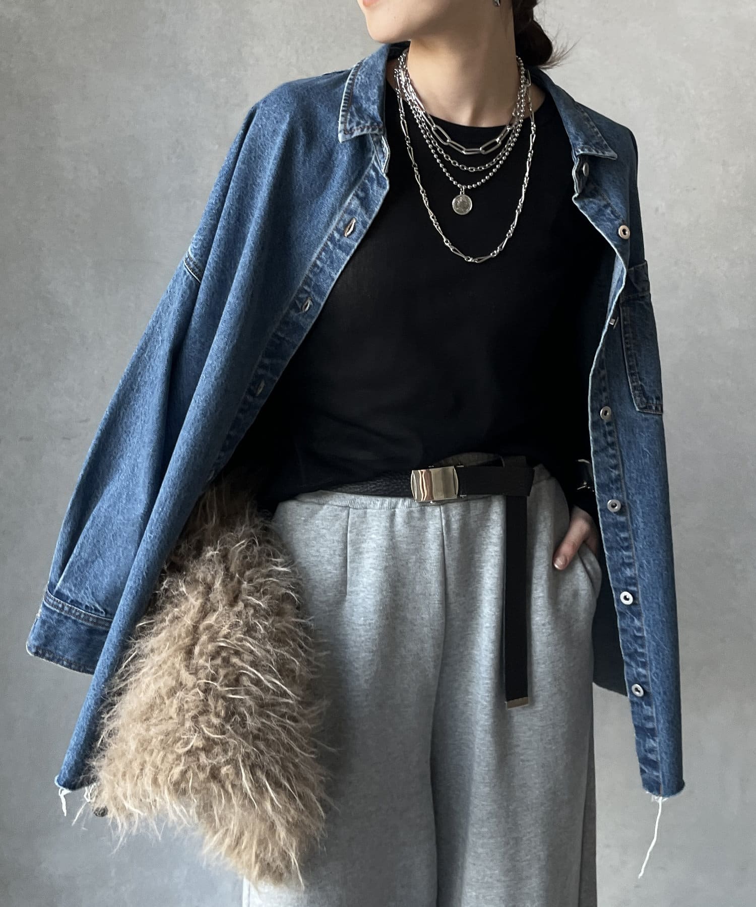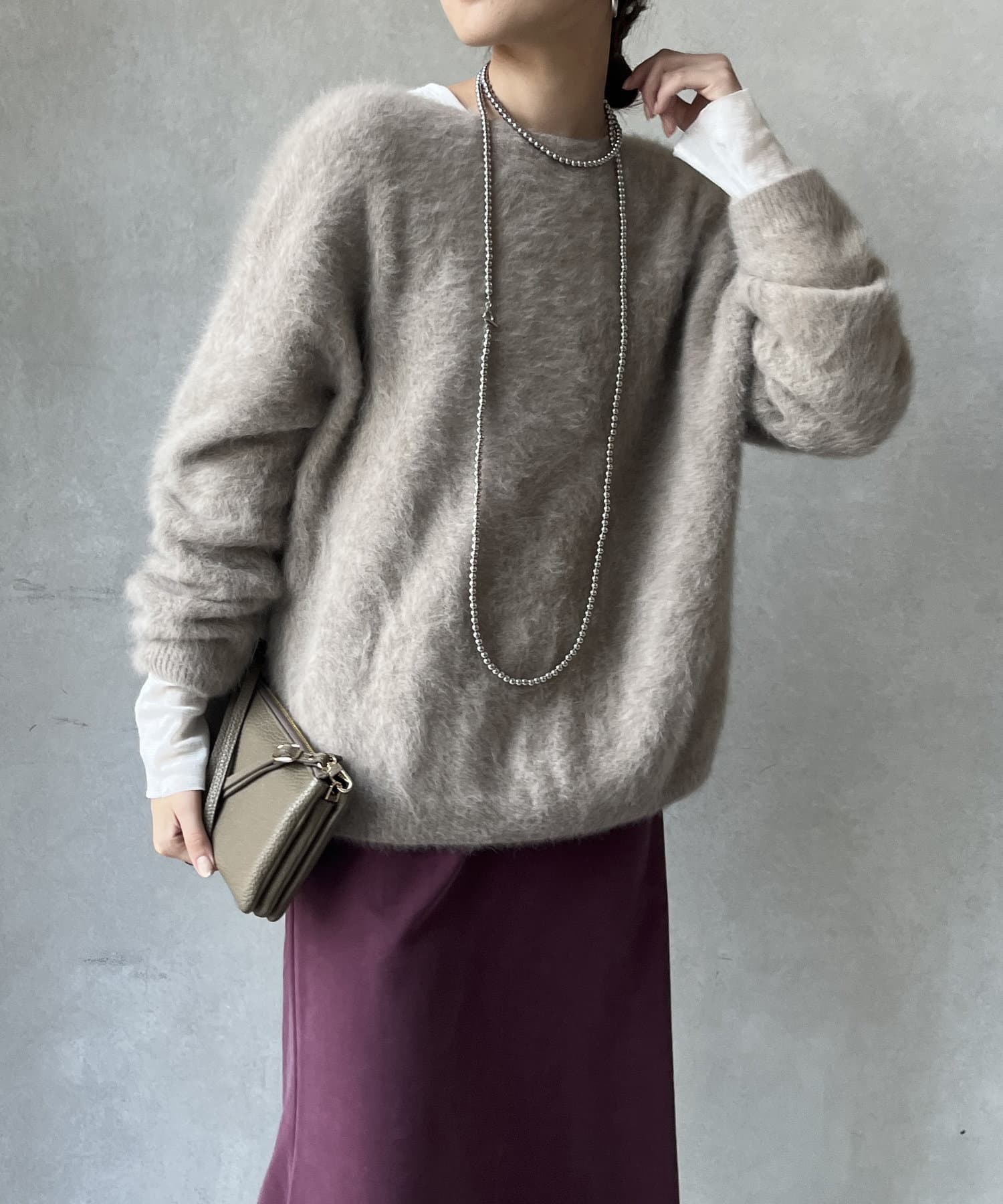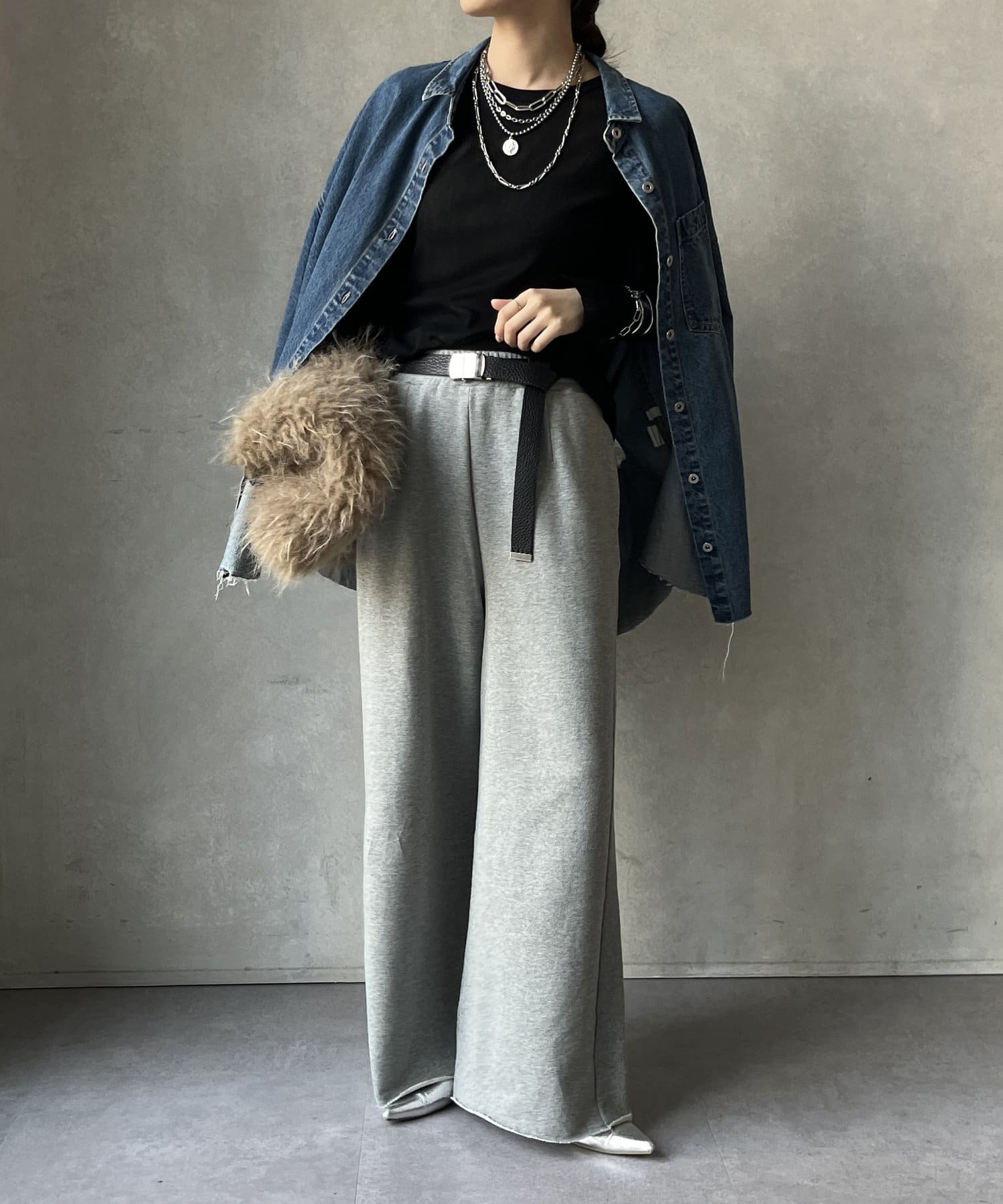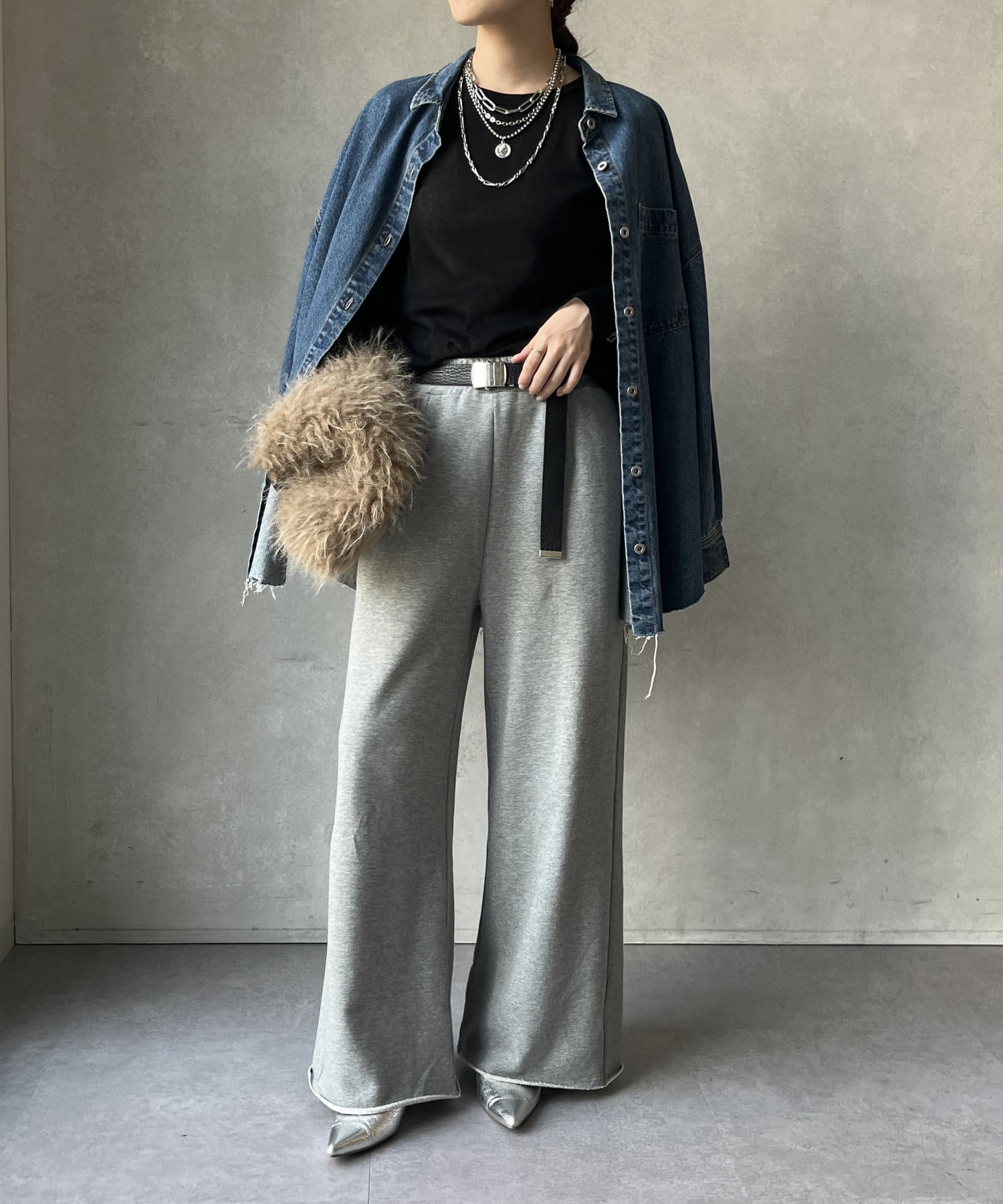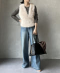 ニットやスウェットなどとのレイヤードスタイルもおすすめ!