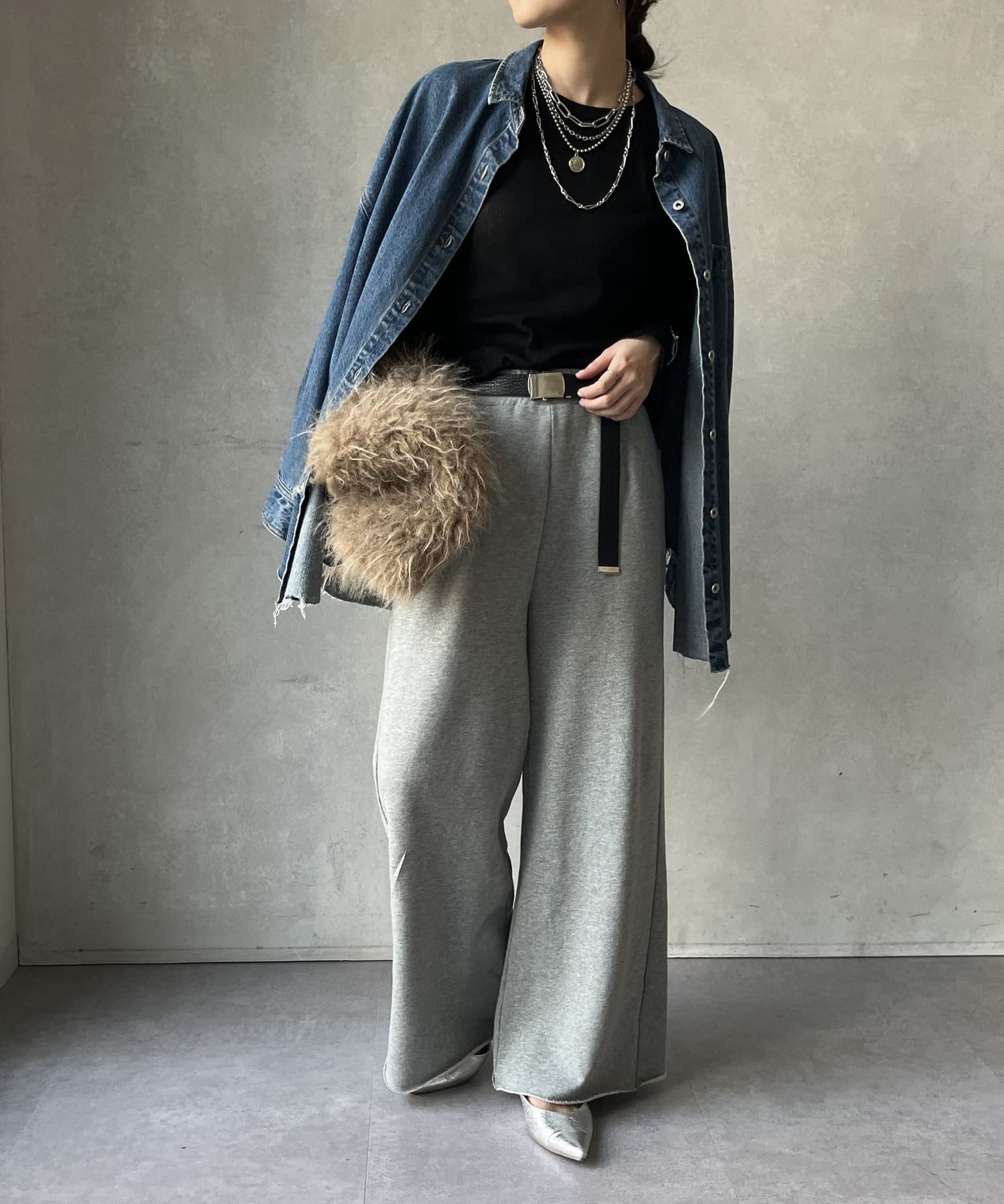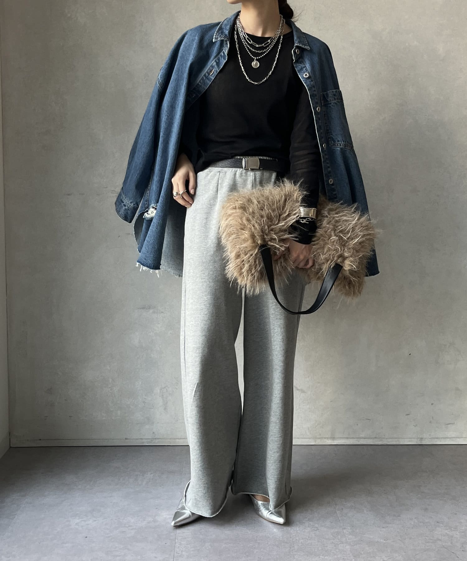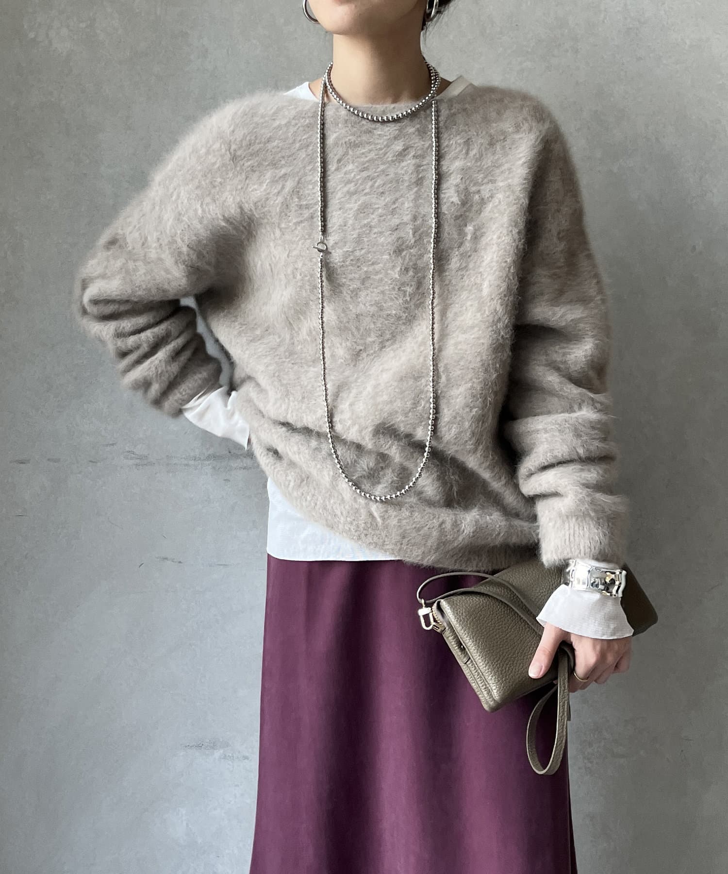 ニットやスウェットなどとのレイヤードスタイルもおすすめ!
