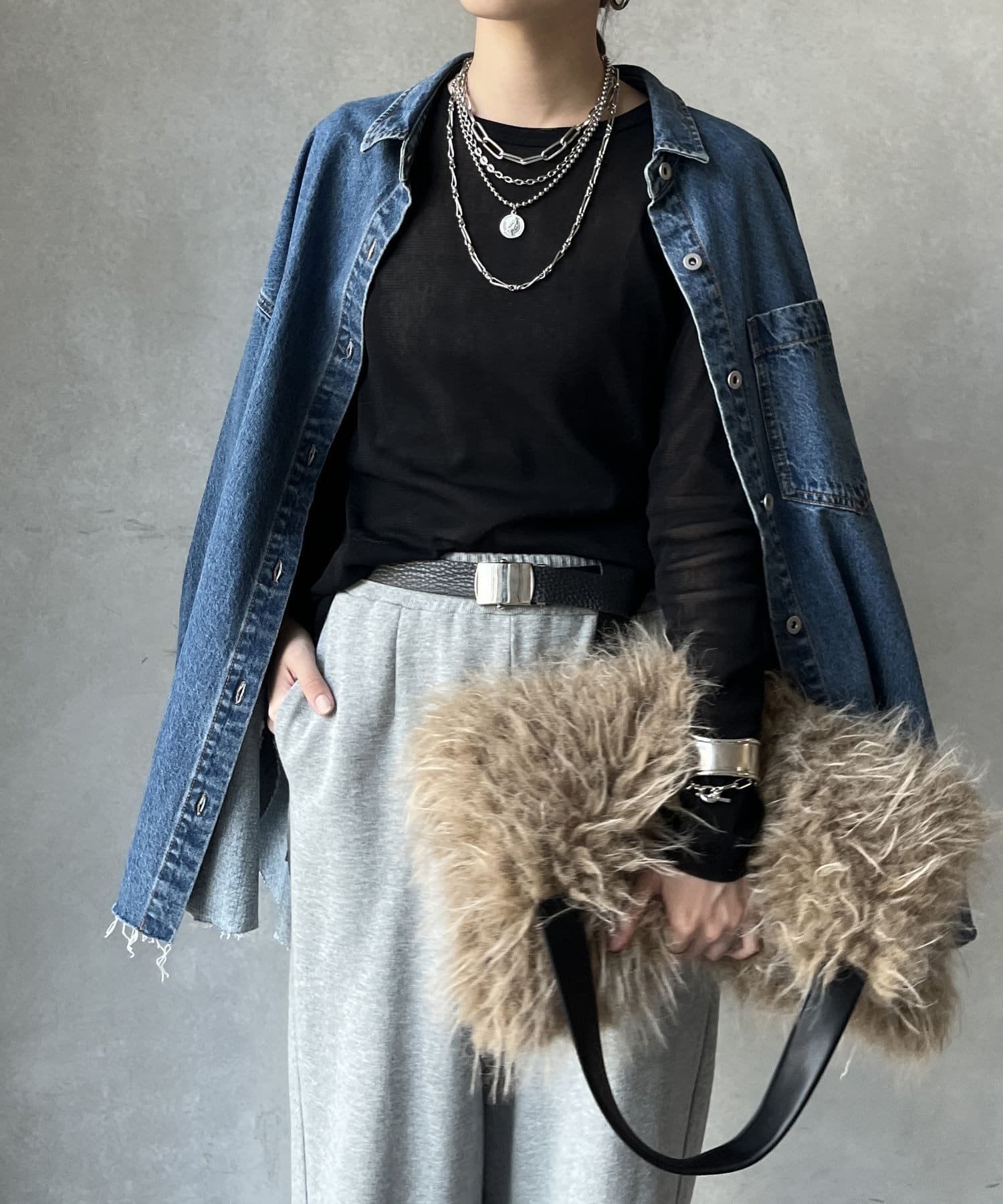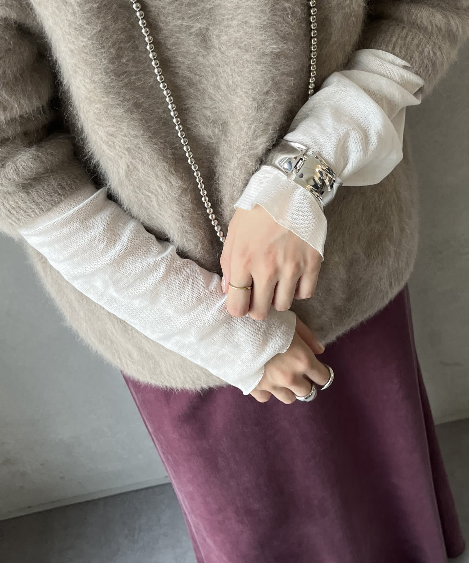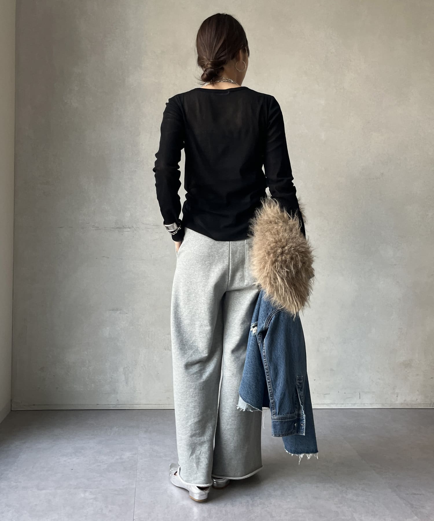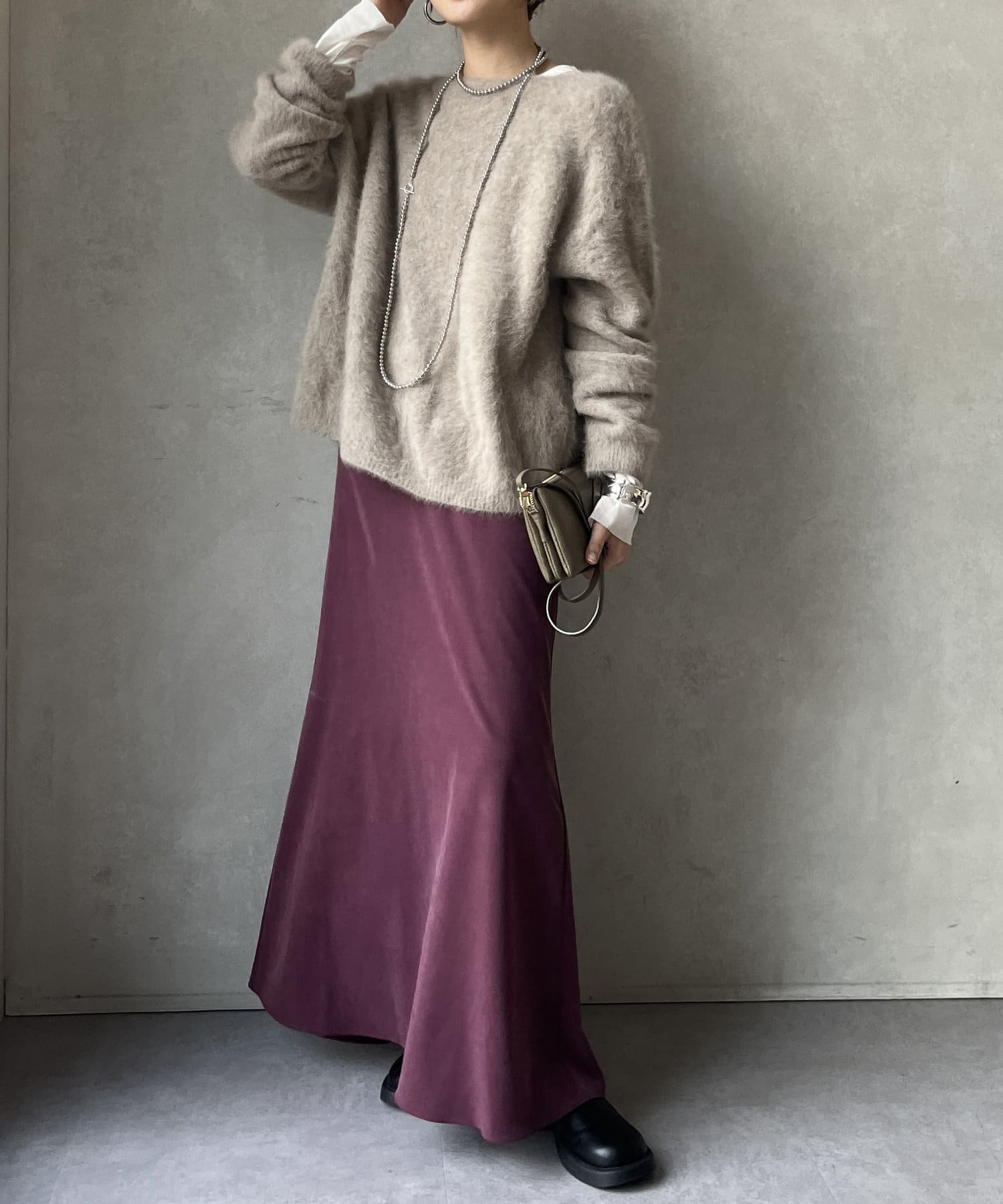 ニットやスウェットなどとのレイヤードスタイルもおすすめ!