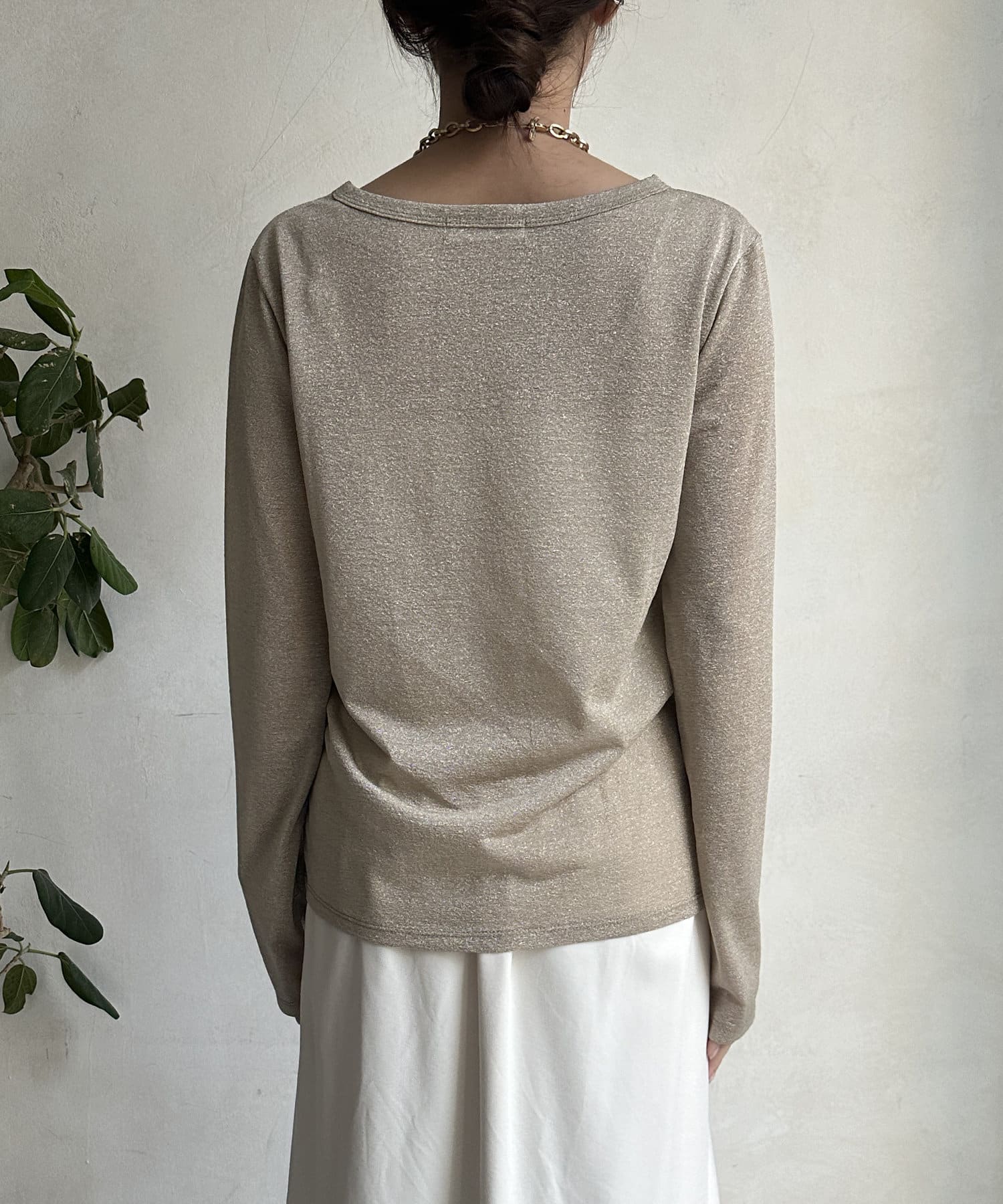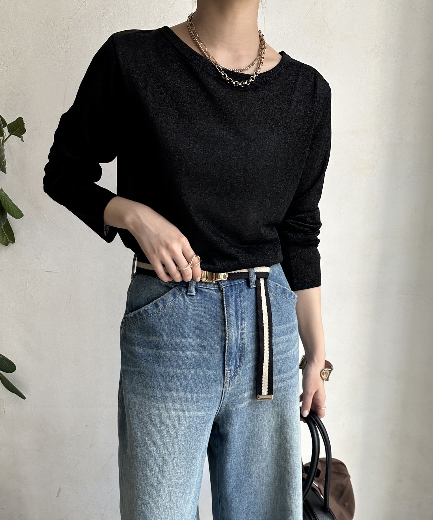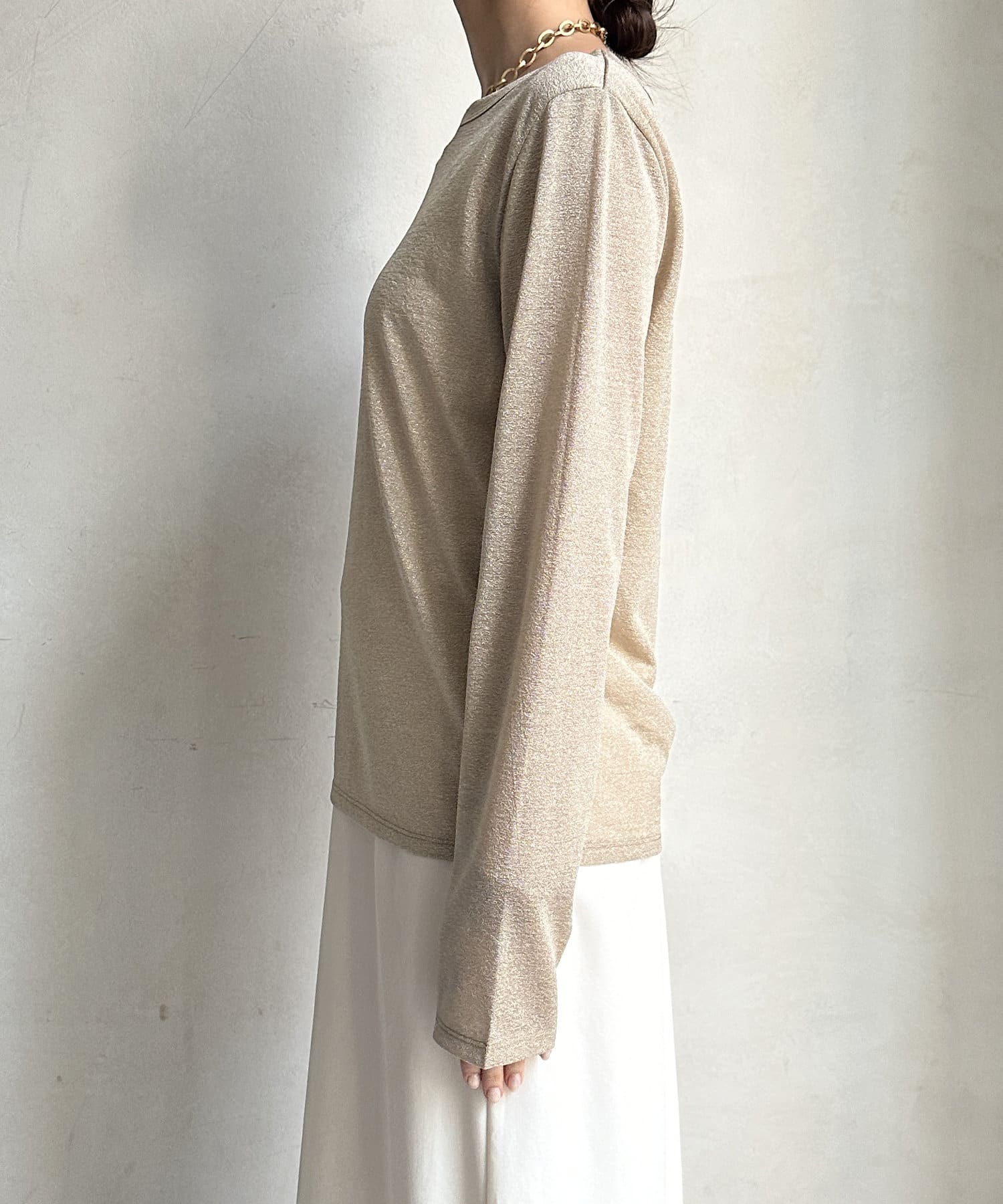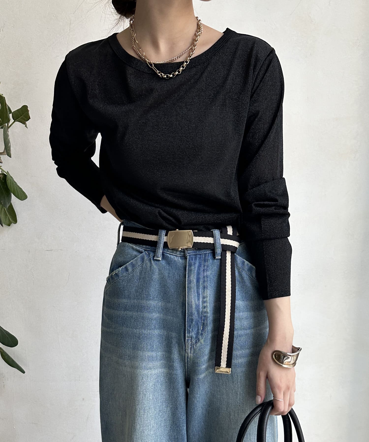 さりげないラメが大人カジュアルコーデにマッチするロンTEE。