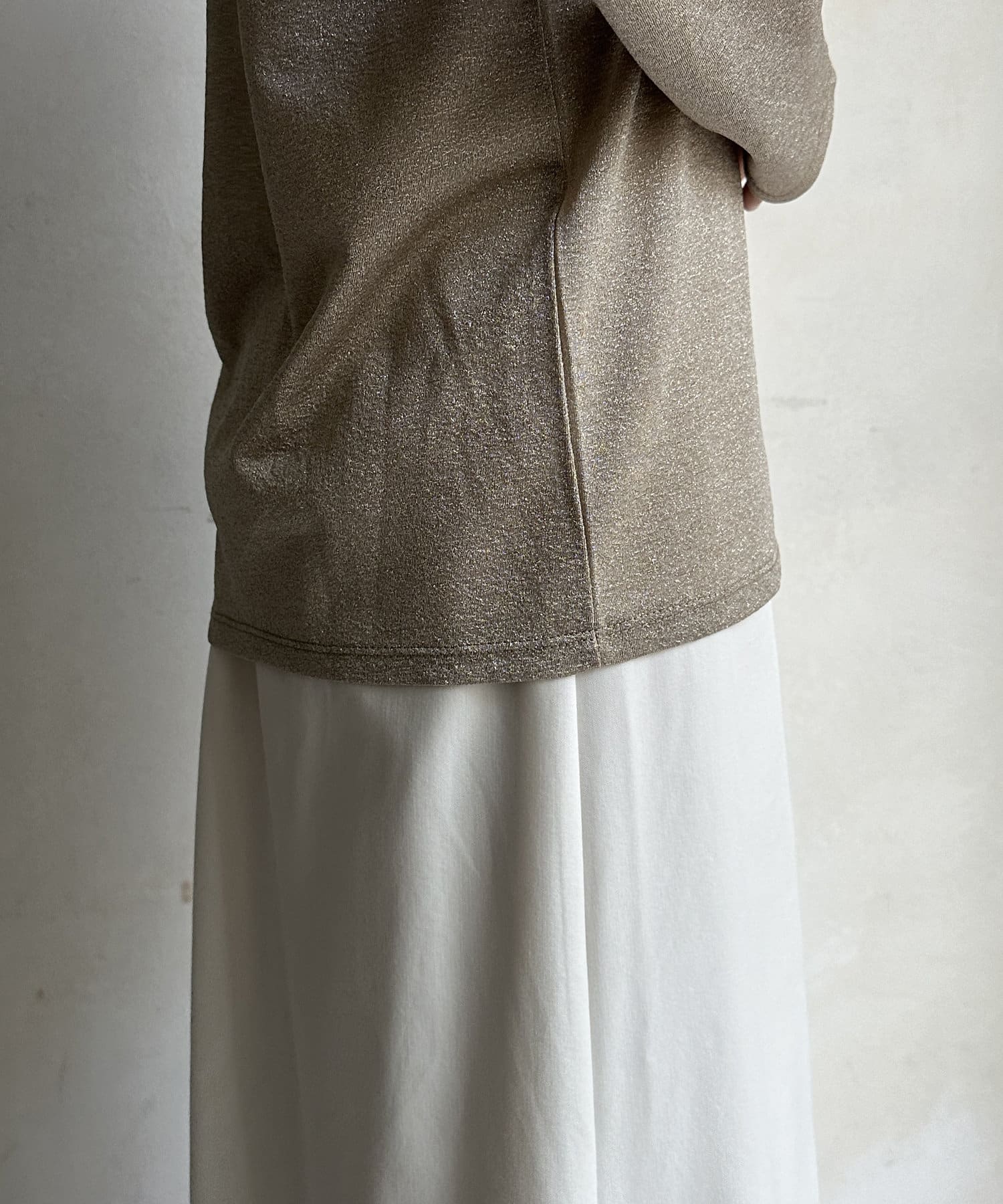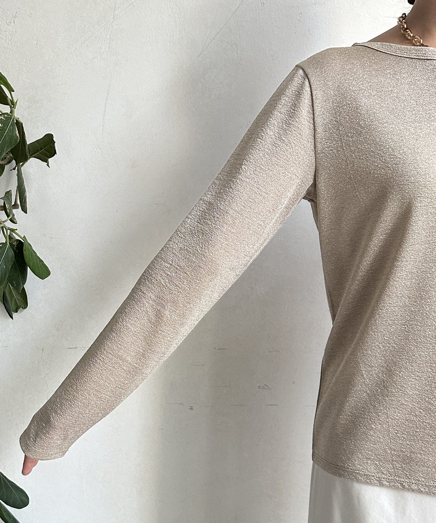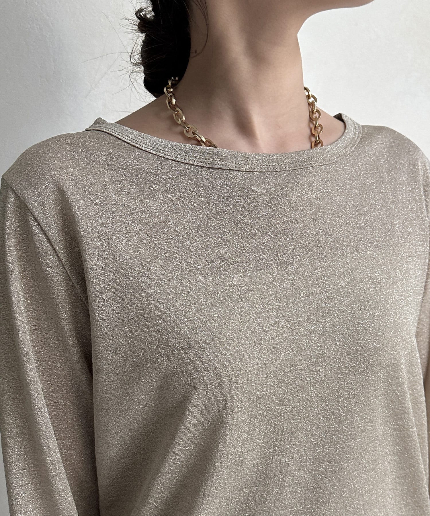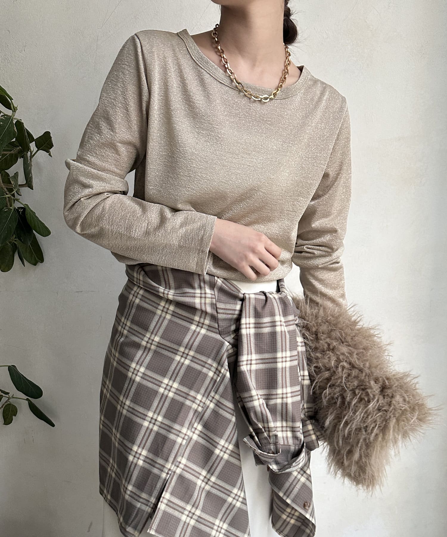 さりげないラメが大人カジュアルコーデにマッチするロンTEE。