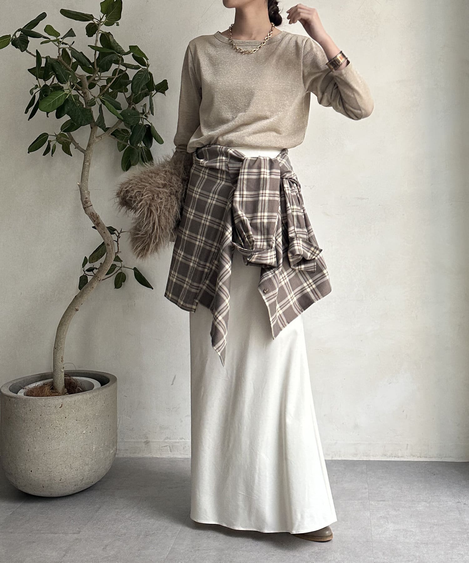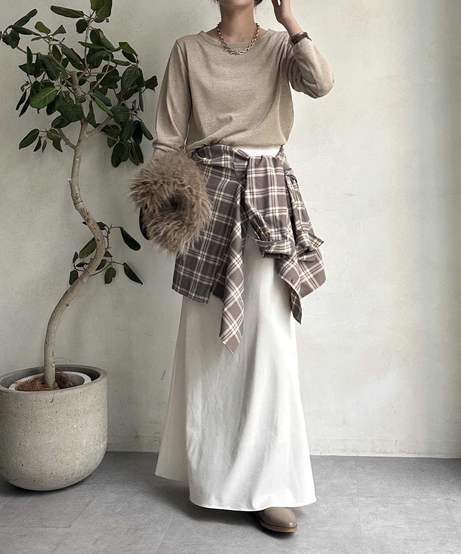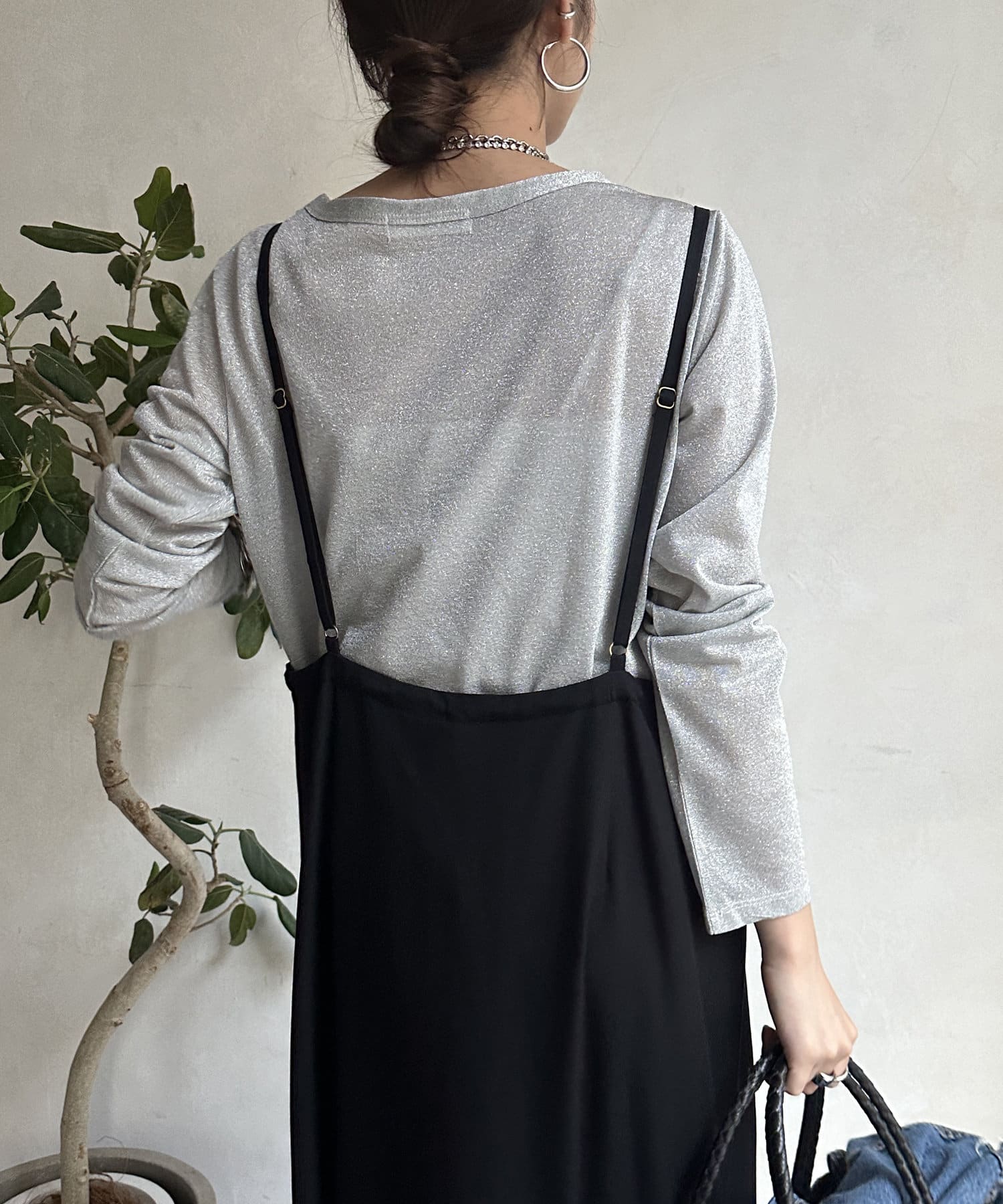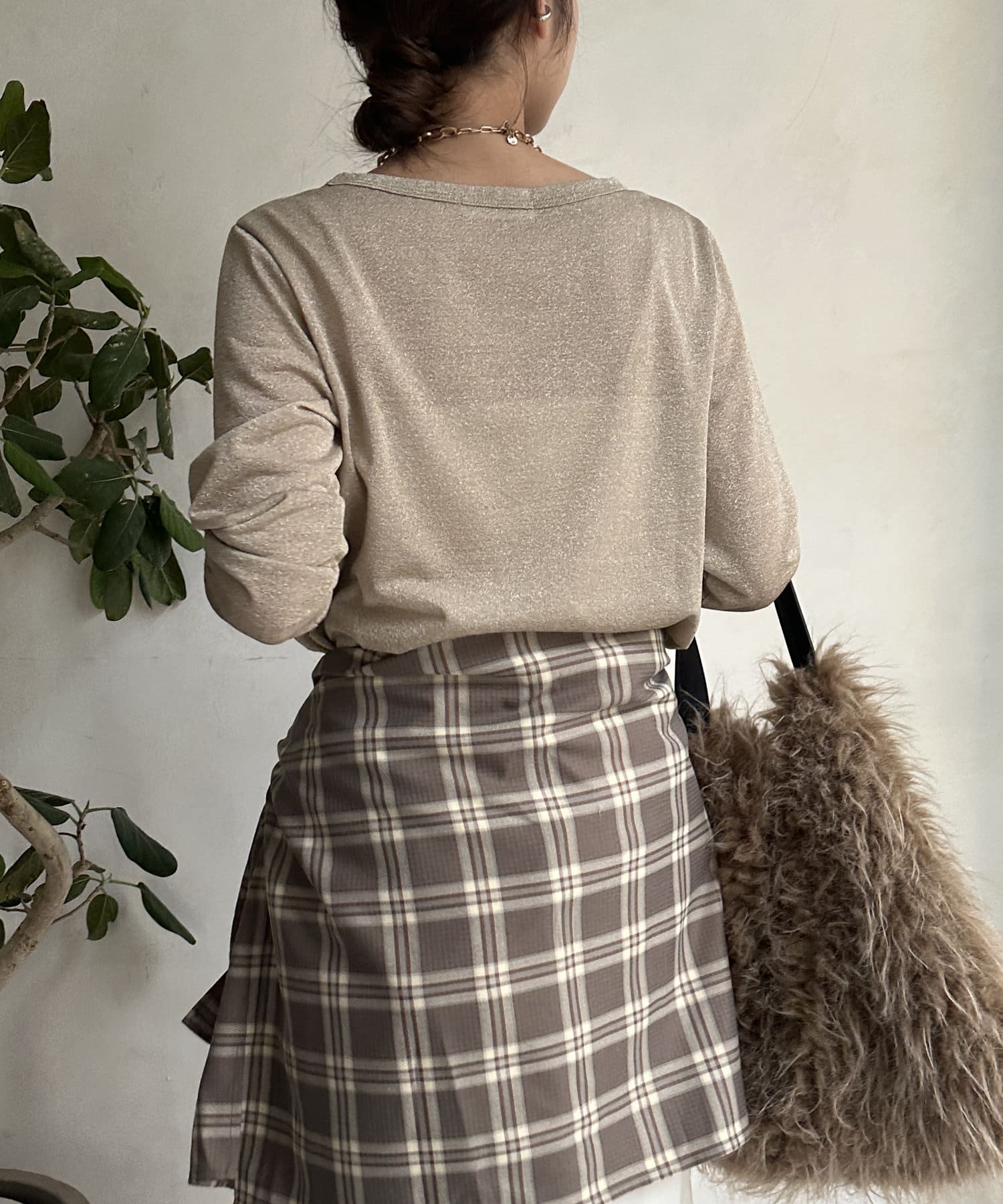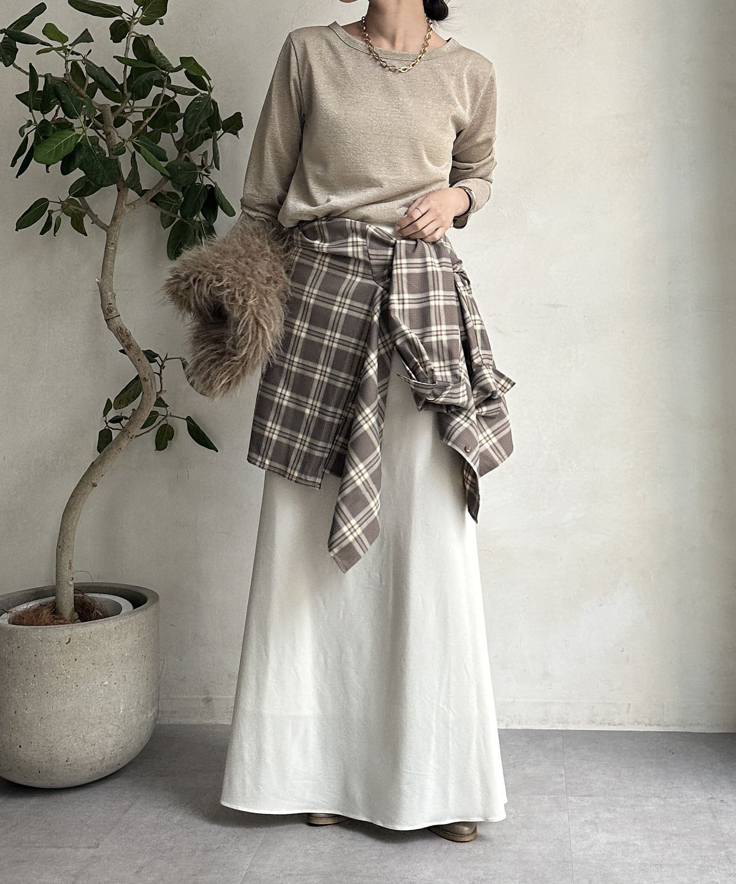 さりげないラメが大人カジュアルコーデにマッチするロンTEE。