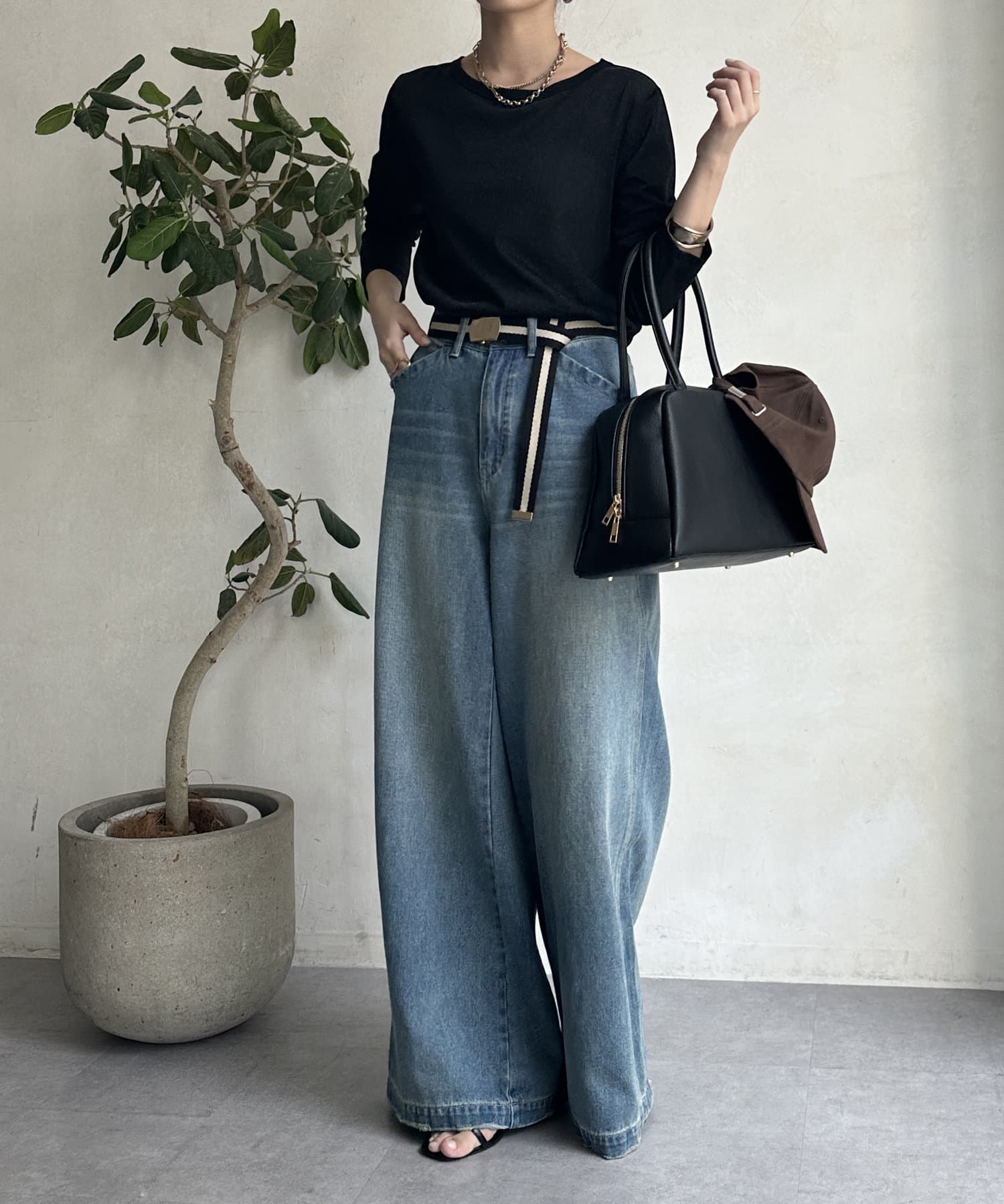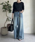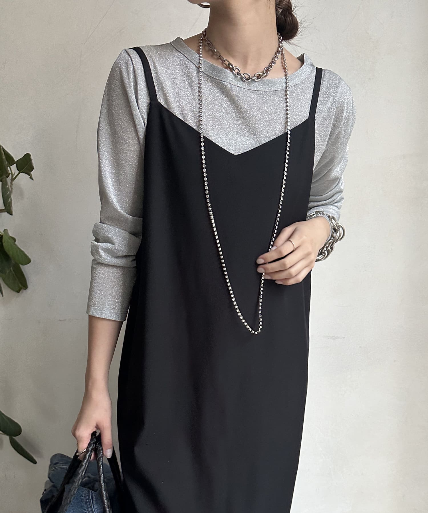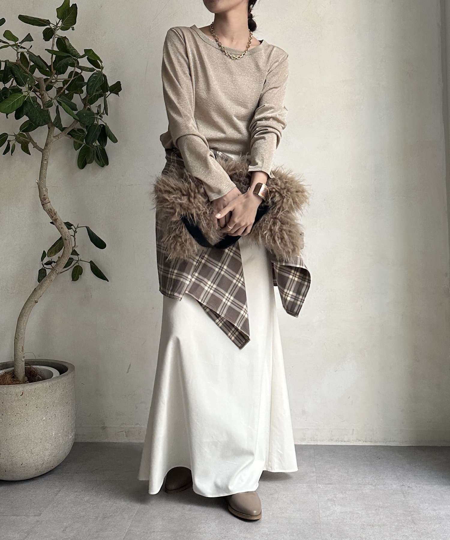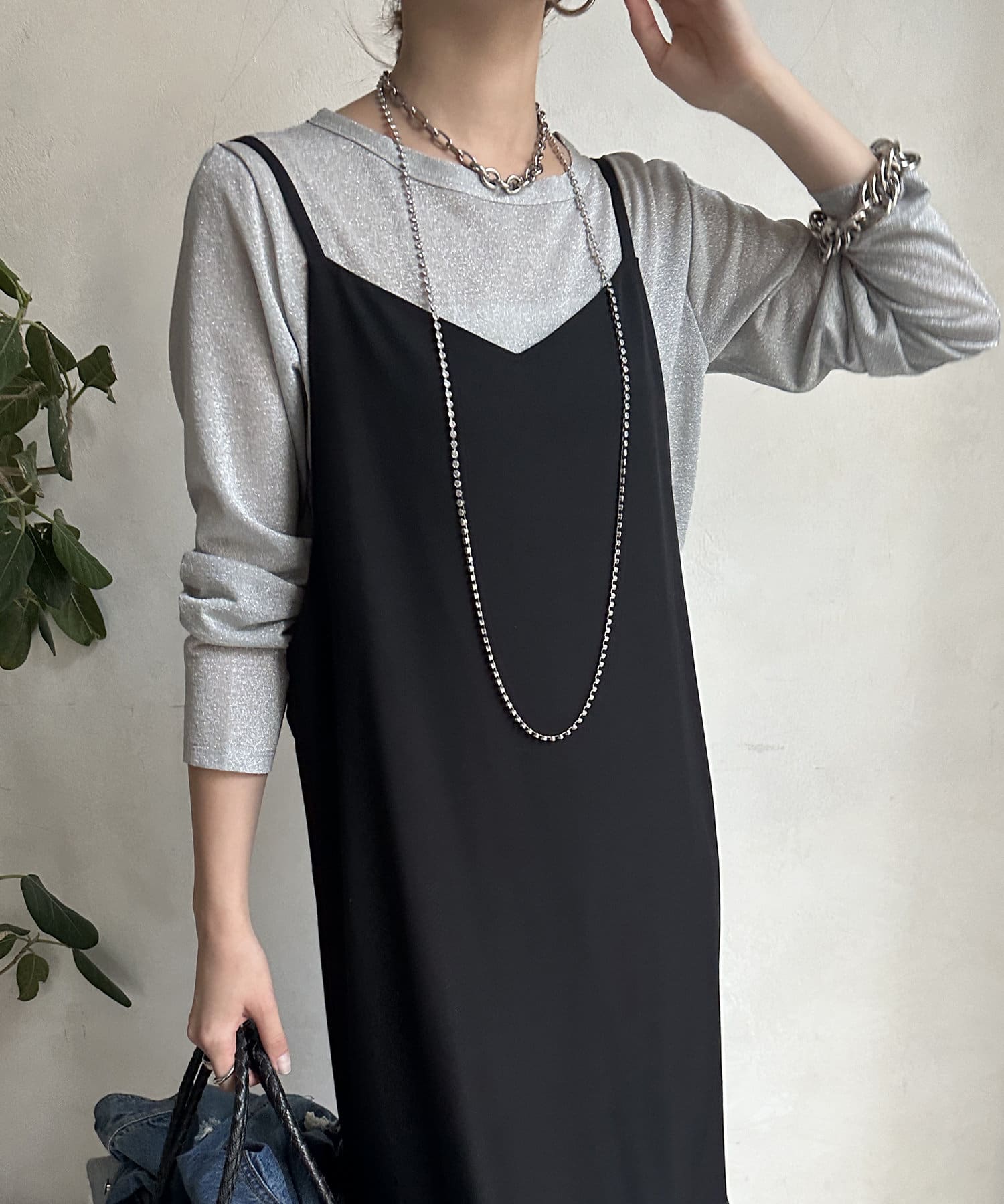 さりげないラメが大人カジュアルコーデにマッチするロンTEE。