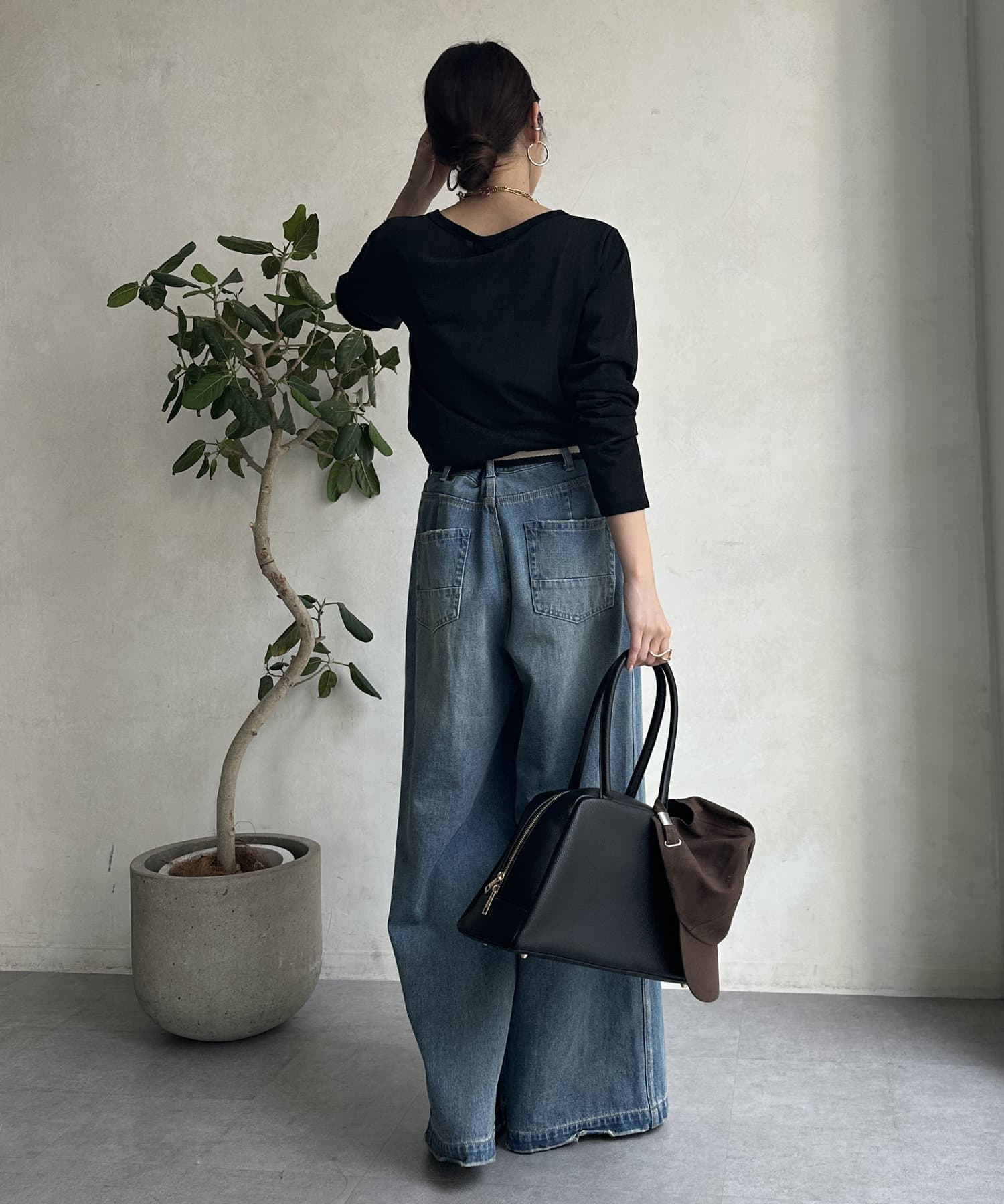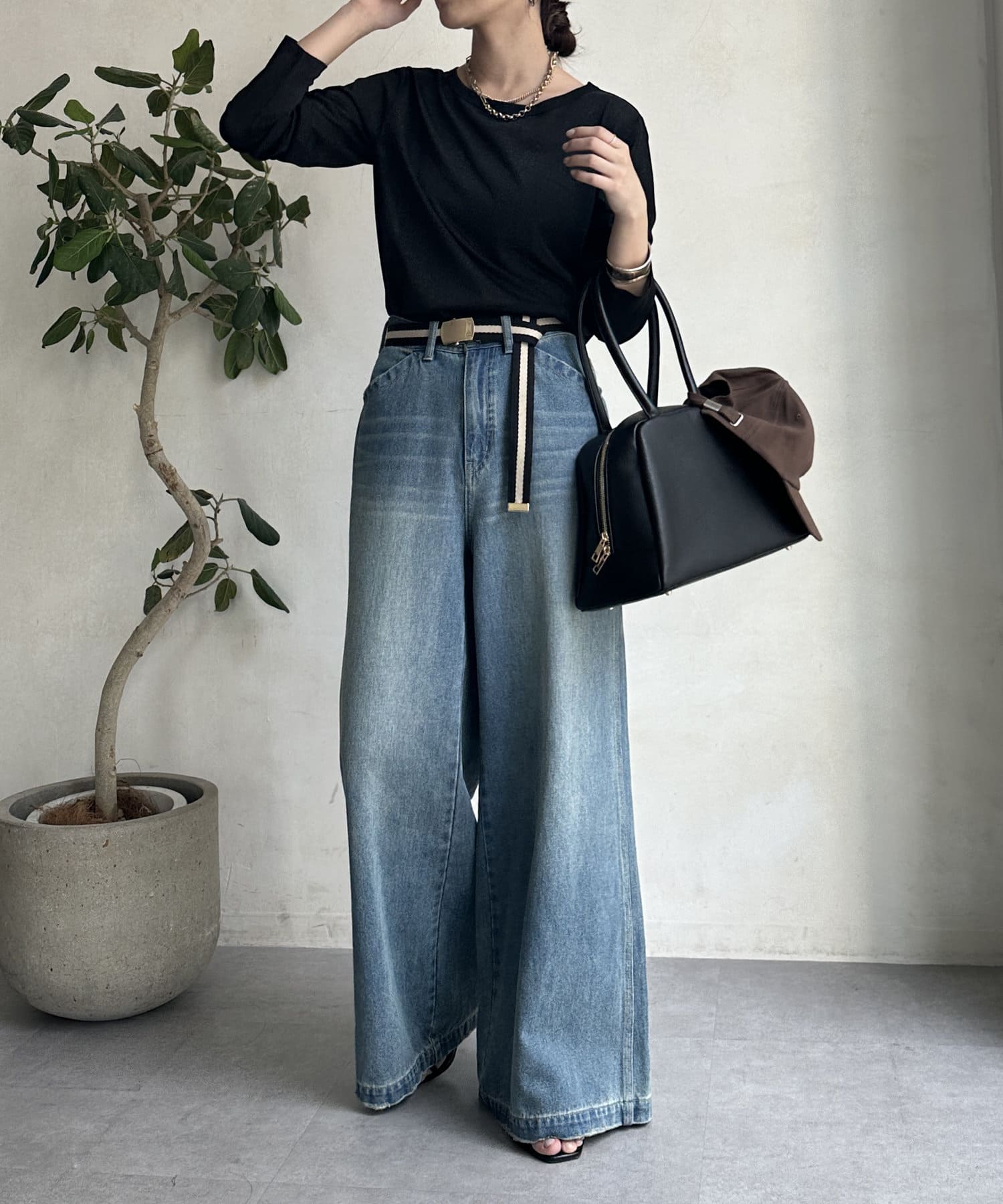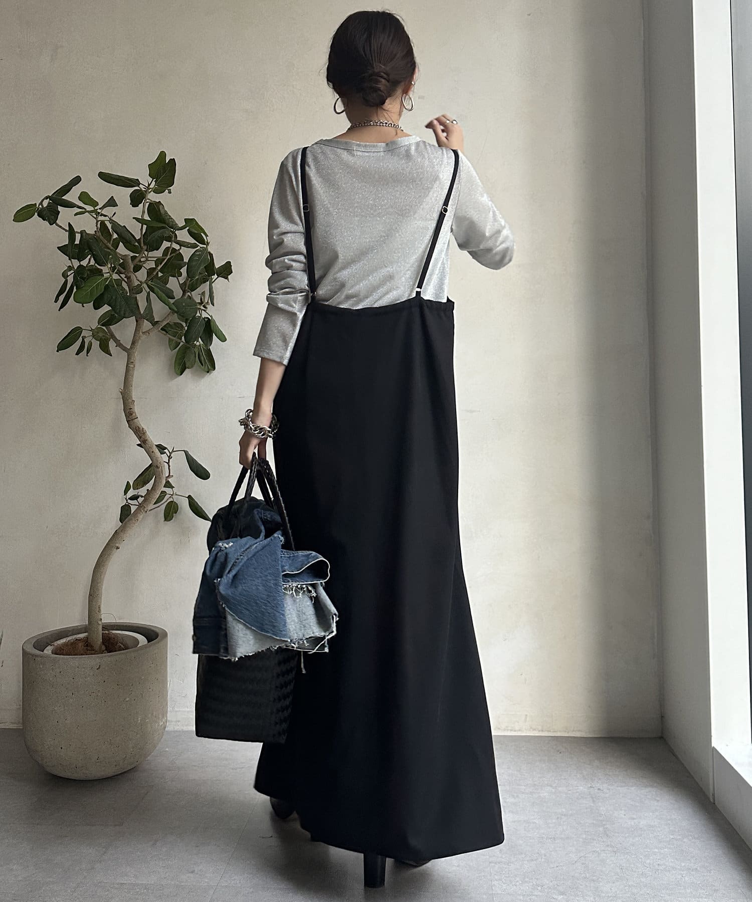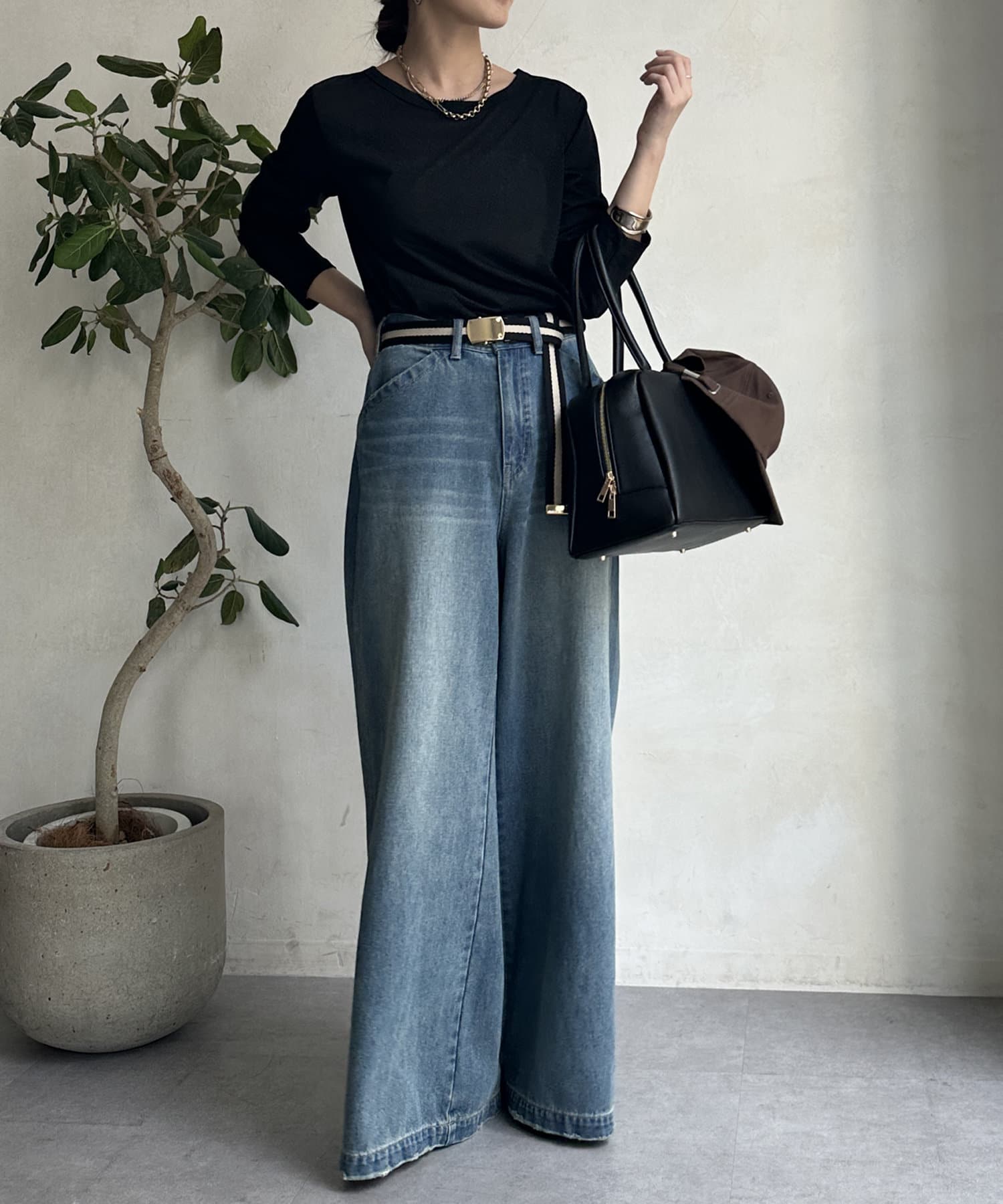 さりげないラメが大人カジュアルコーデにマッチするロンTEE。