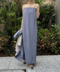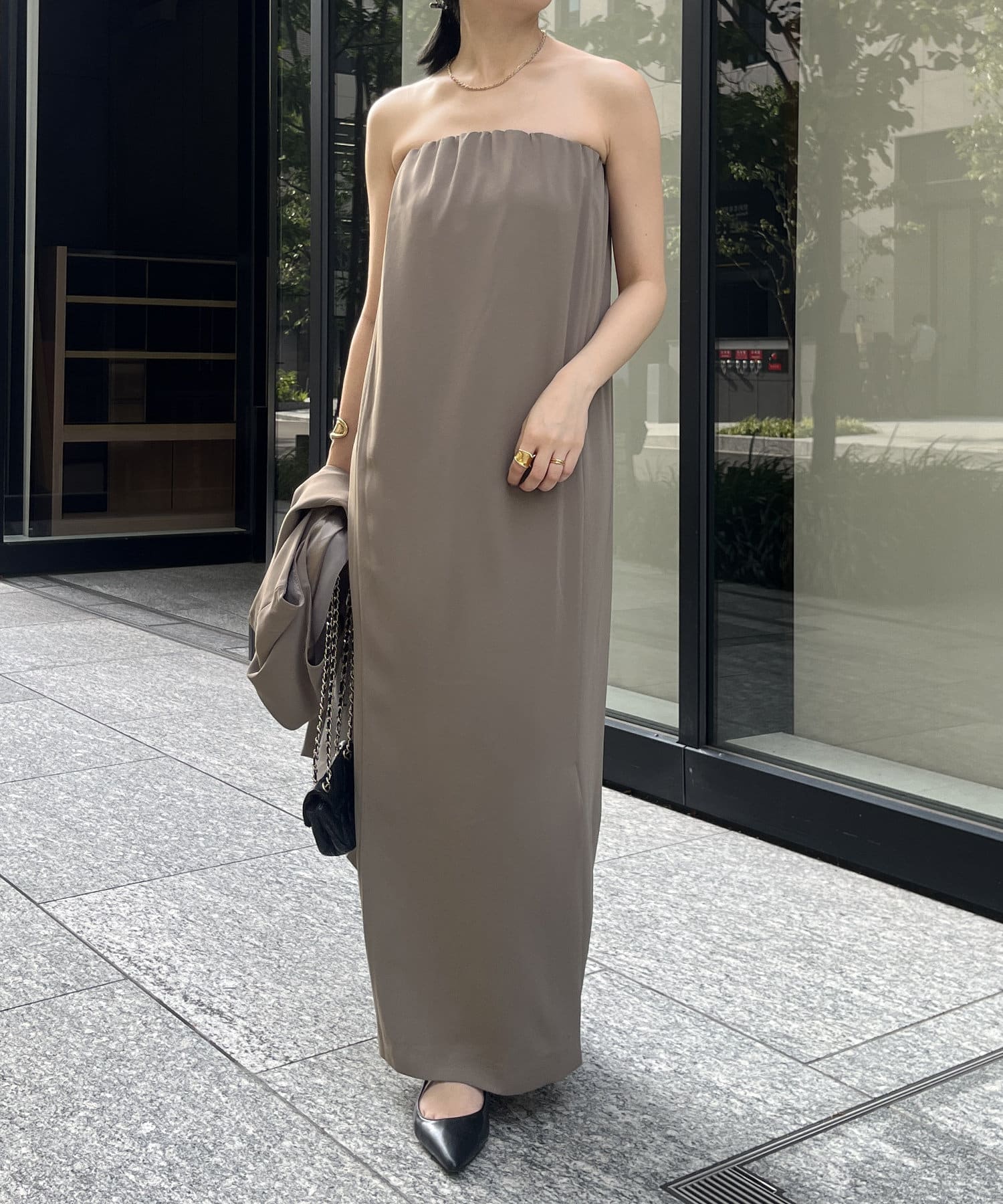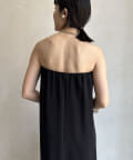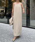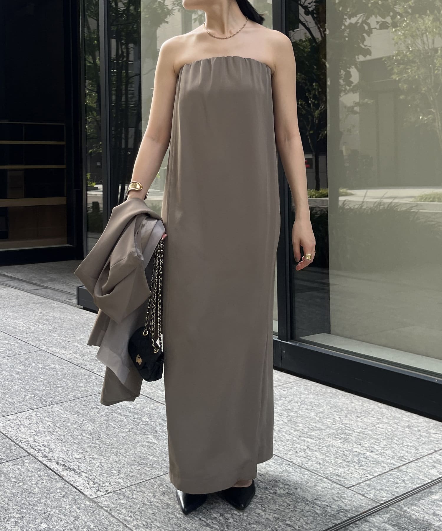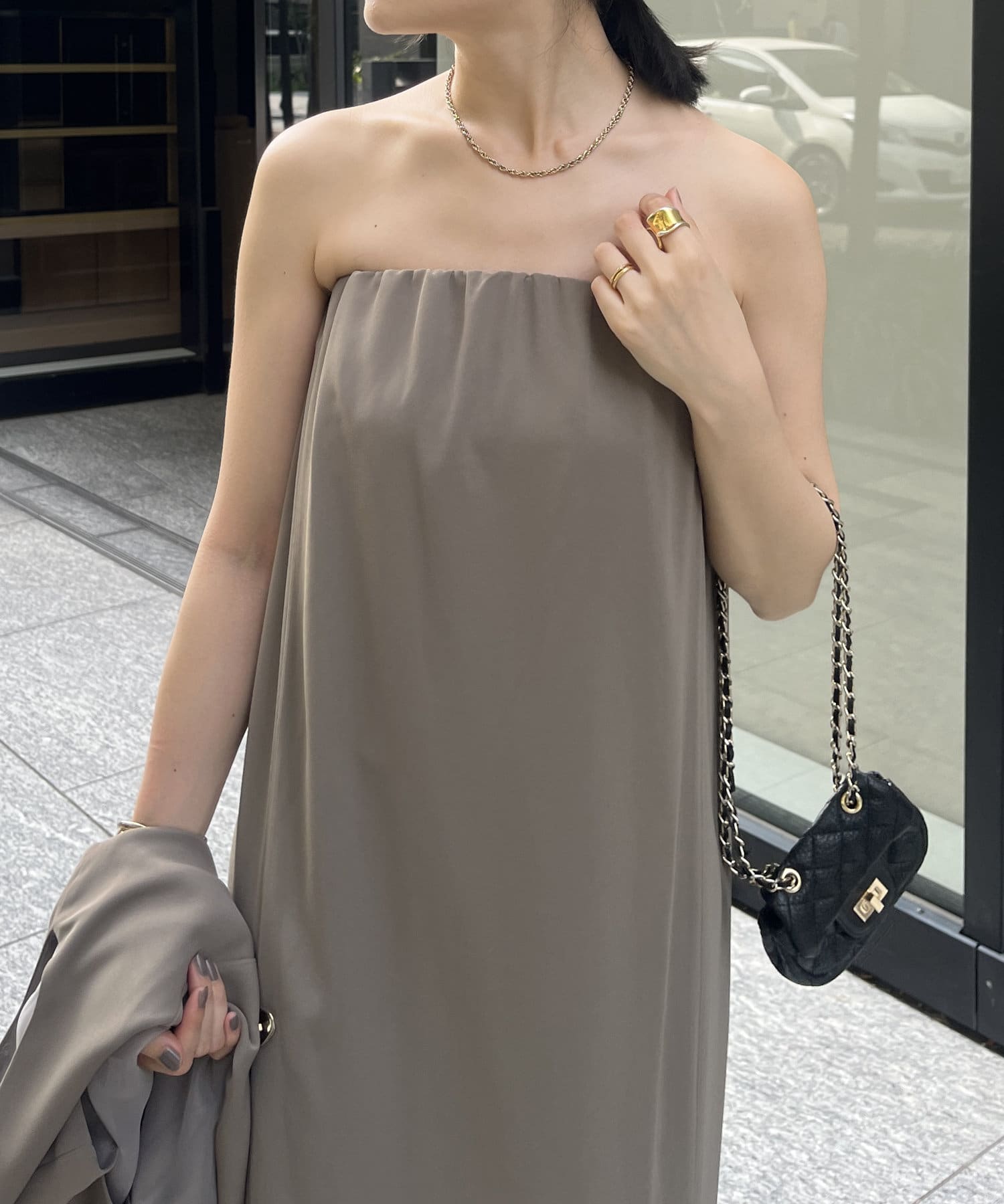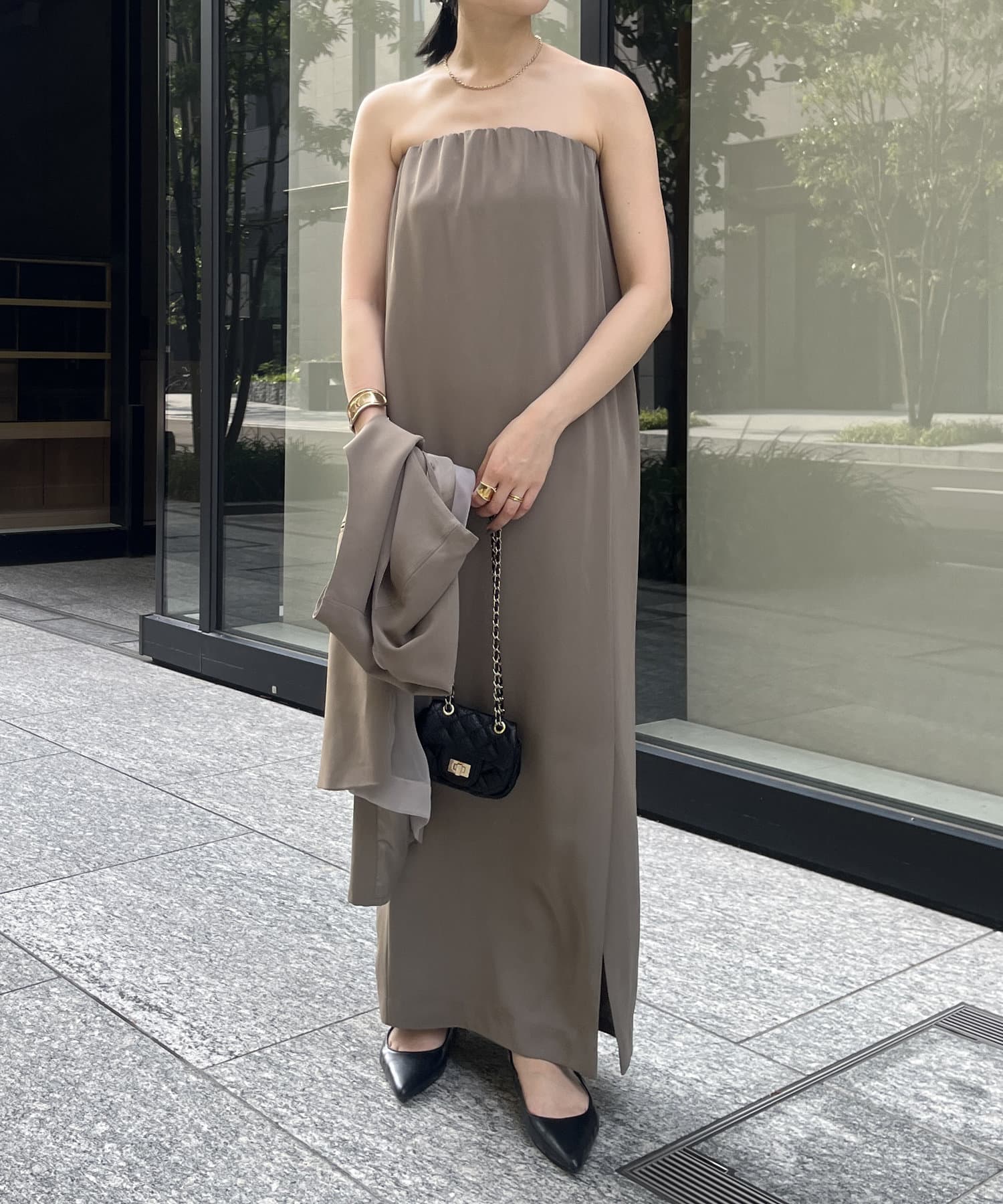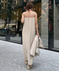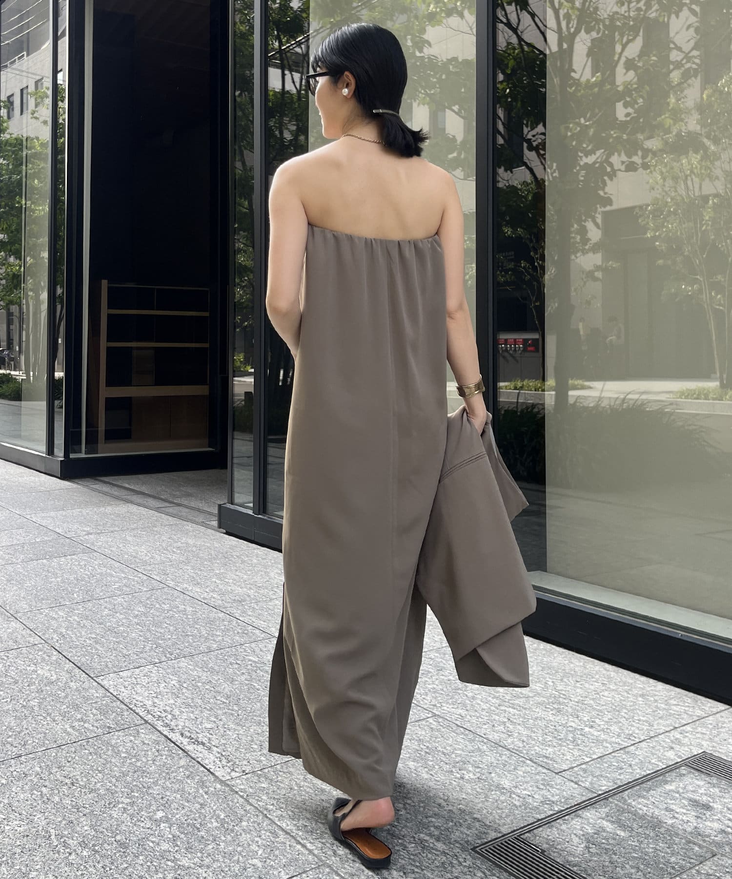 ジレと同じ素材を使用した3枚ハギ仕立てのワンピースは、