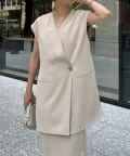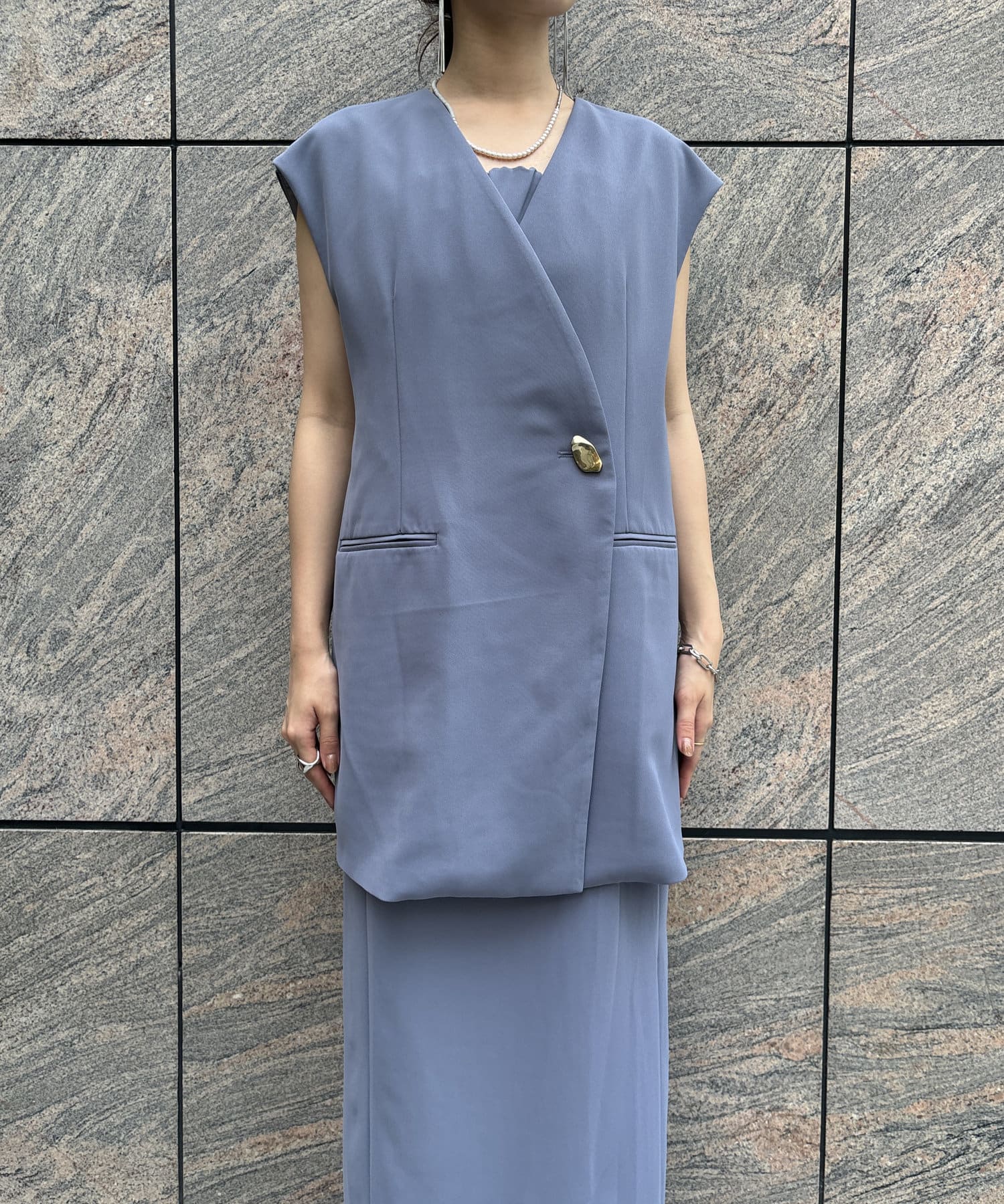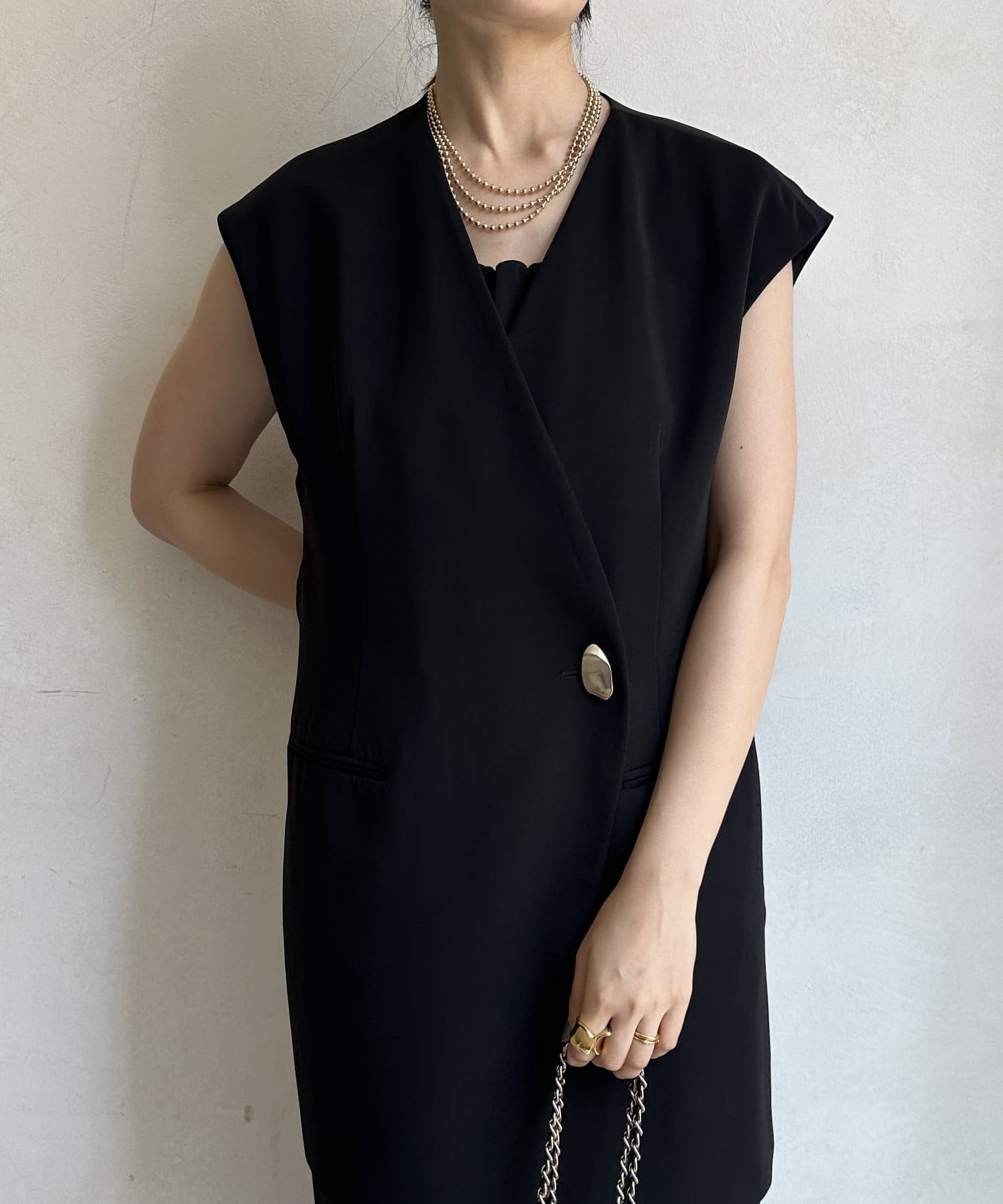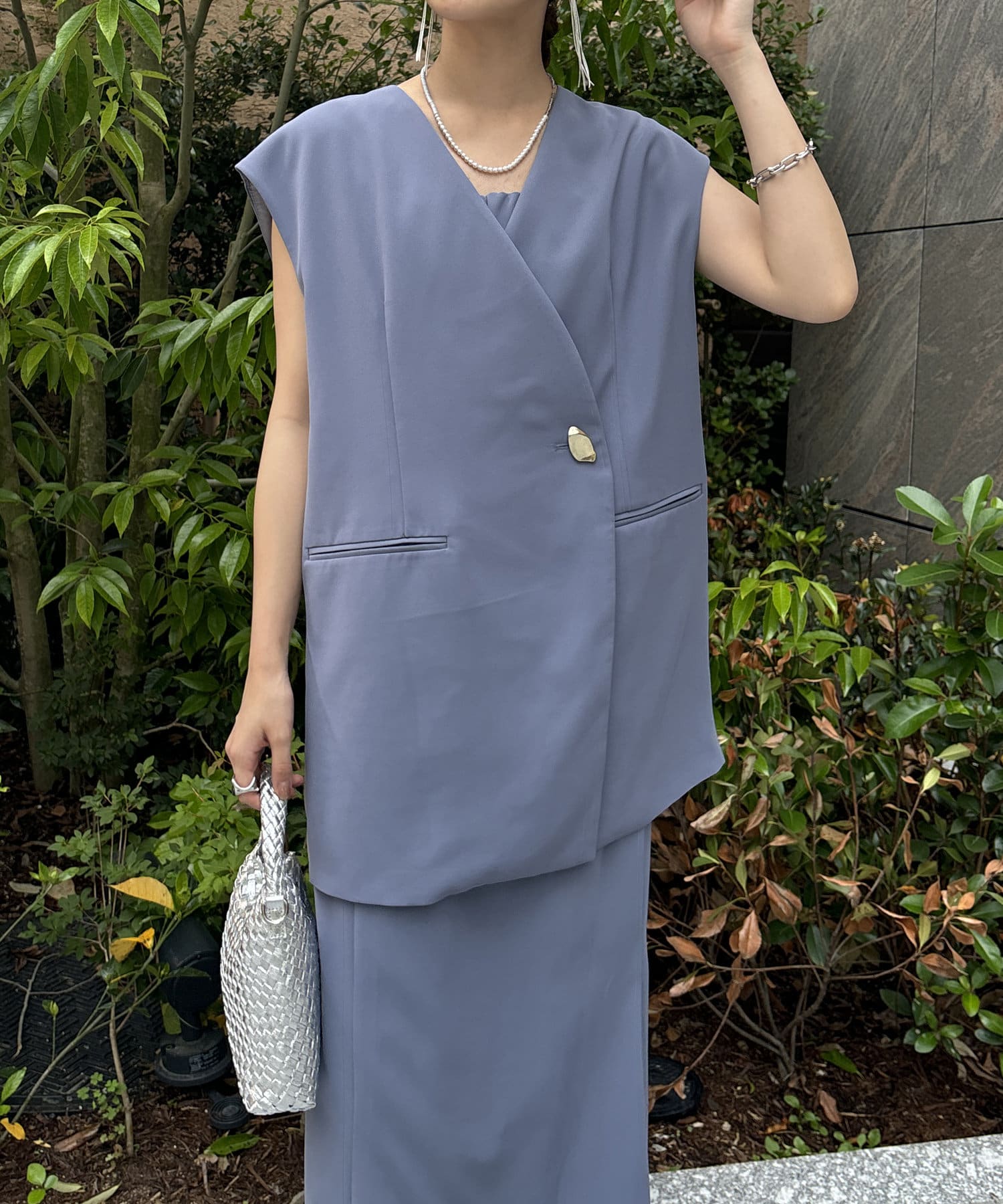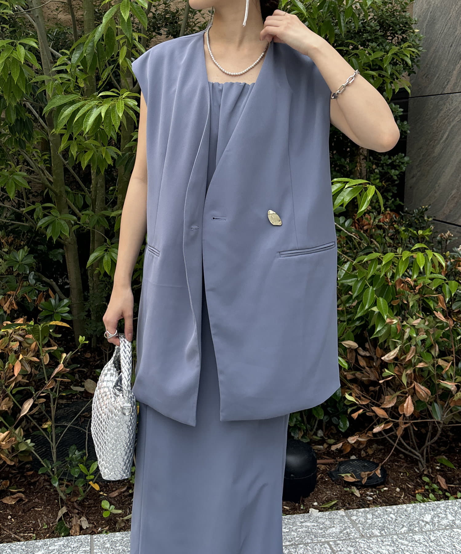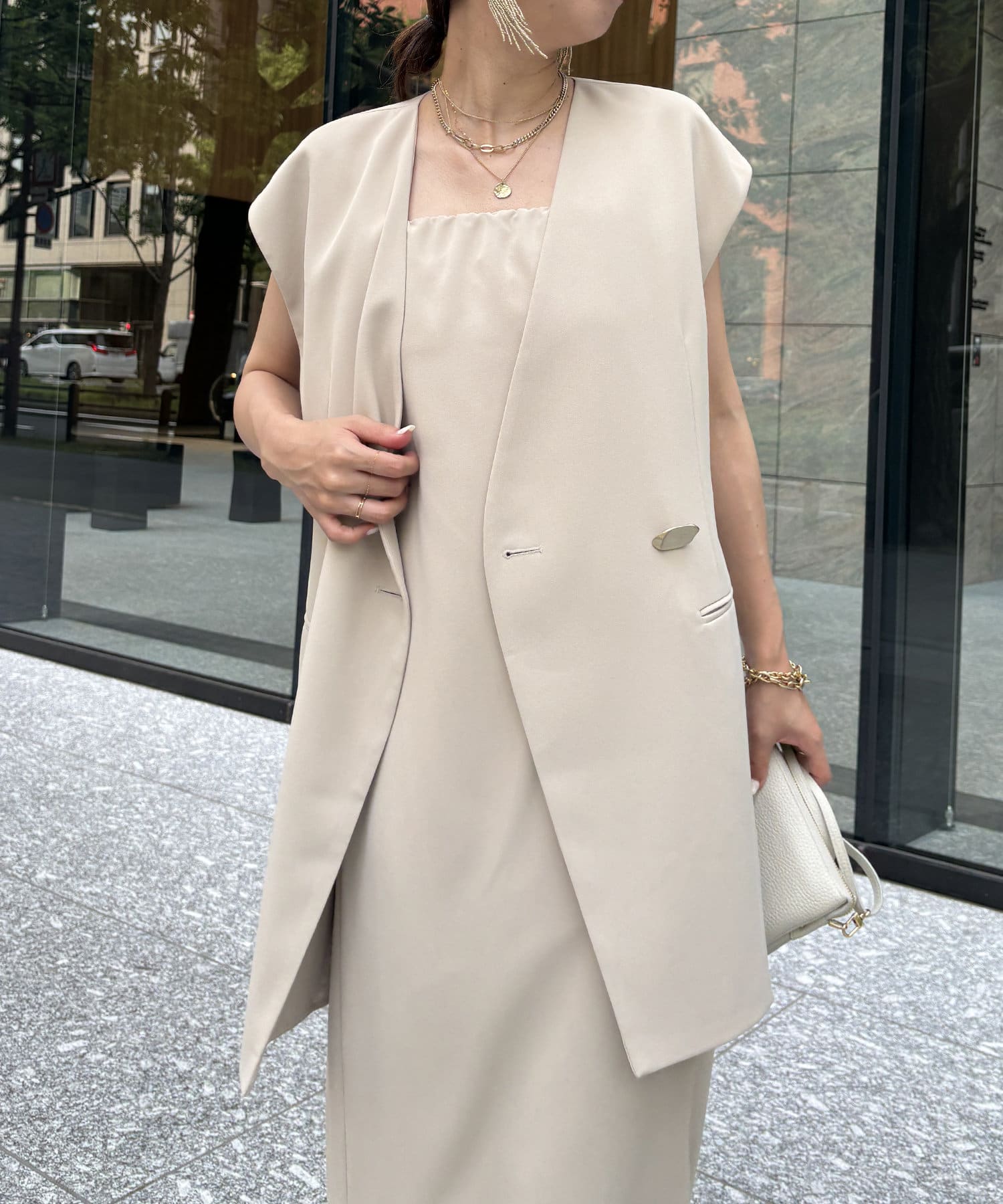 落ち感のある素材で仕立てた、ジレとワンピースのセットアイテム