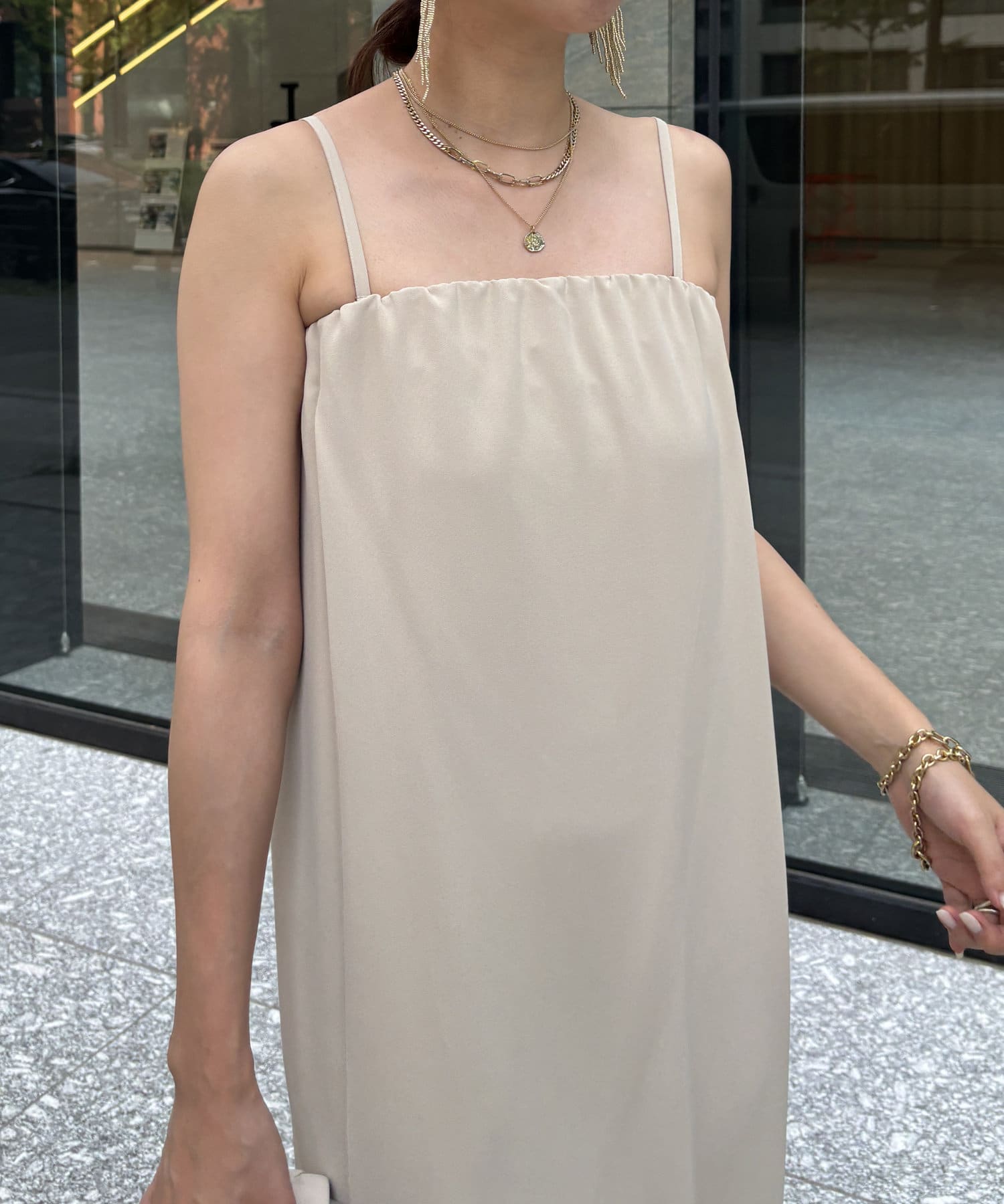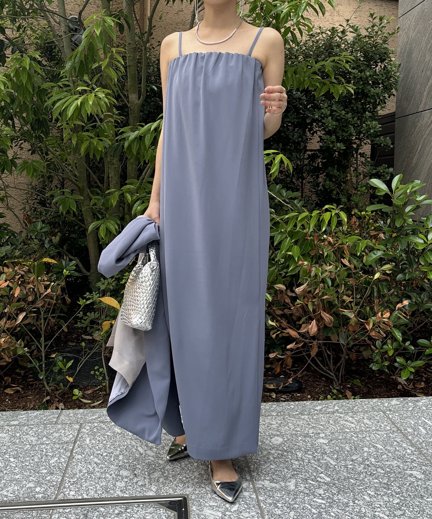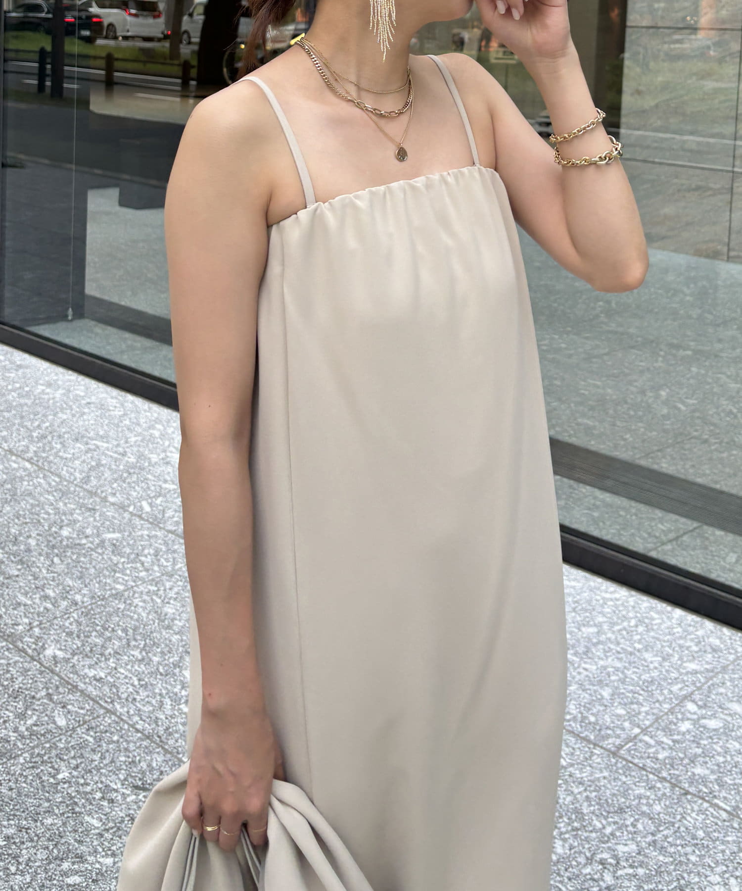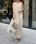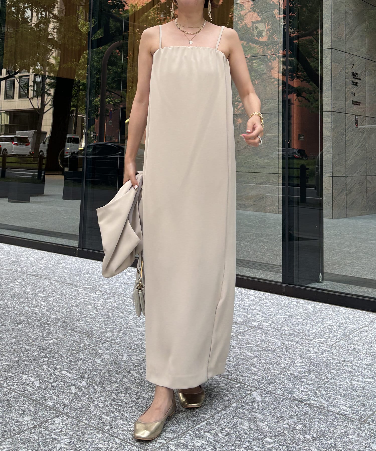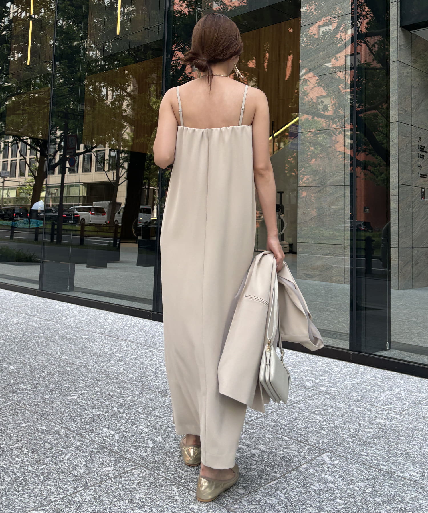 落ち感のある素材で仕立てた、ジレとワンピースのセットアイテム