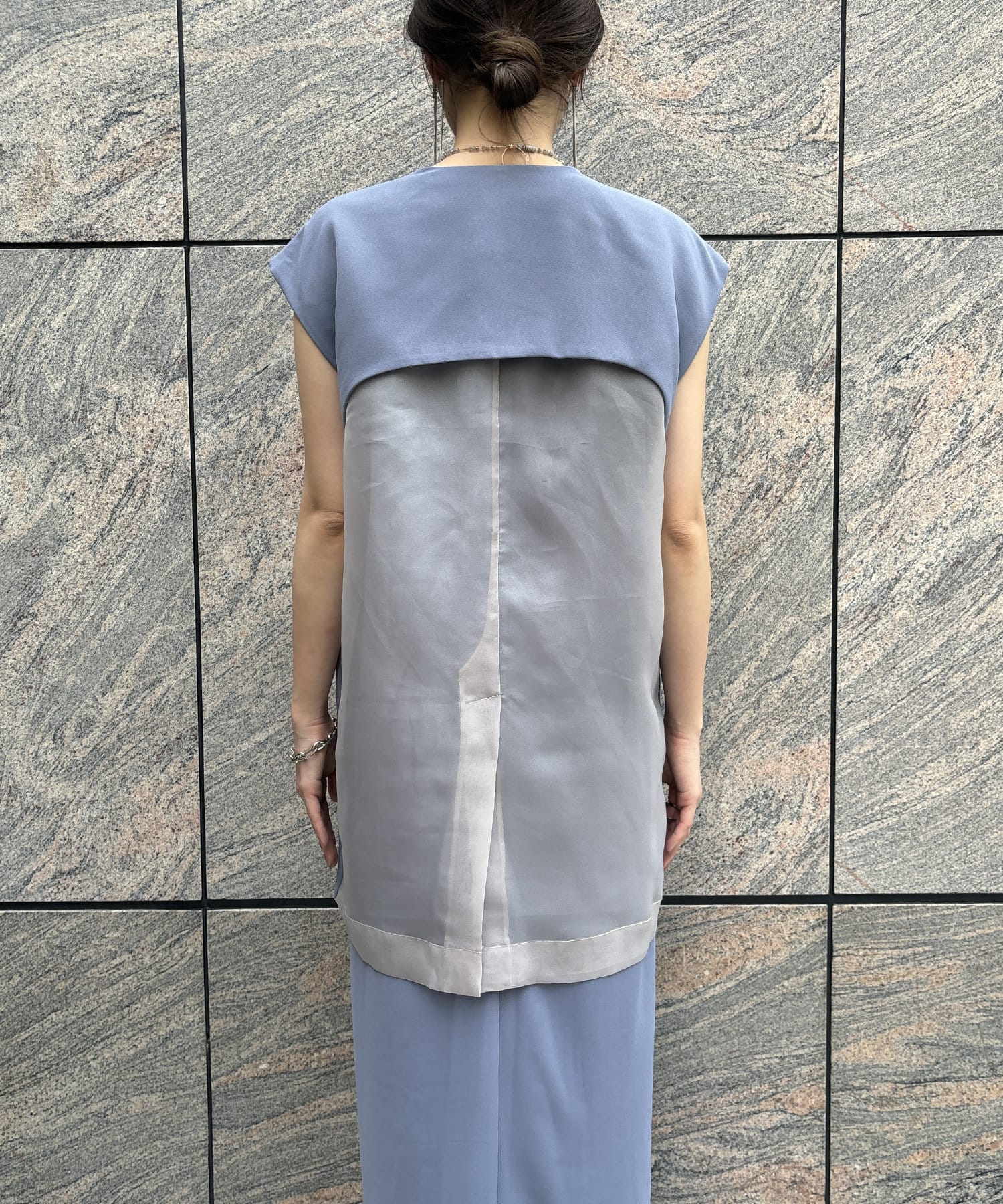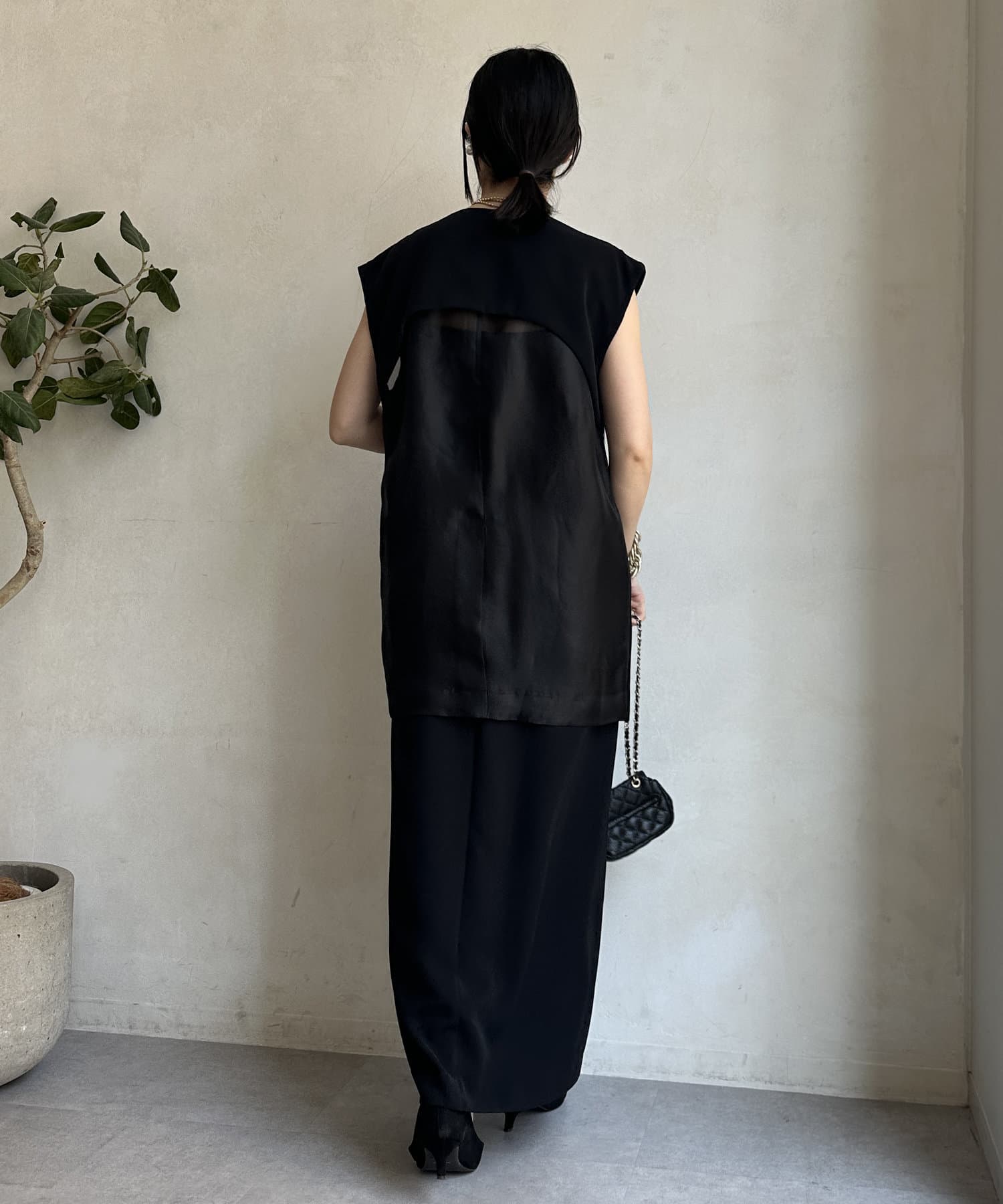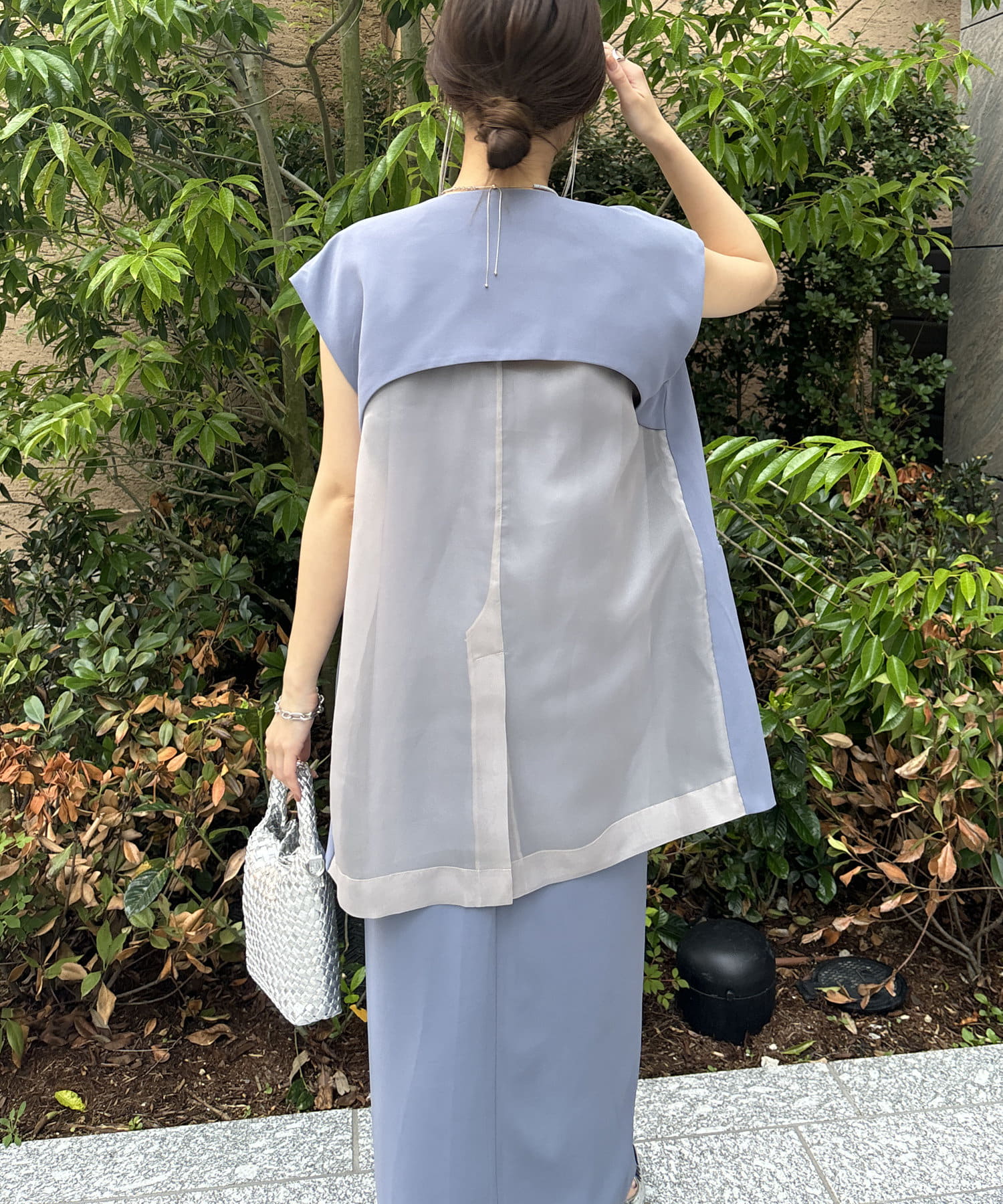 ジレとワンピースをセットで着用すると、背中部分が少し透けて見えるのもこだわりのポイントです。