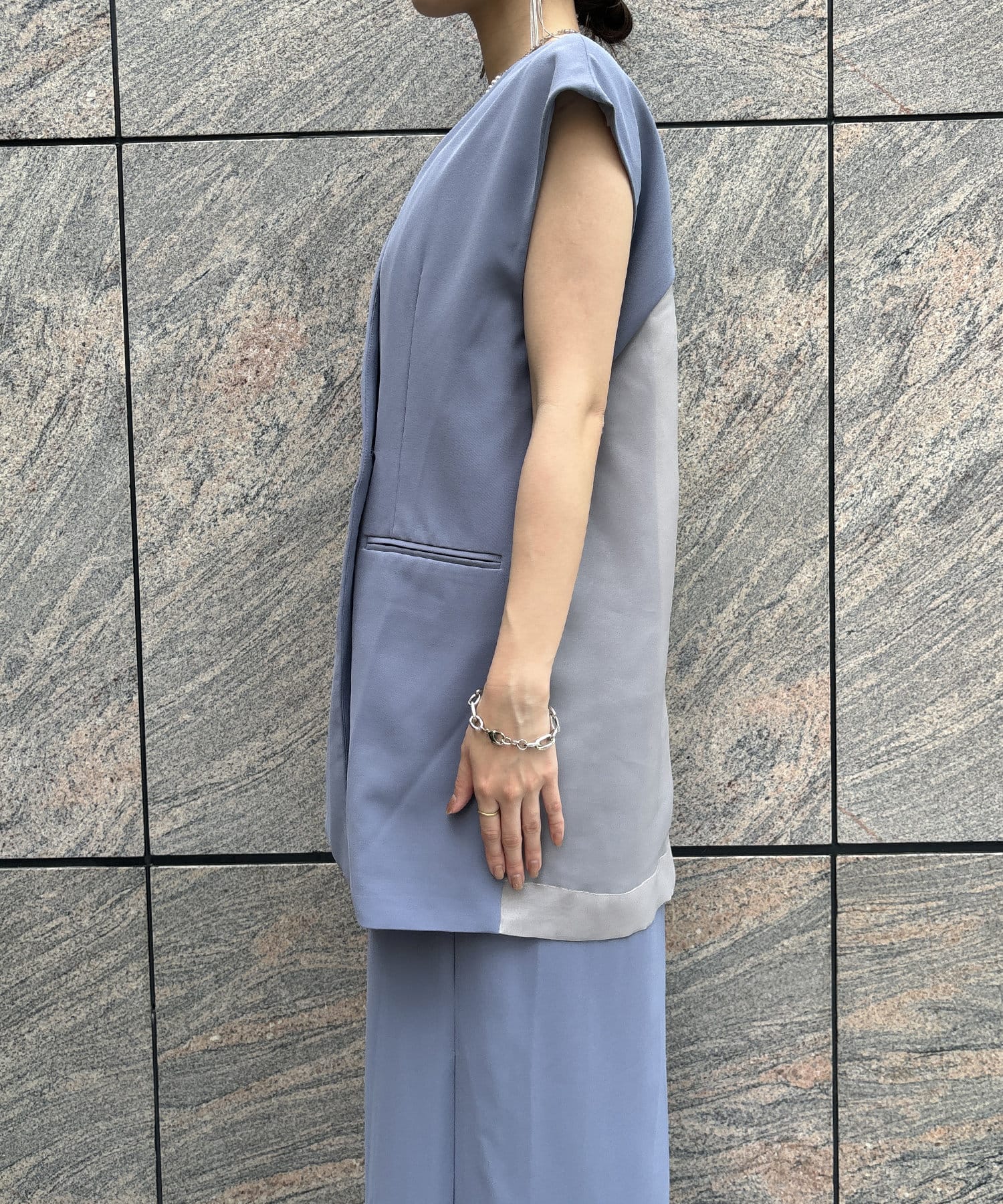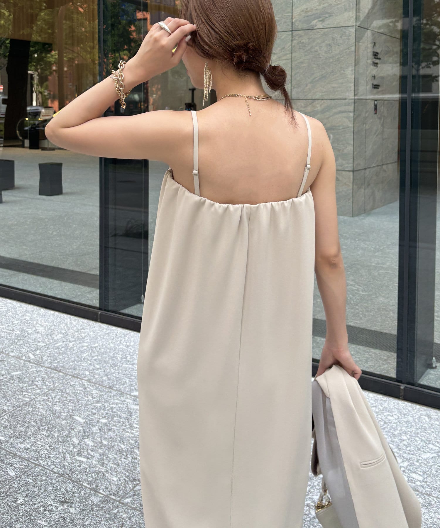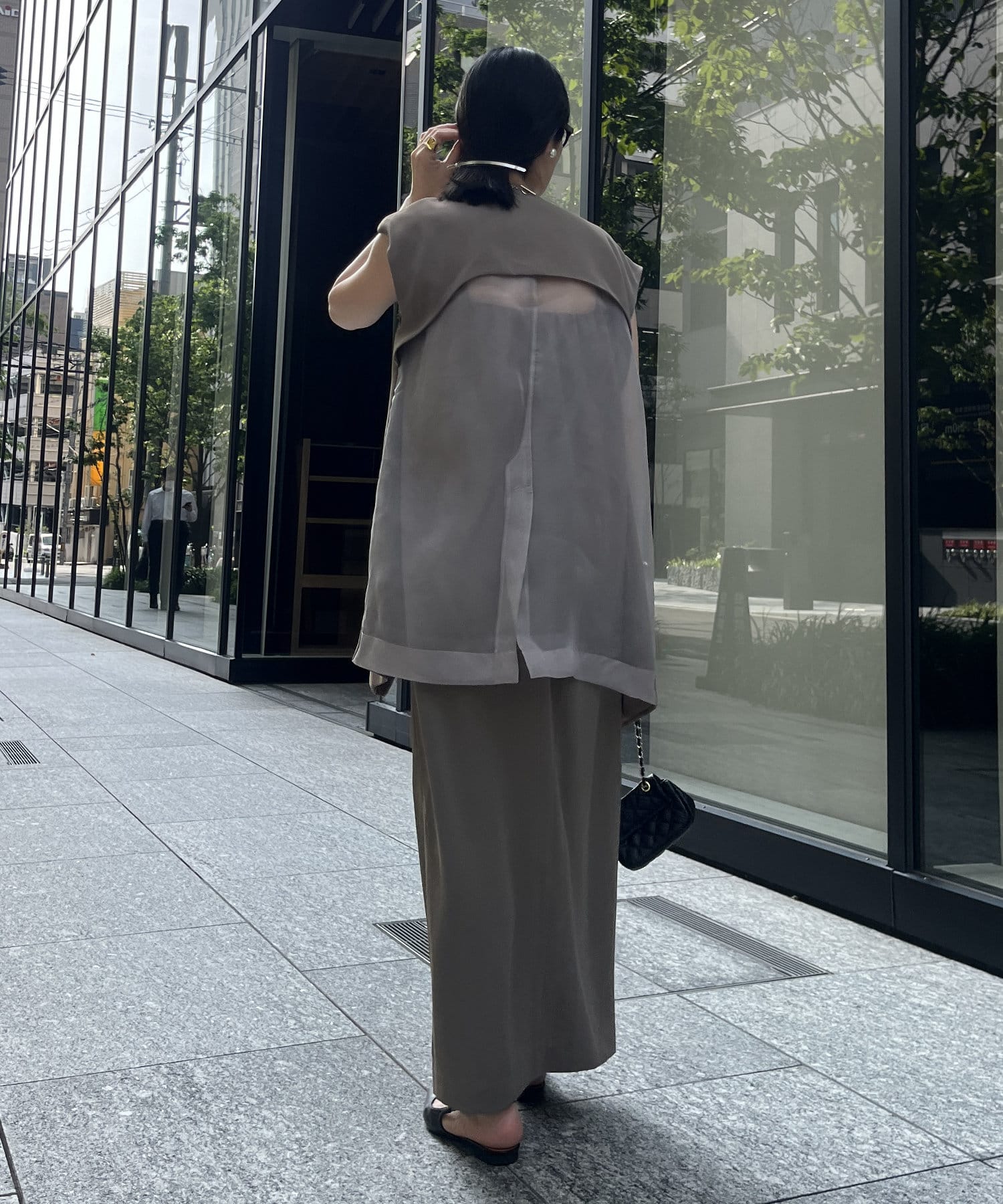 ジレとワンピースをセットで着用すると、背中部分が少し透けて見えるのもこだわりのポイントです。