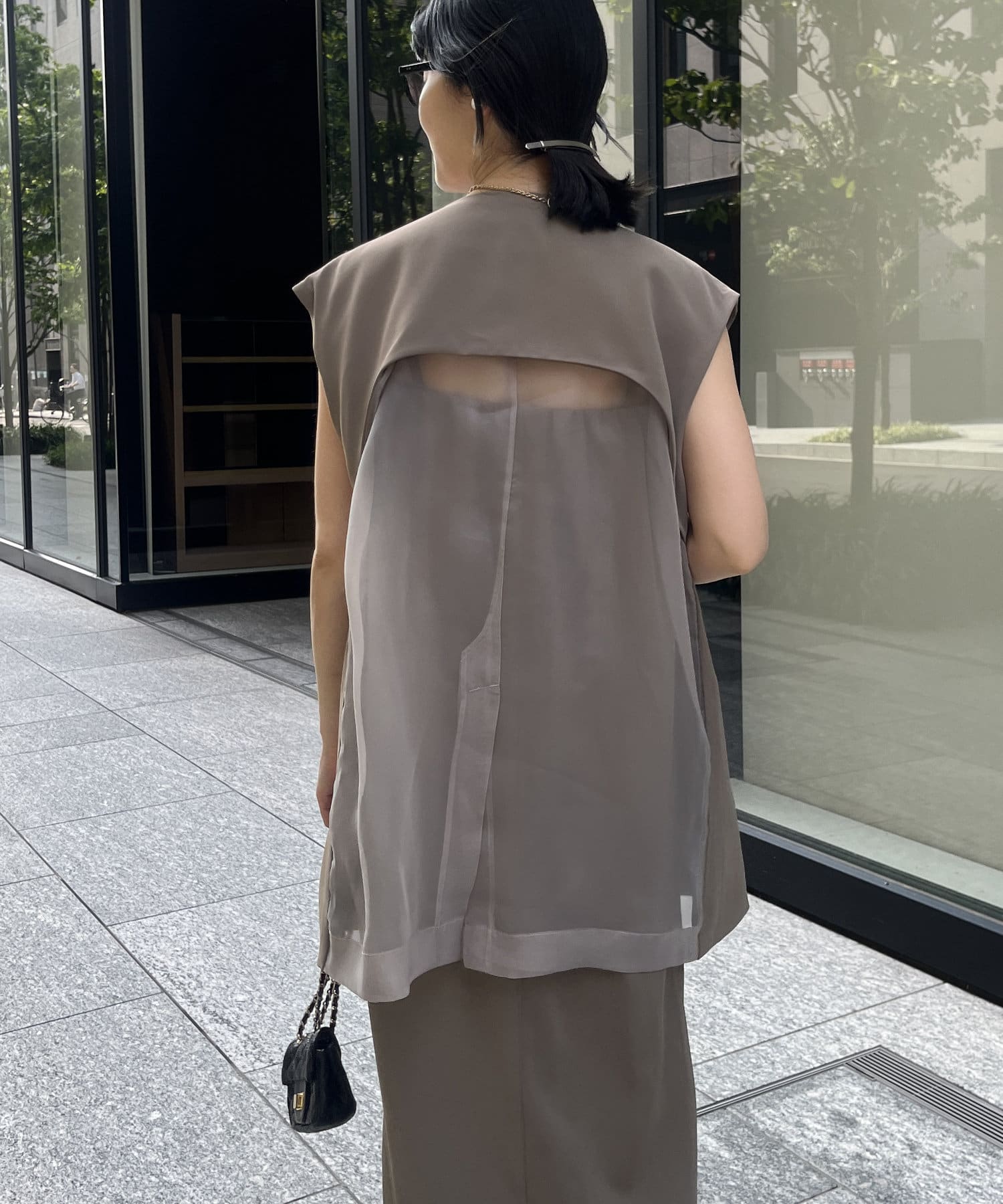 後ろ身頃は透け感のあるオーガンジーを採用。