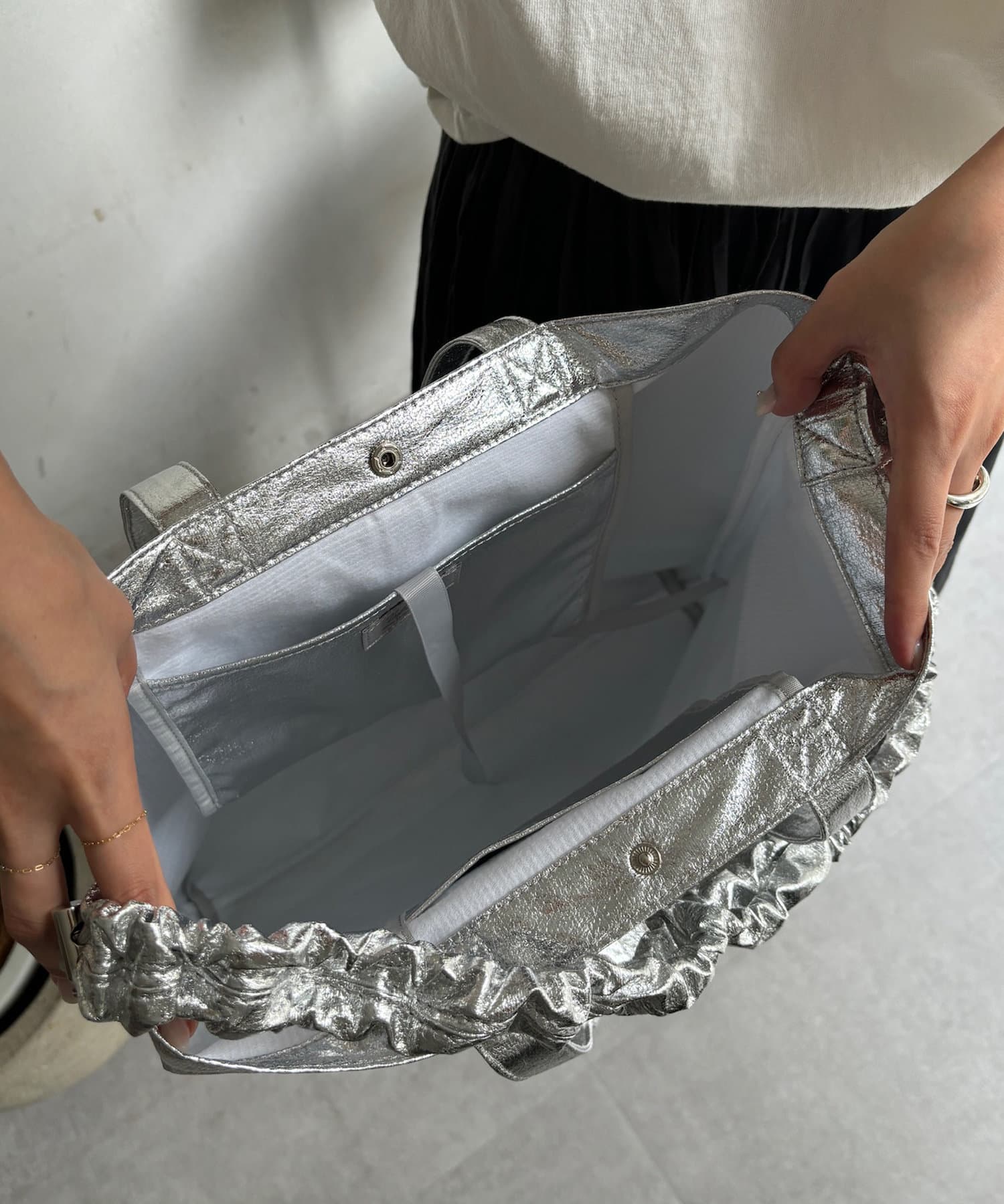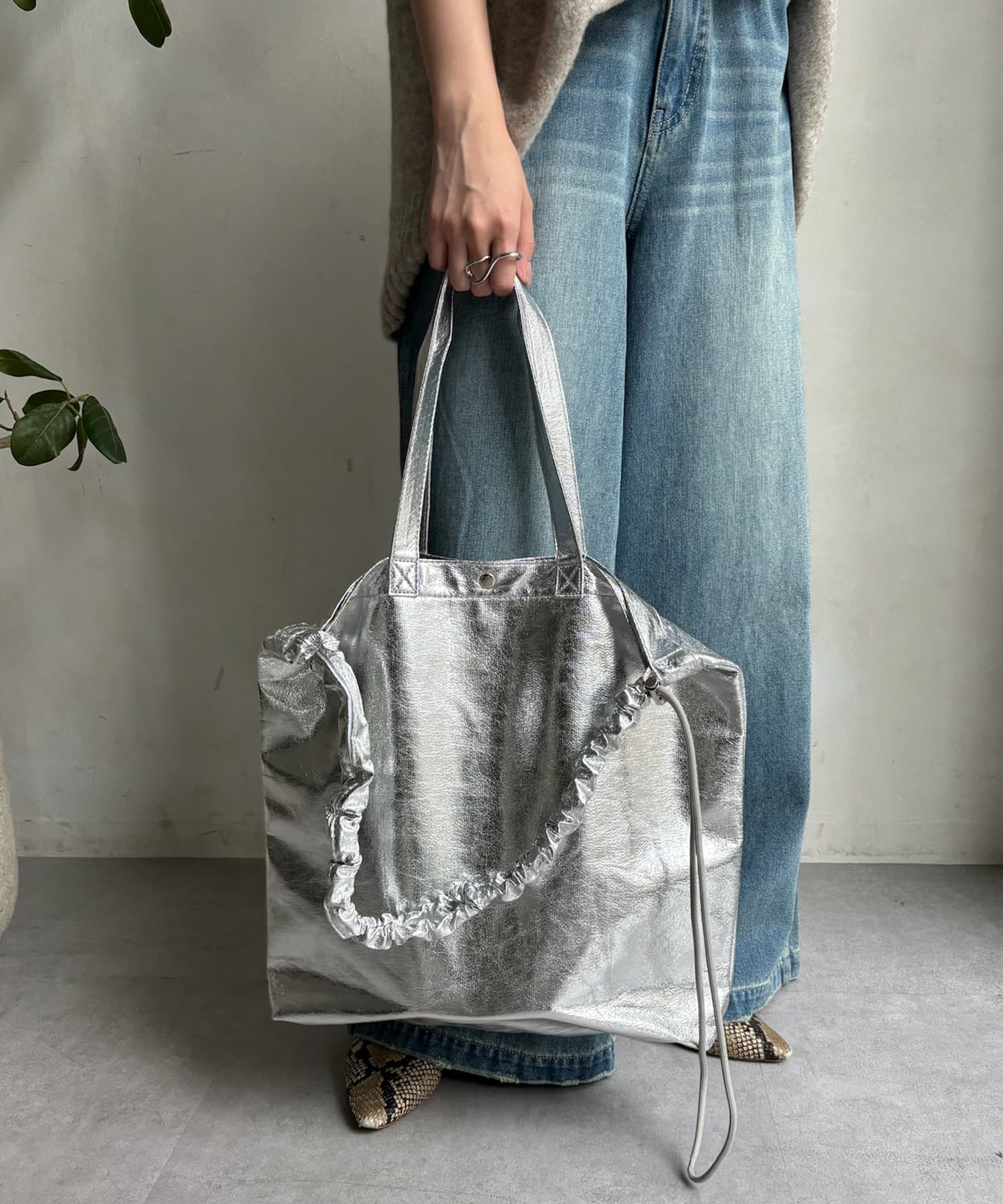 【WEB限定】メタリックシャーリングポケットトート