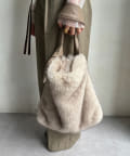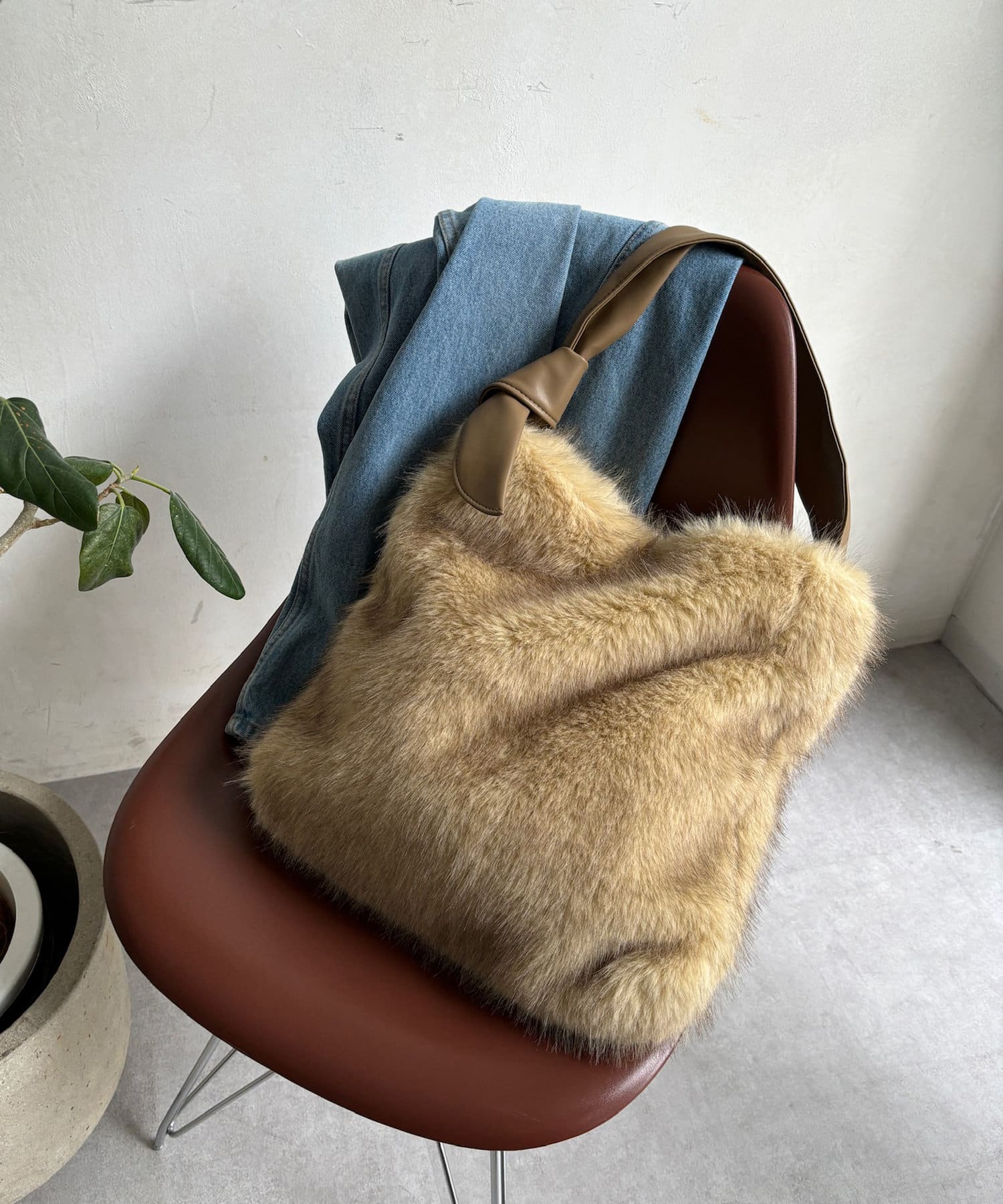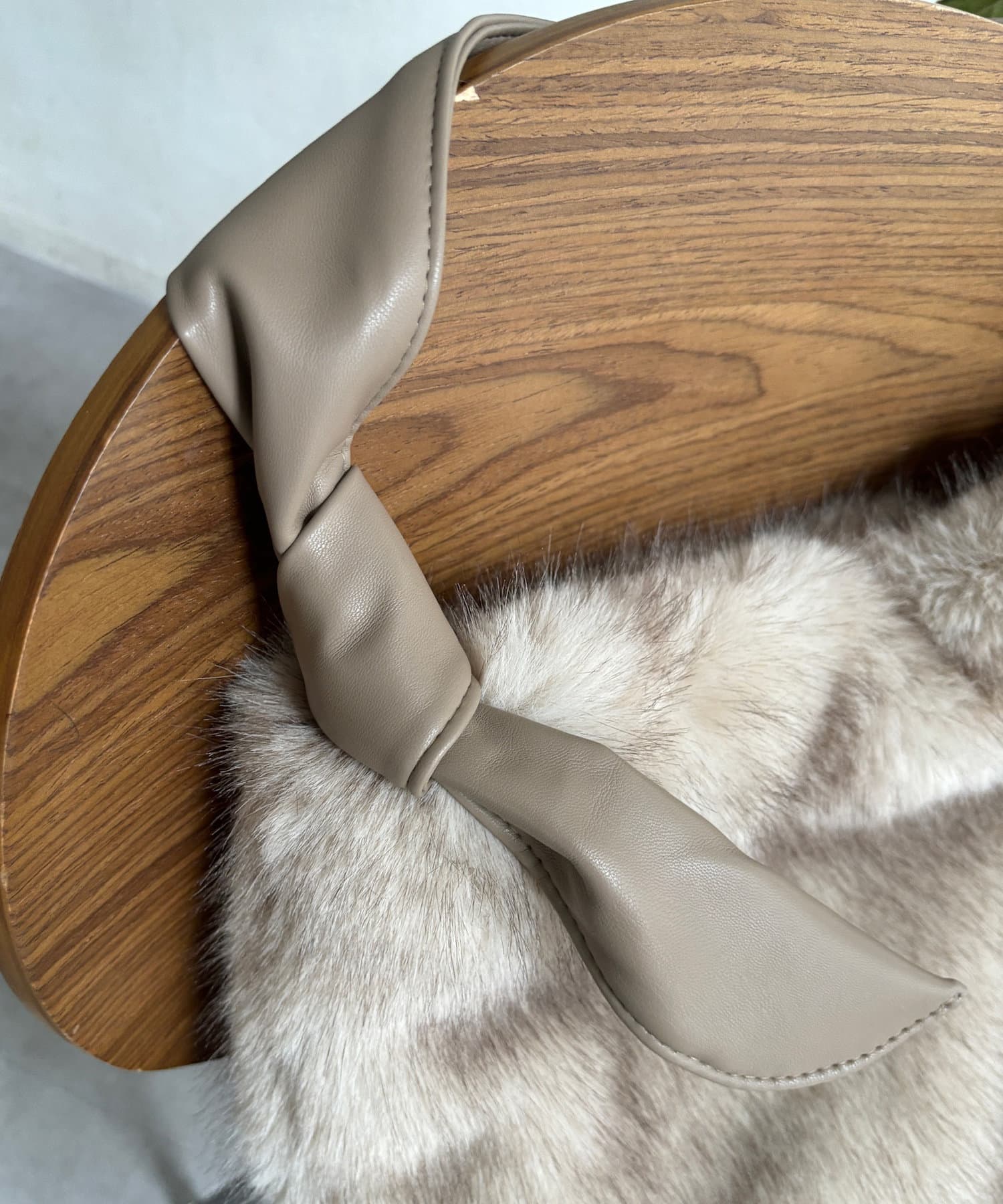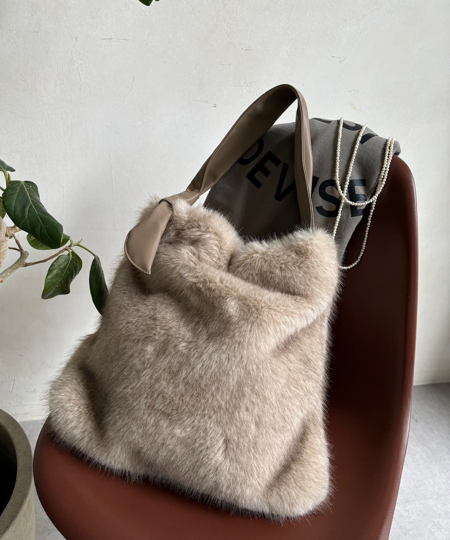 片側結びのリボンが大人っぽい雰囲気のファーバッグ。