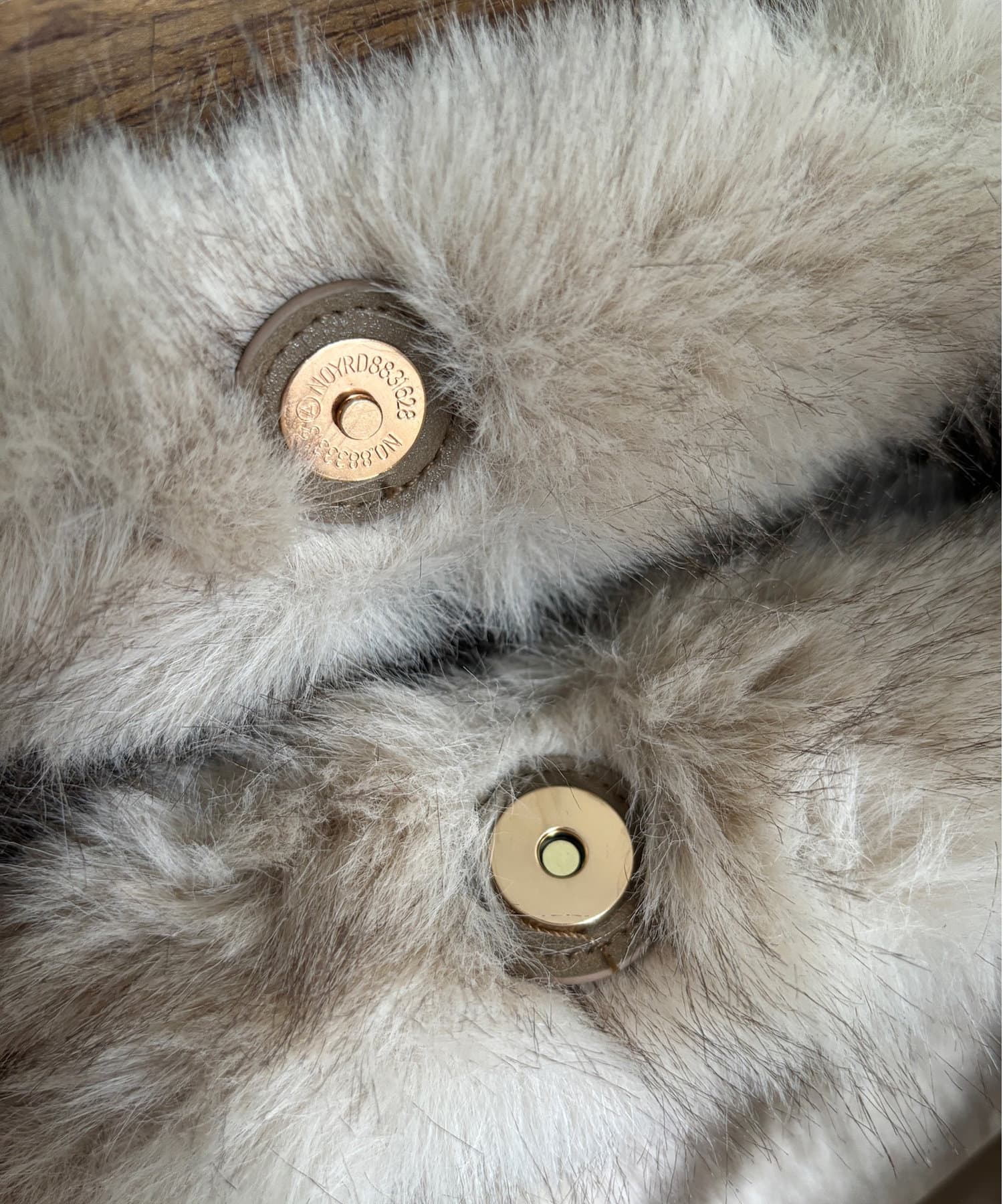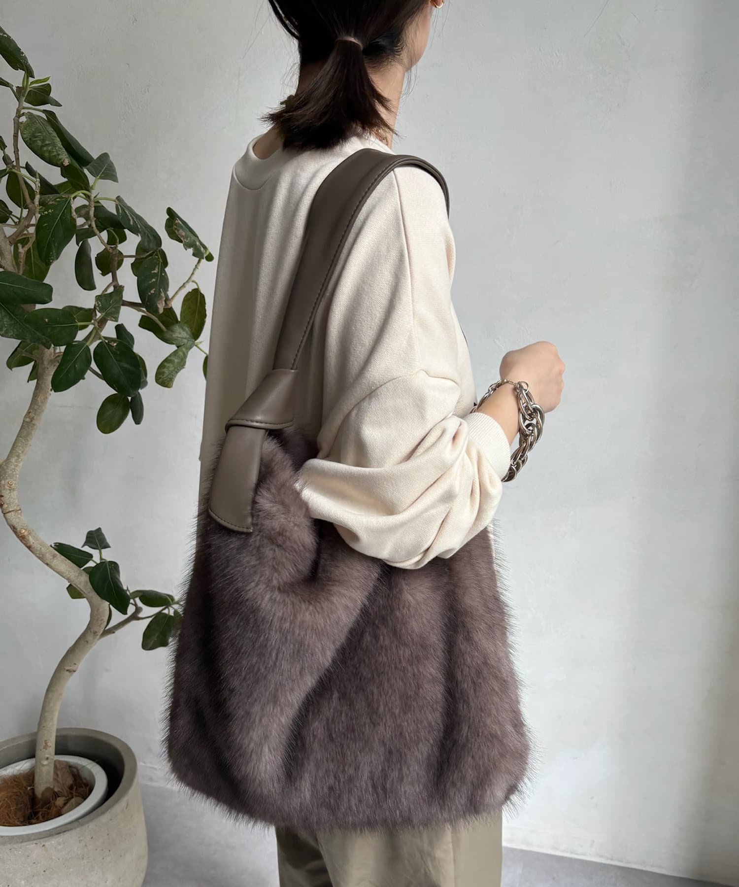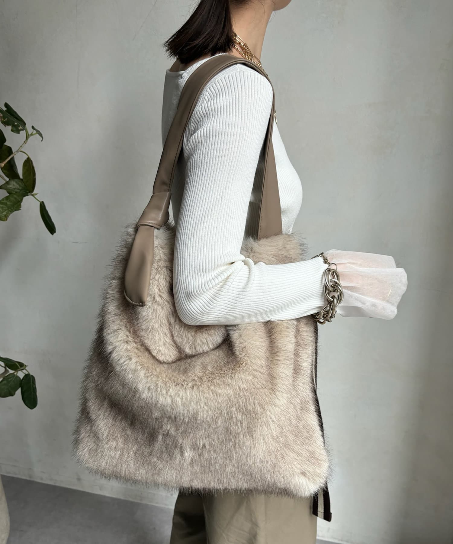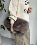 片側結びのリボンが大人っぽい雰囲気のファーバッグ。