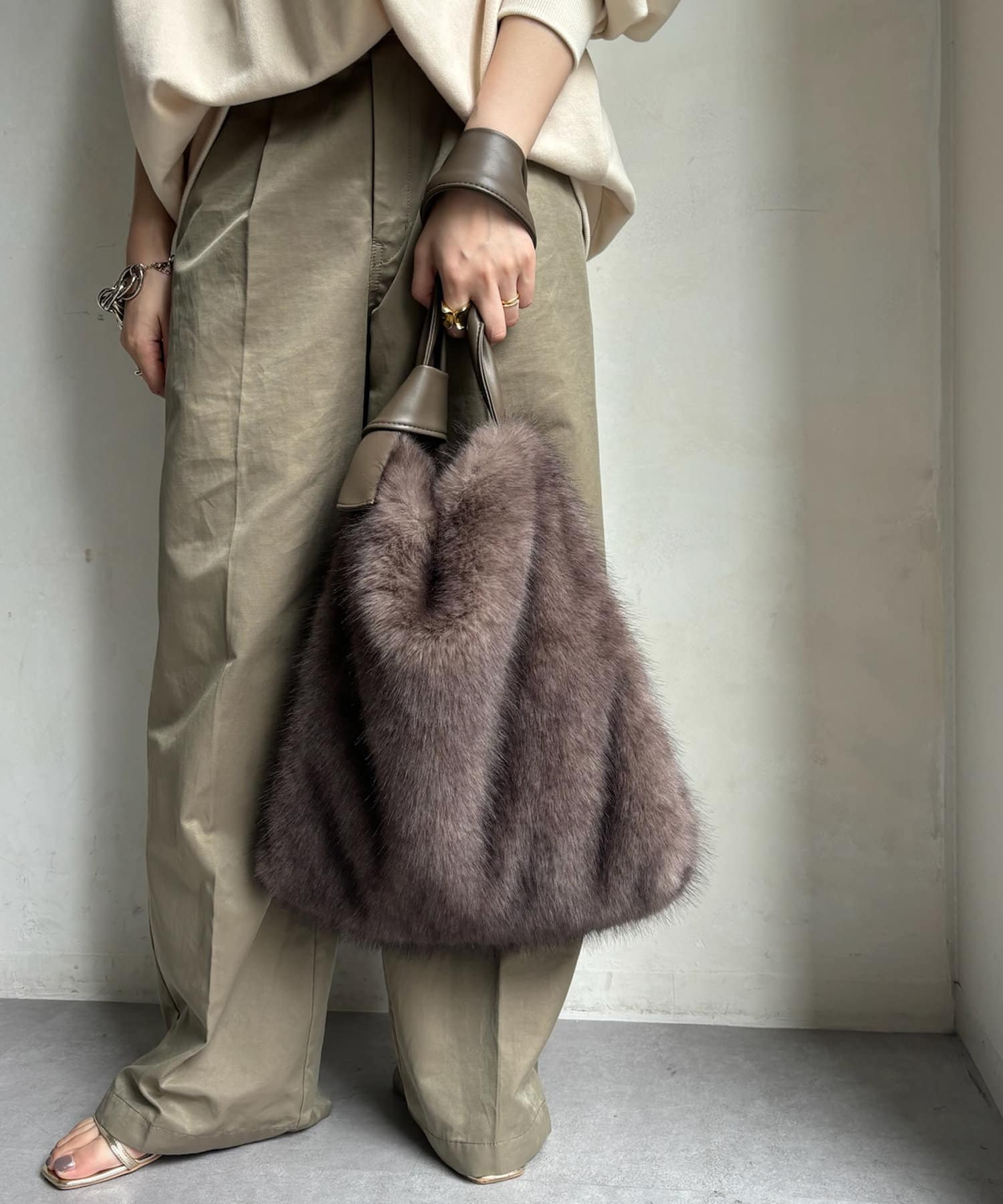 毛先のトップと内側で色の異なるミンク風エコファーが高級感のある仕上がりで秋冬のお出かけコーデにピッタリです。