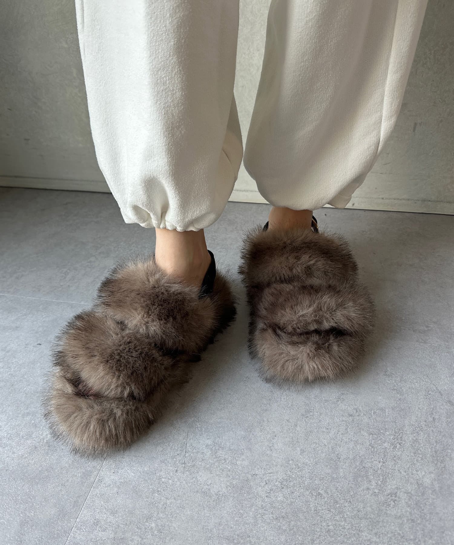 ボリューム感のあるデザインが目をひくファーサンダル。