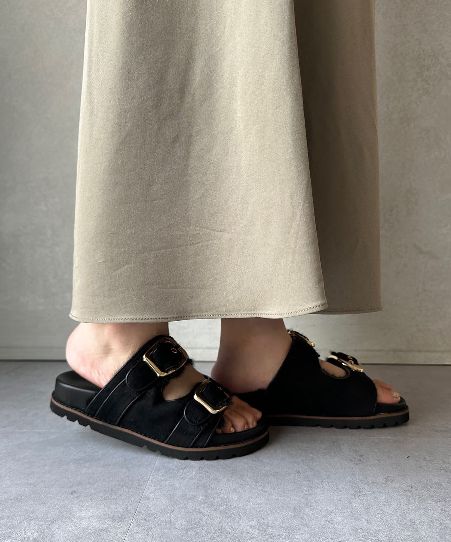 ダブルベルトファーサンダル