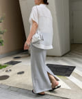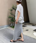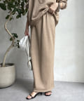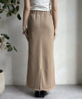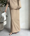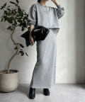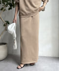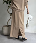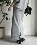 裏毛スウェット素材なので、伸縮性も抜群。深めのスリットでさらに足さばきも良く、ストレスフリーな着心地に。