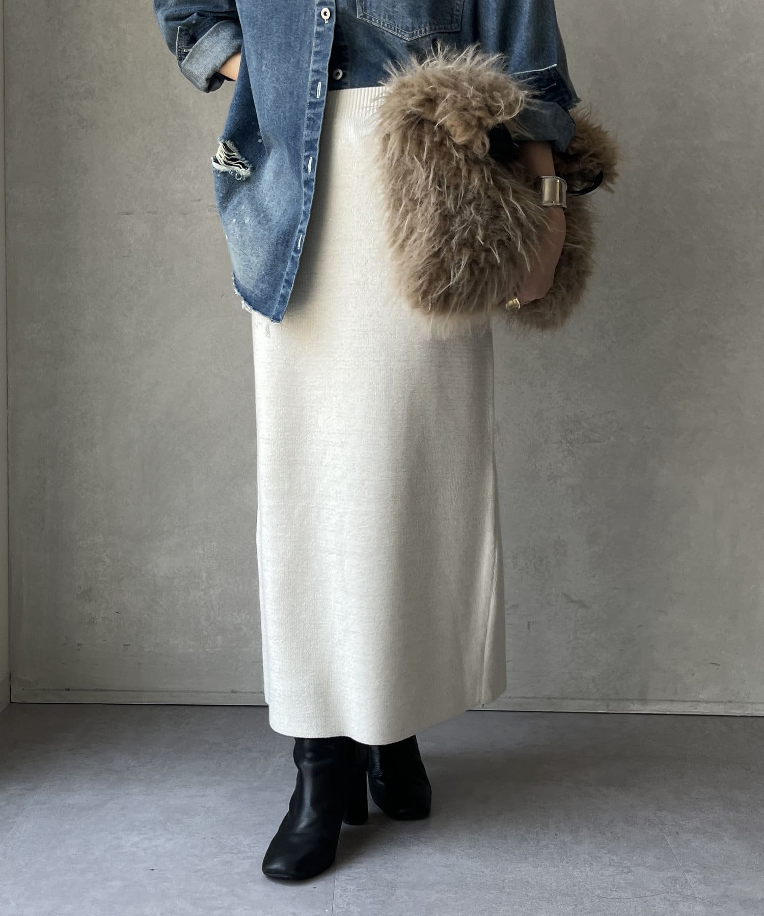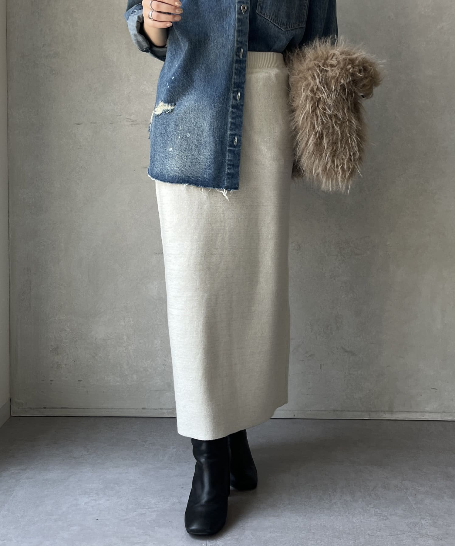 • DOUDOU(ドゥドゥ) 【WEB限定】ミラノリブラメニットスカート
